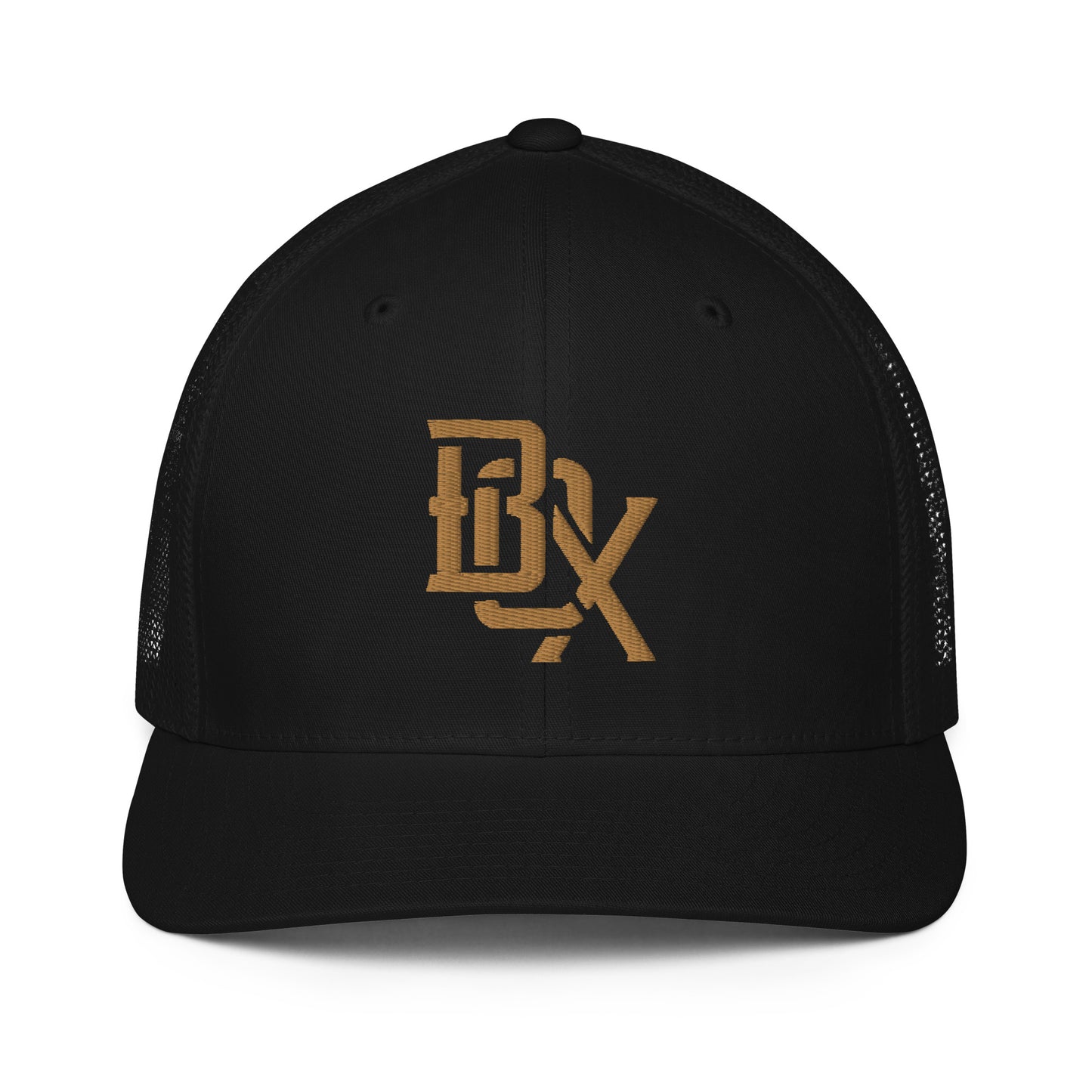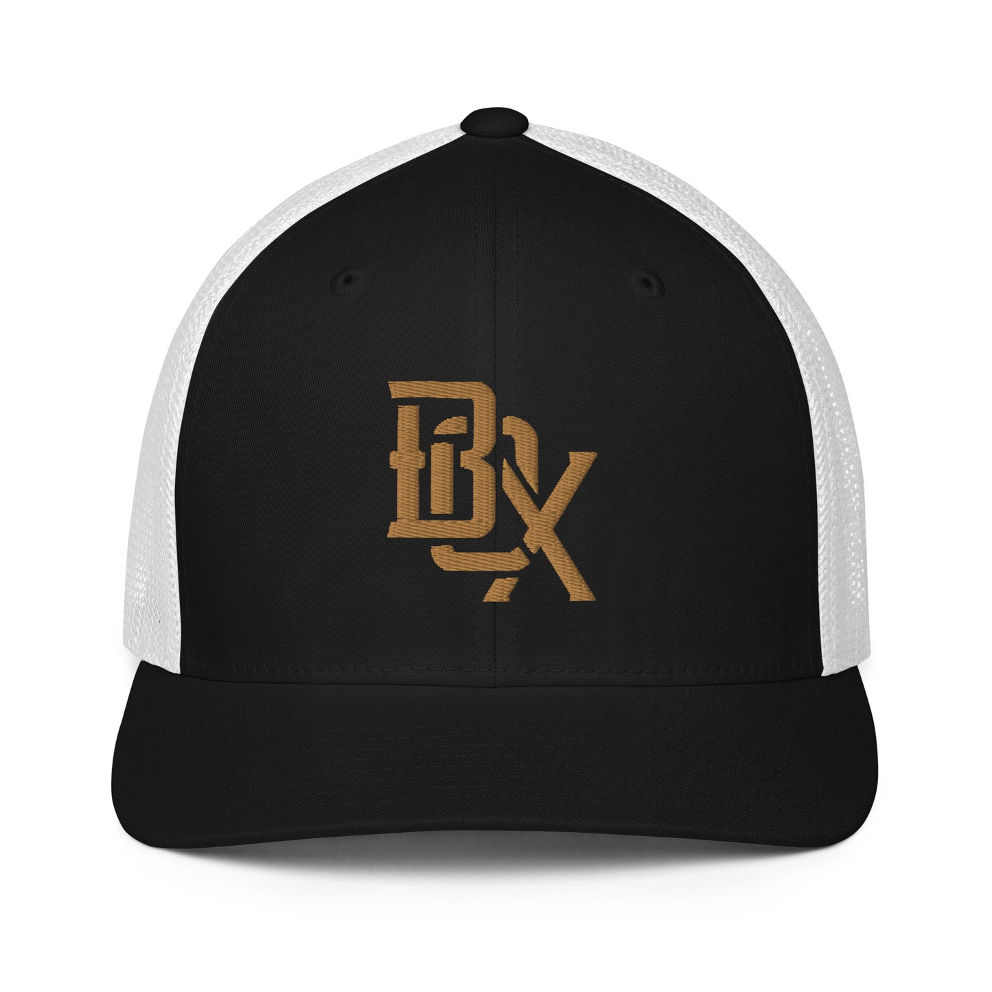 "BOX" Closed-Back Trucker Cap | Flexfit 6511 | E Luna CLASSIC Solocrest 1 Old Gold Thread Front Logo