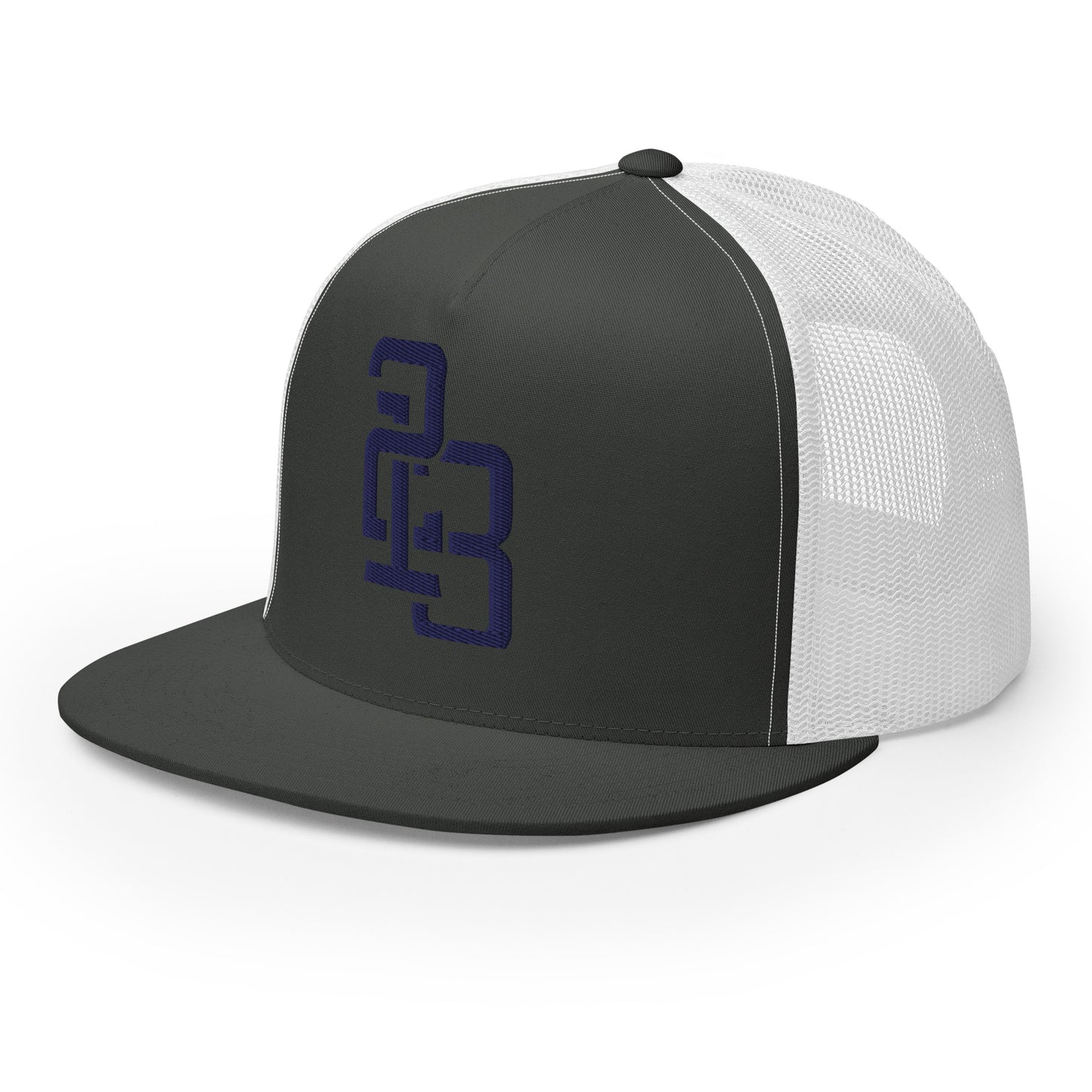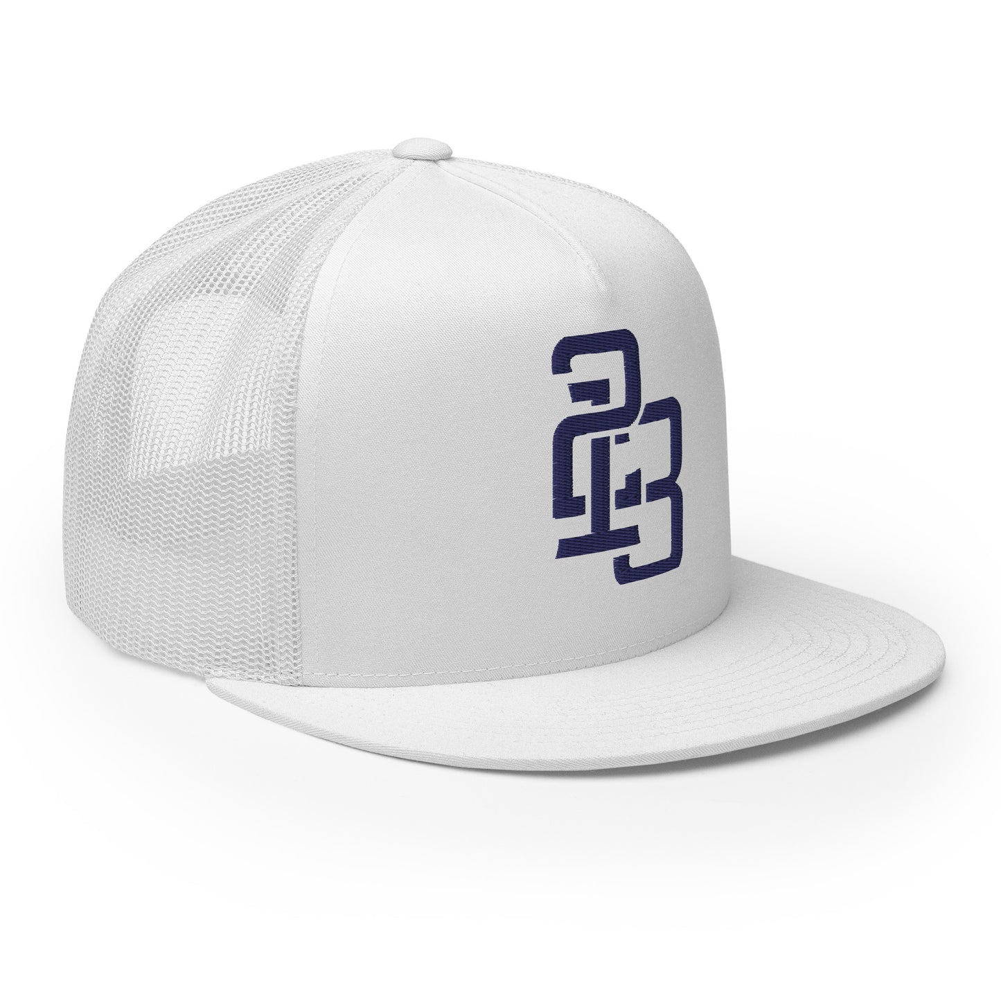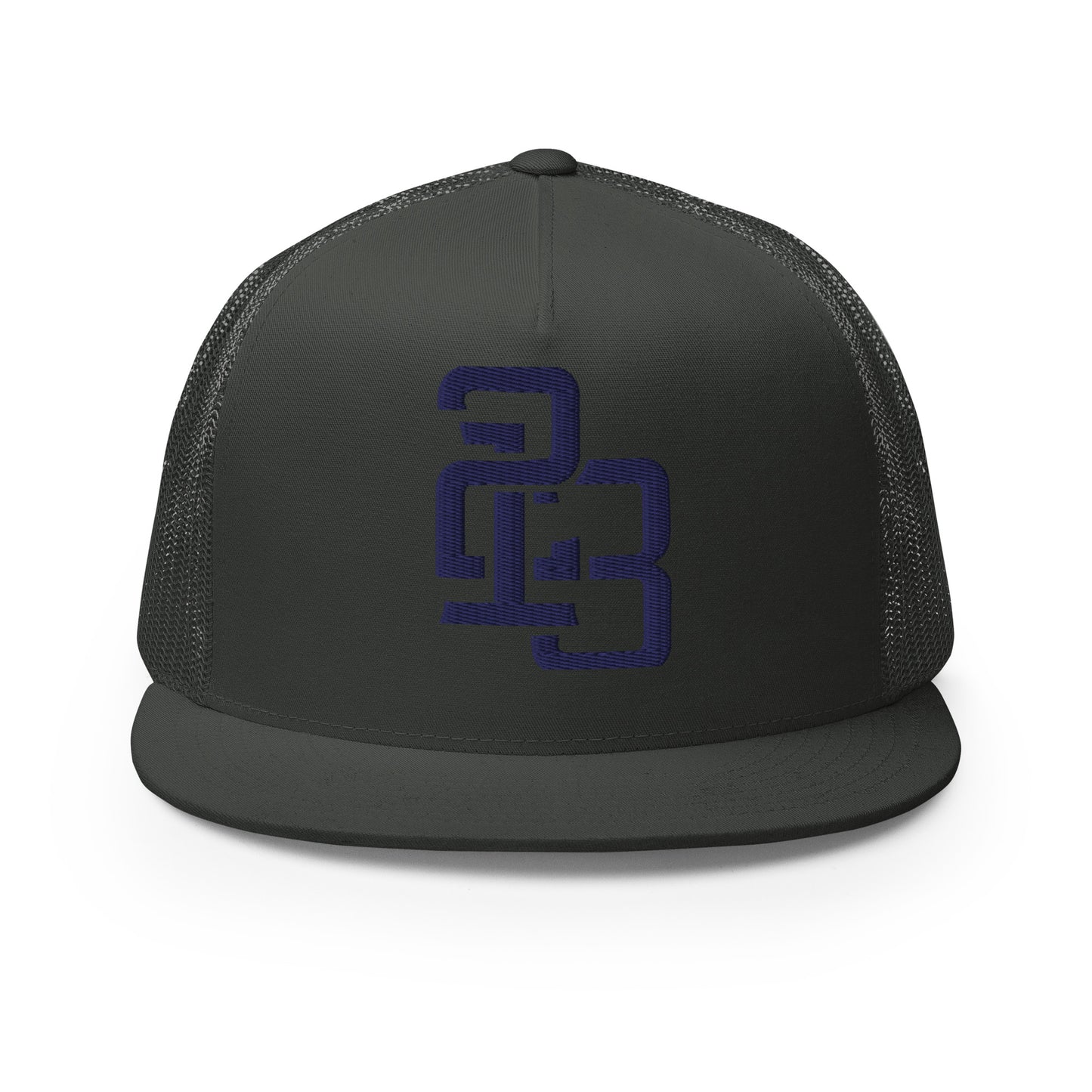 "213" Five Panel Trucker Cap | Yupoong 6006 | E Luna CLASSIC Solocrest 1 Navy Thread Front Logo