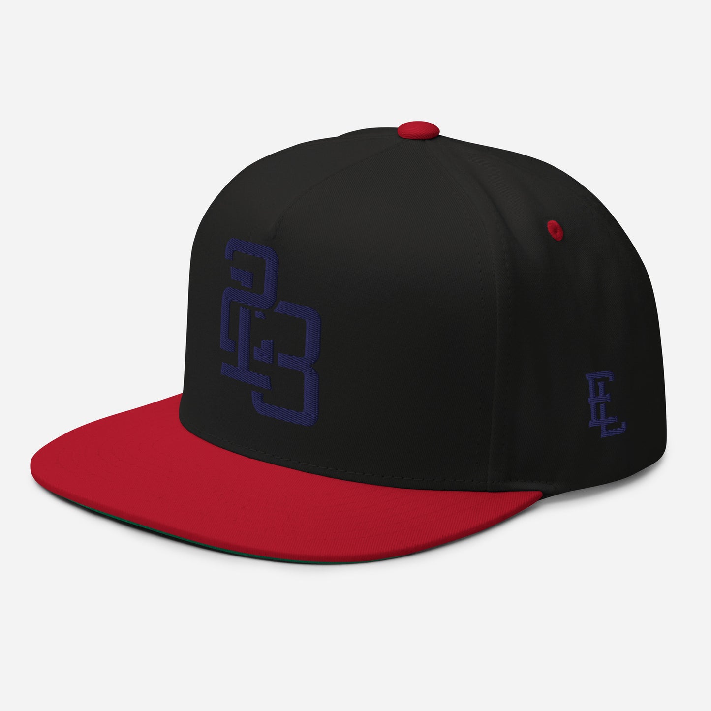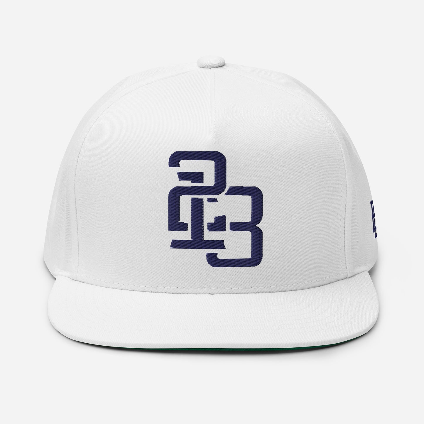 "213" Flat Bill Cap | Yupoong 6007 | E Luna SELECT Tricrest 3 Navy Thread Front, Left Side & Back Logos