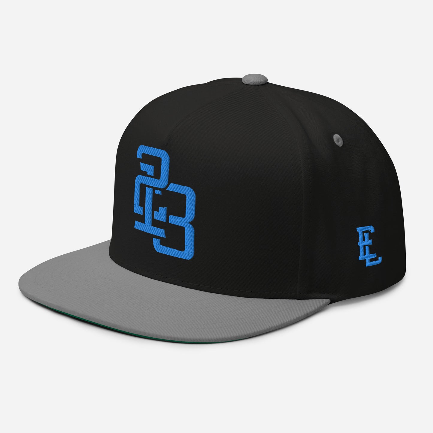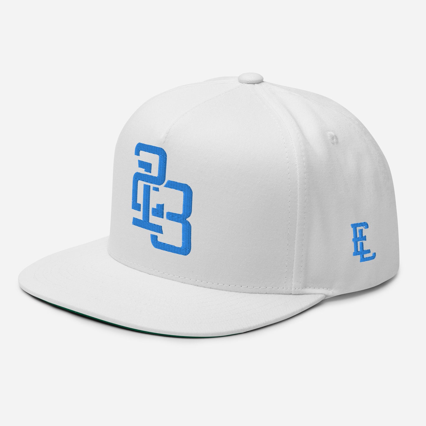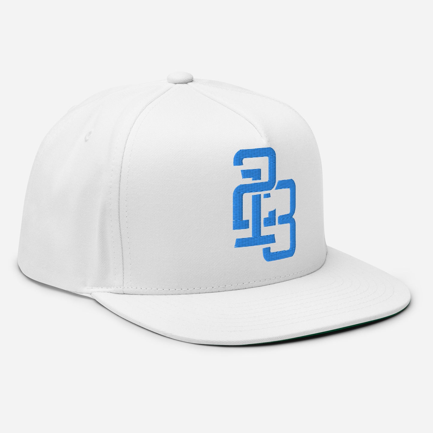 "213" Flat Bill Cap | Yupoong 6007 | E Luna ESSENTIAL Duocrest 2 Aqua/Teal Thread Front & Left Side Logos