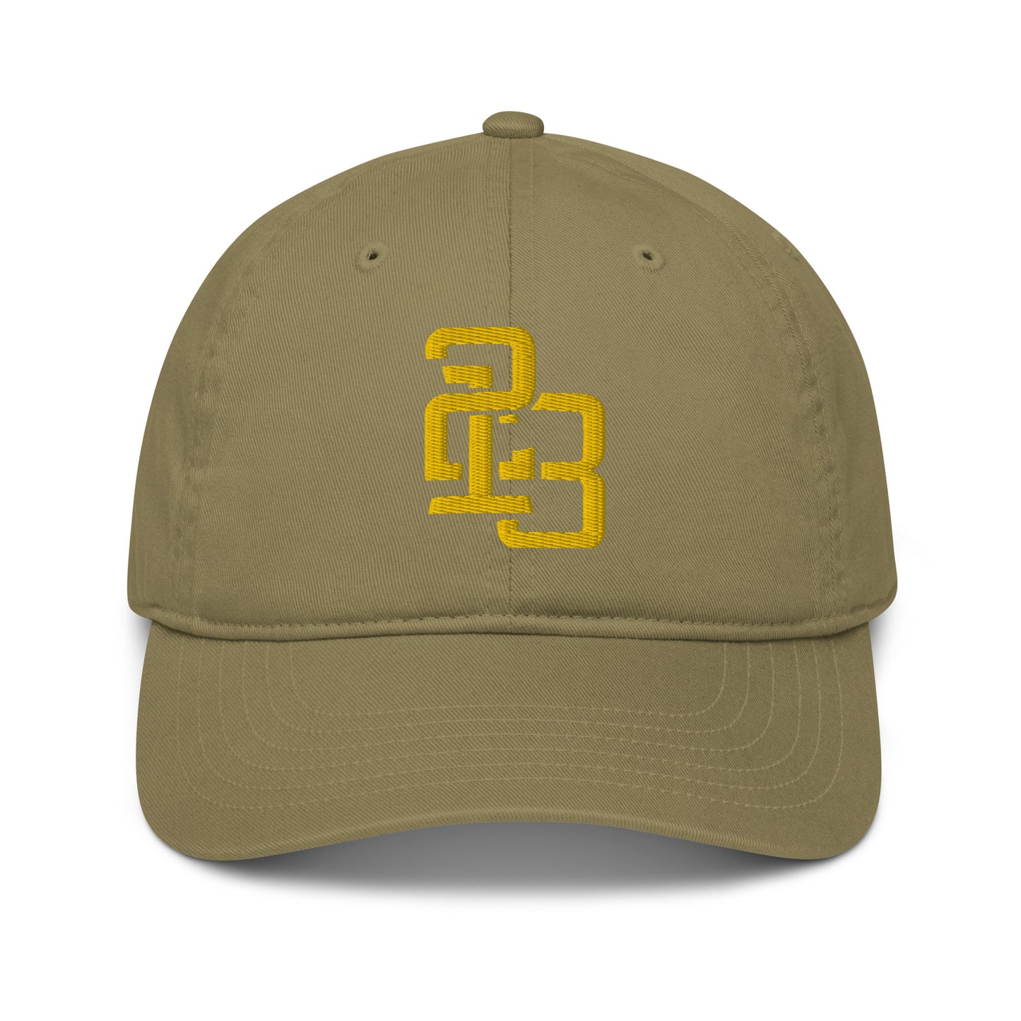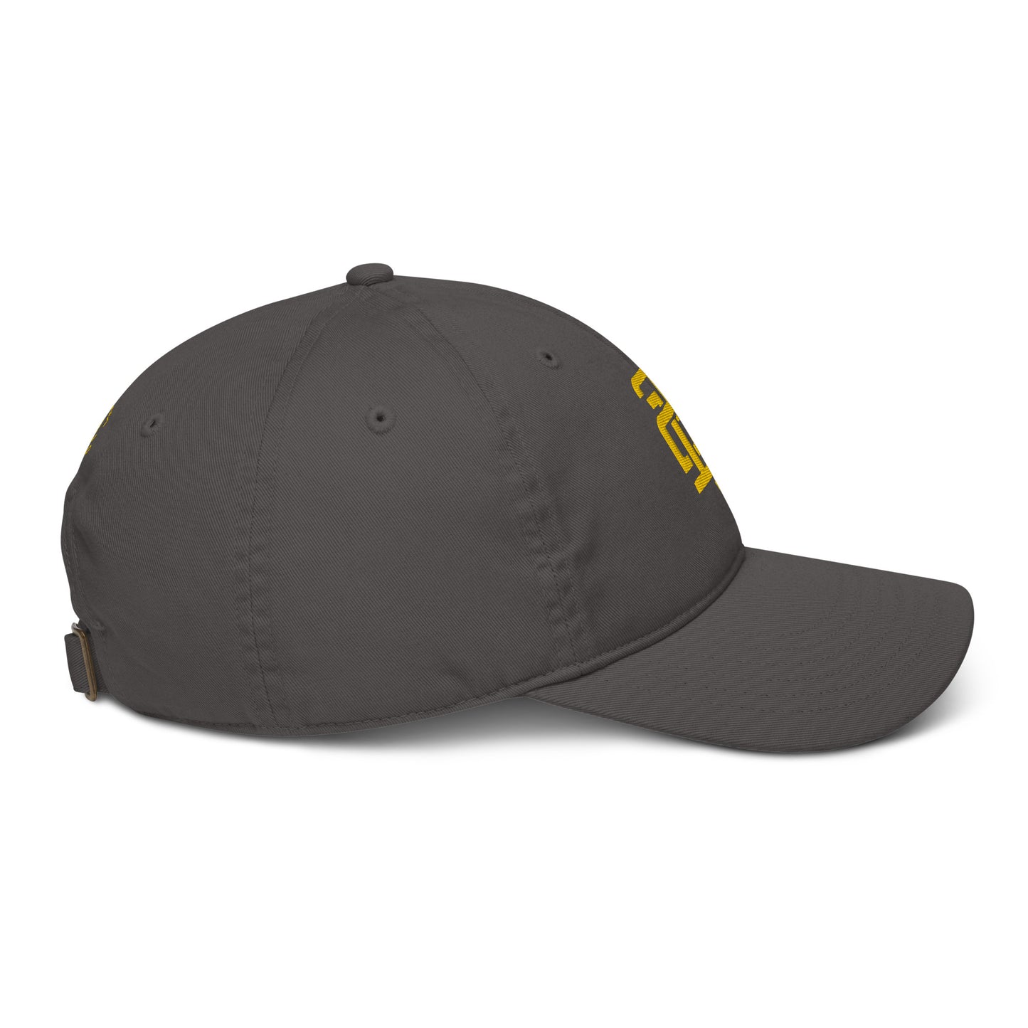 "213" Organic Baseball Cap | Econscious EC7000 | E Luna SELECT Duocrest 3 Gold Thread Front, Left Side & Back Logos