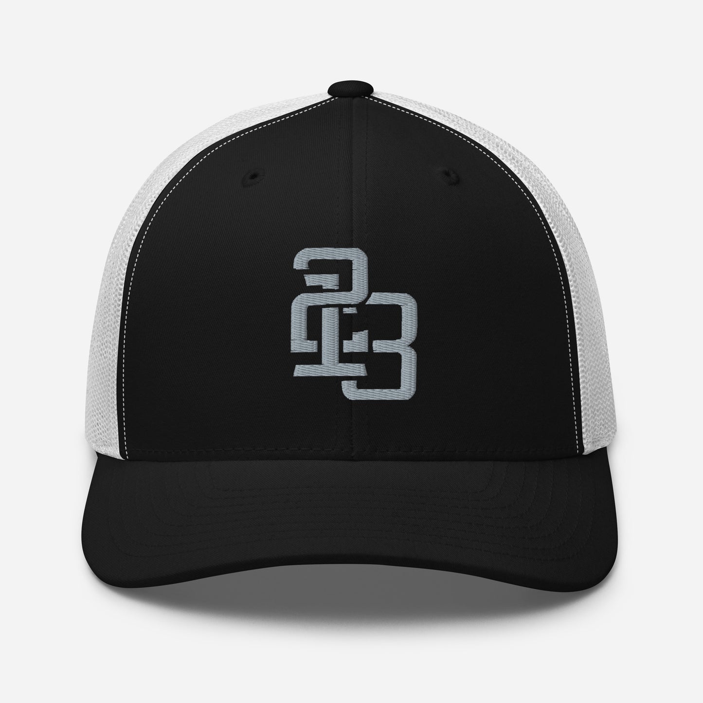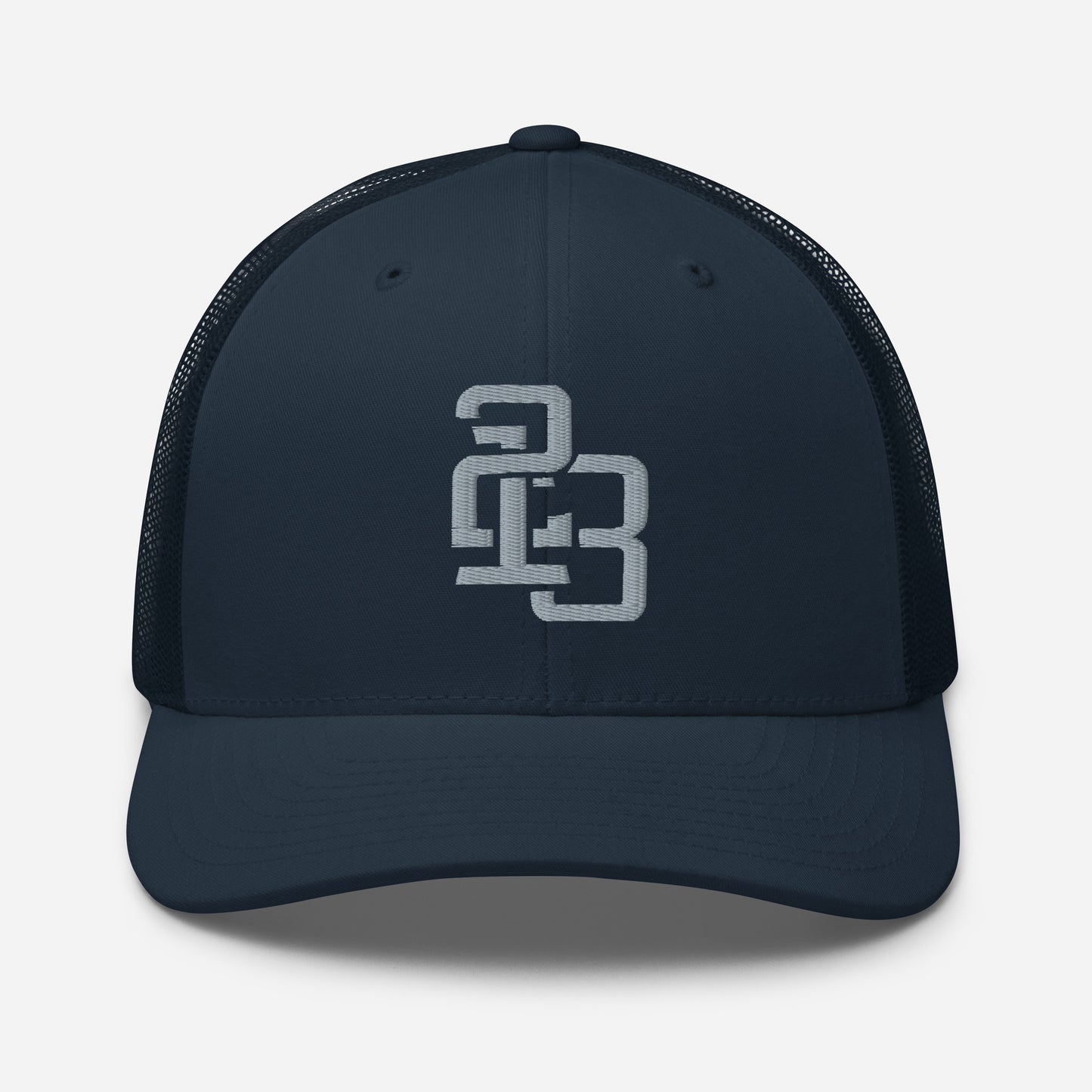 "213" Retro Trucker Hat | Yupoong 6606 | E Luna CLASSIC Solocrest 1 Grey Thread Front Logo