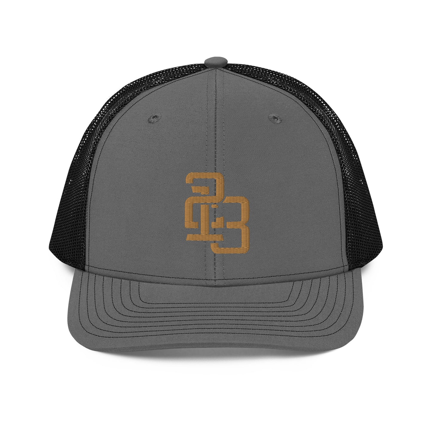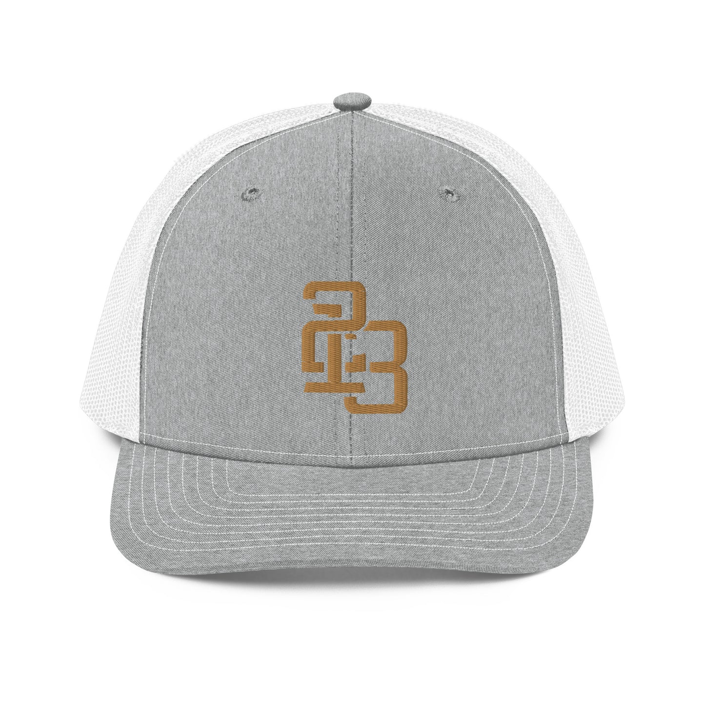 "213" Snapback Trucker Cap | Richardson 112 | E Luna CLASSIC Solocrest 1 Old Gold Thread Front Logo