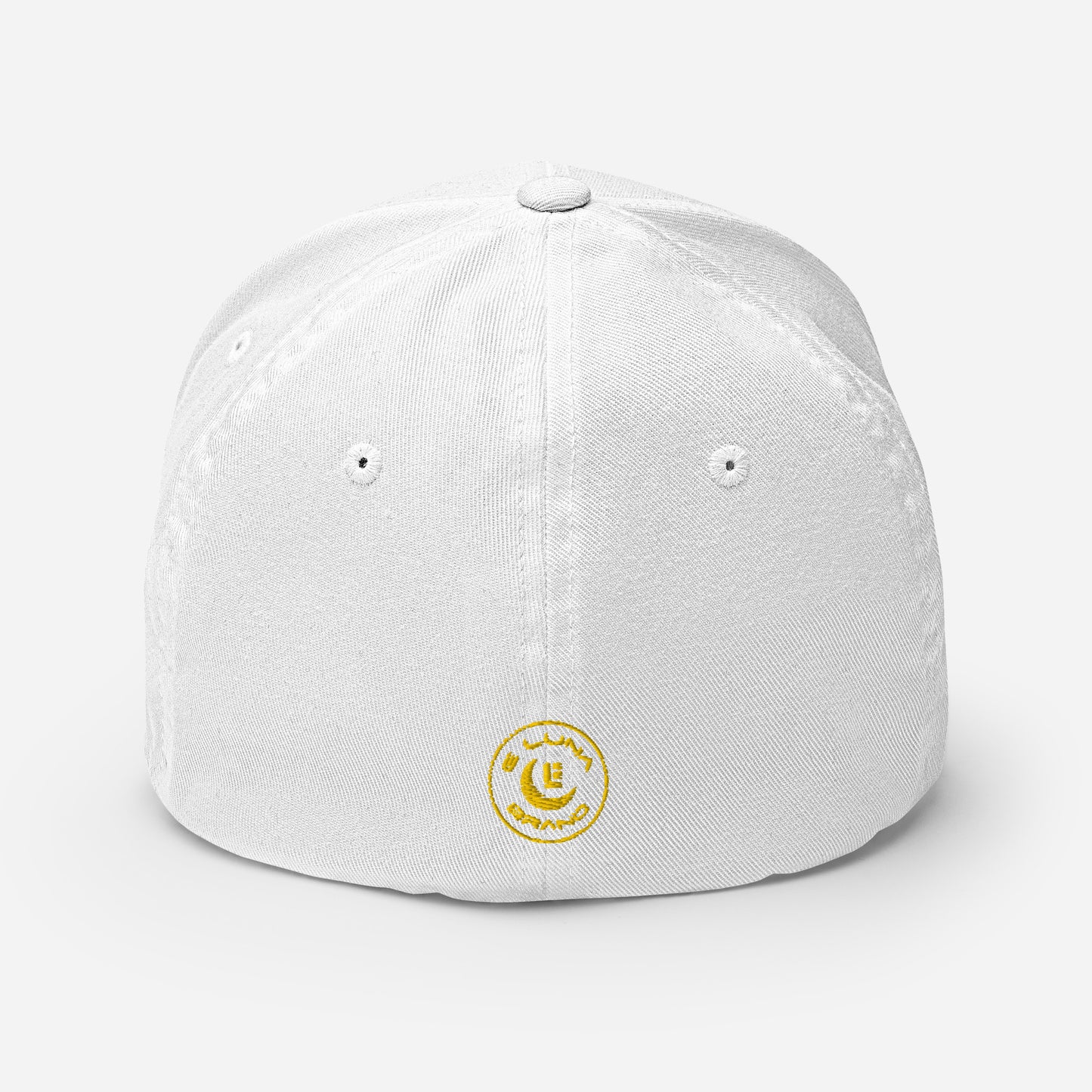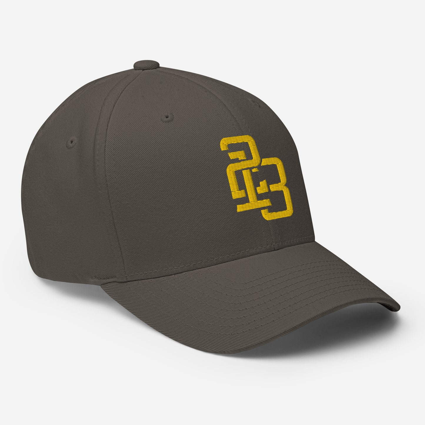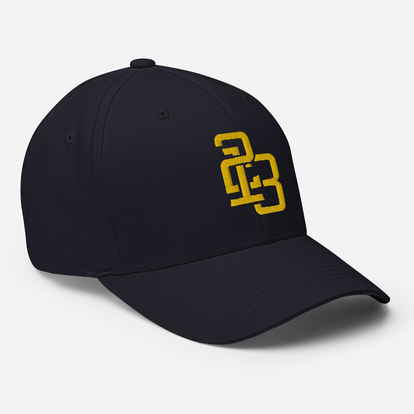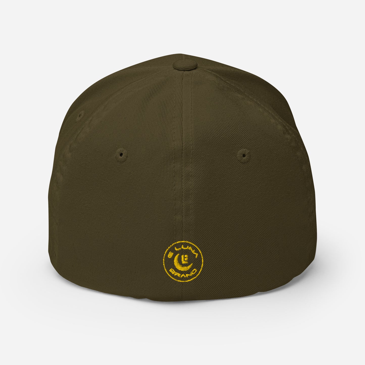 "213" Structured Twill Cap | Flexfit 6277 | E Luna SELECT Tricrest 3 Gold Thread Front, Left Side & Back Logos