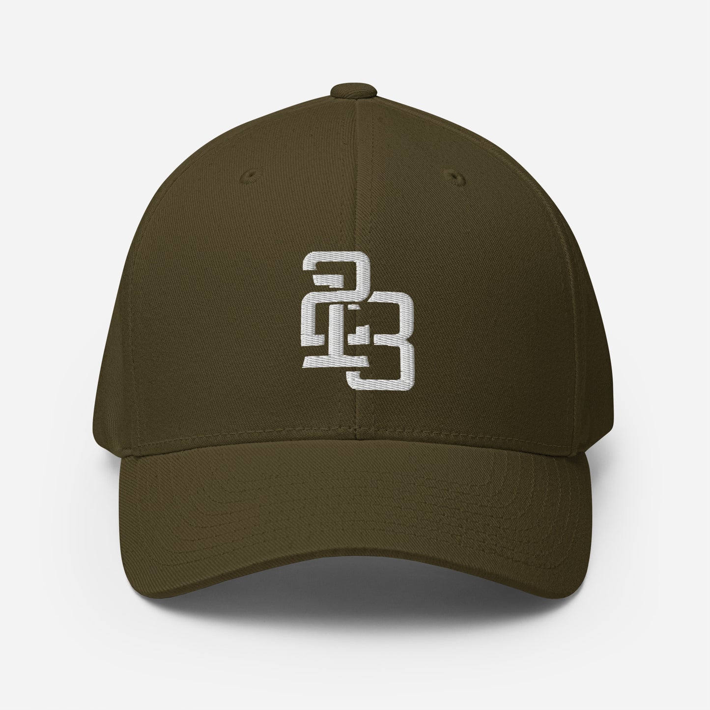"213" Structured Twill Cap | Flexfit 6277 | E Luna SELECT Tricrest 3 White Thread Front, Left Side & Back Logos