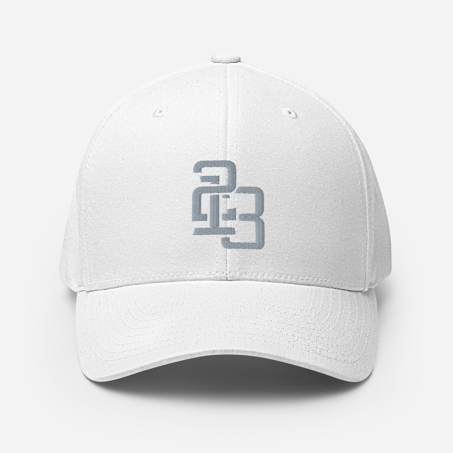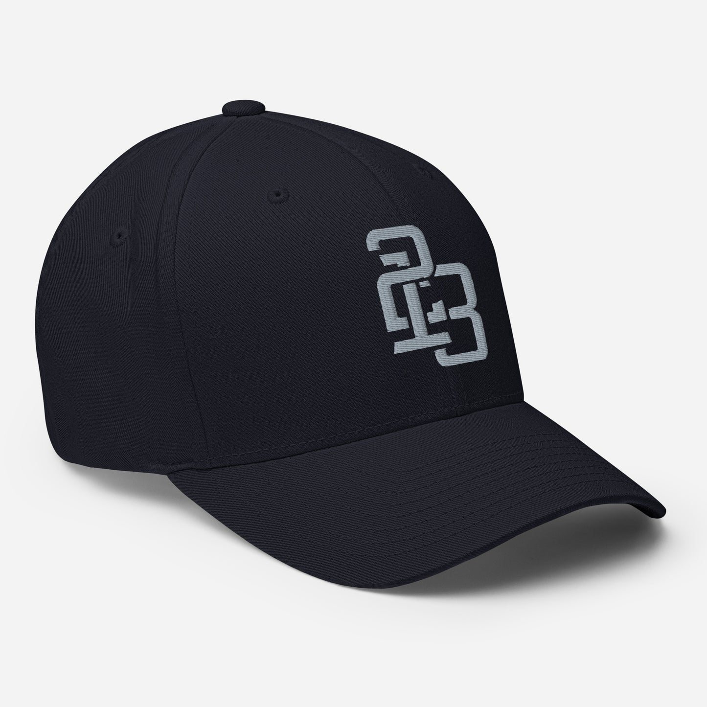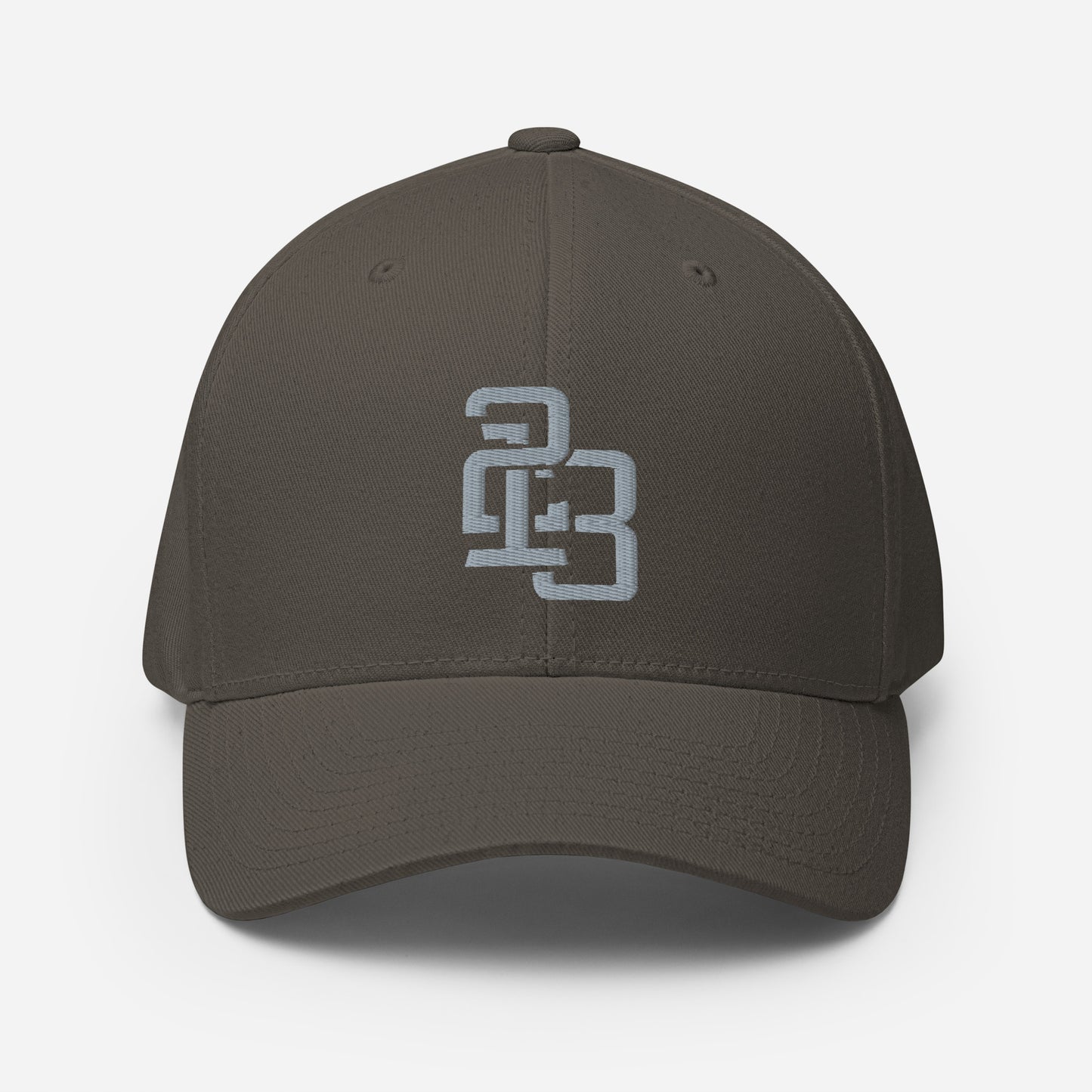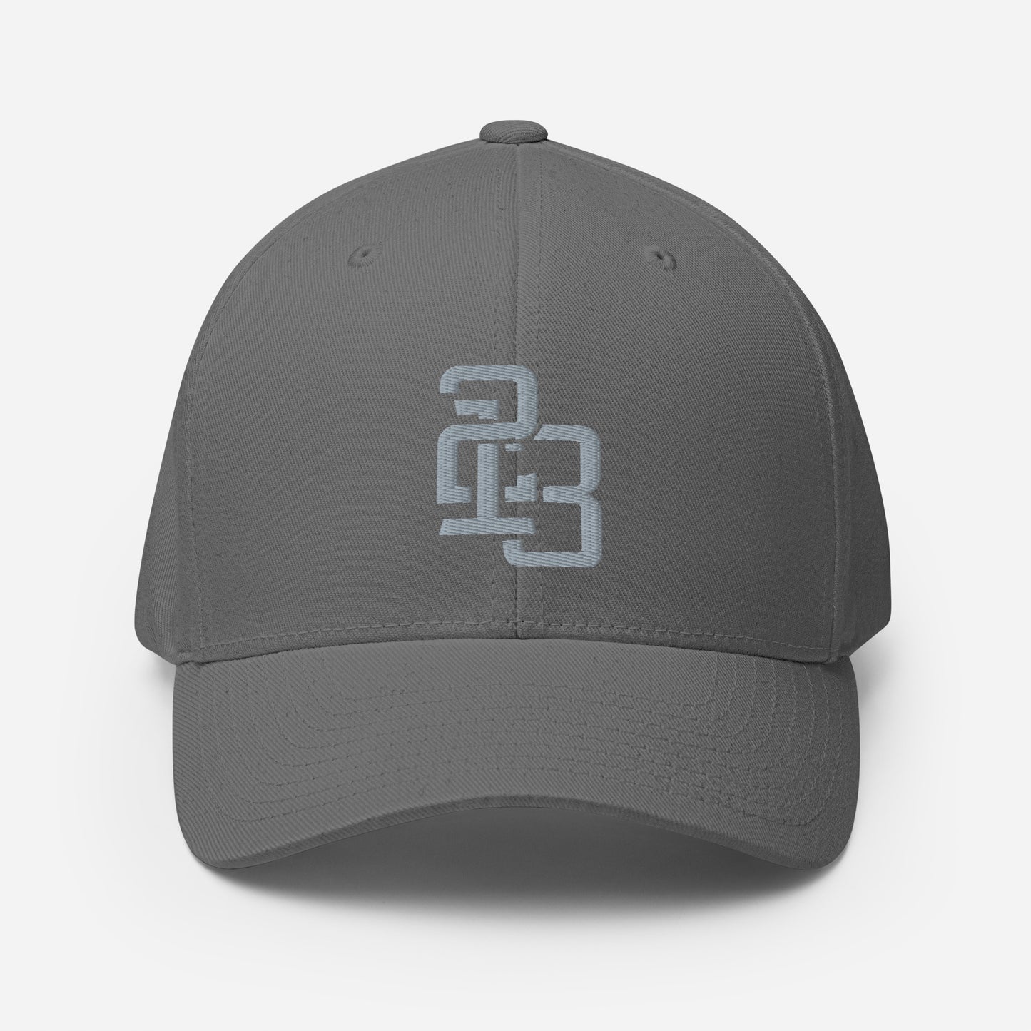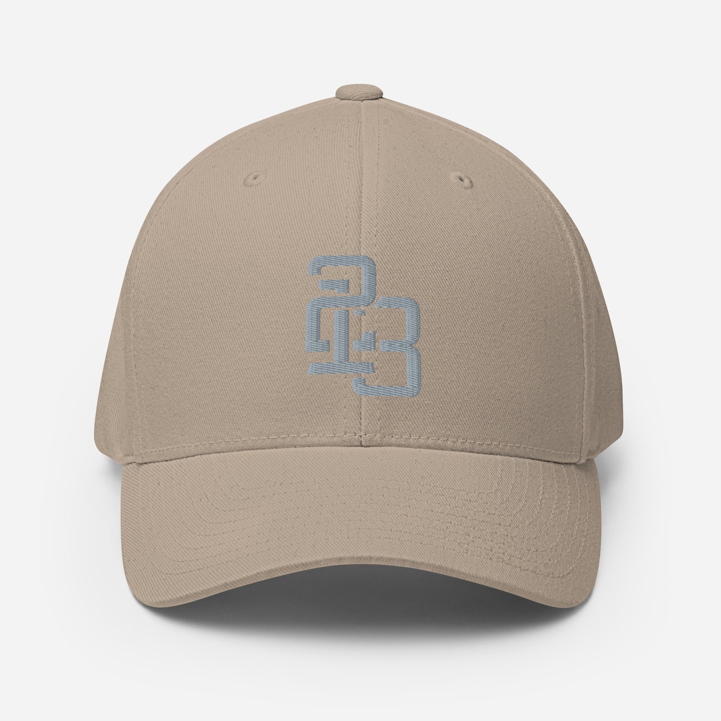 "213" Structured Twill Cap | Flexfit 6277 | E Luna ESSENTIAL Duocrest 2 Grey Thread Front & Left Side Logos