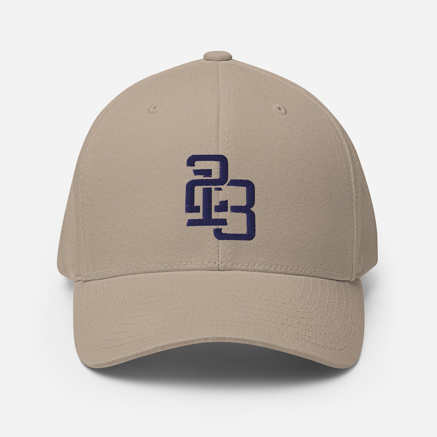 "213" Structured Twill Cap | Flexfit 6277 | E Luna ESSENTIAL Duocrest 2 Navy Thread Front & Left Side Logos