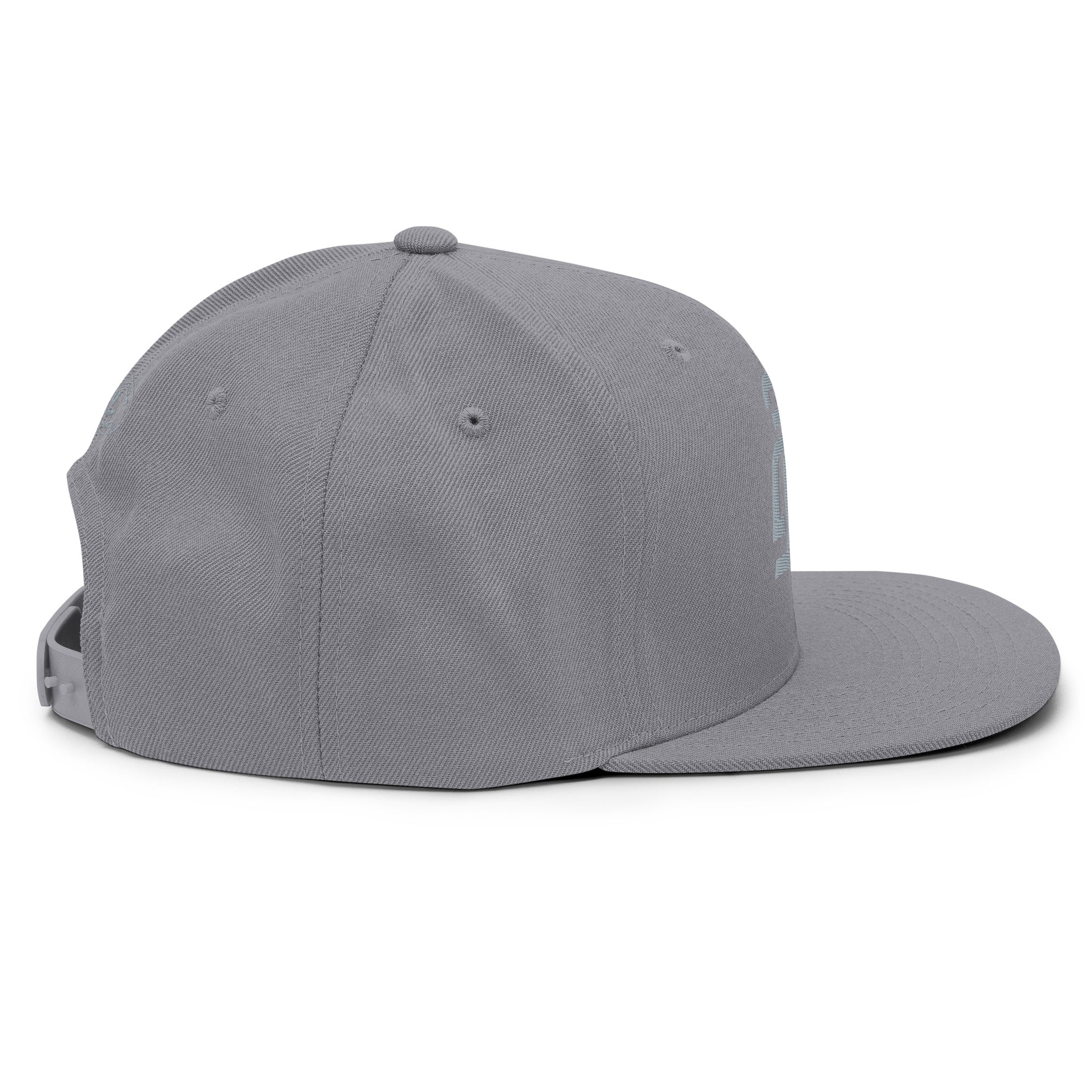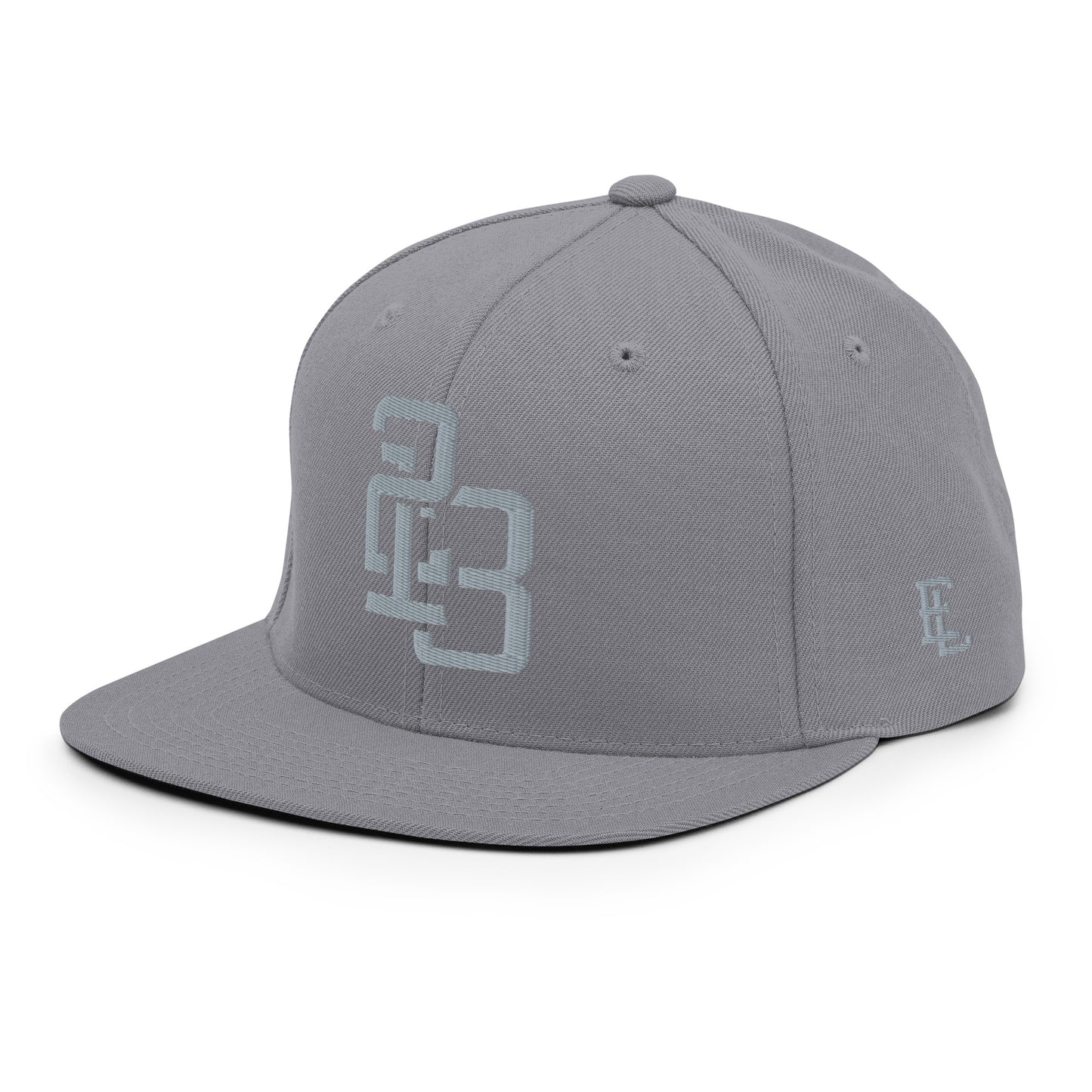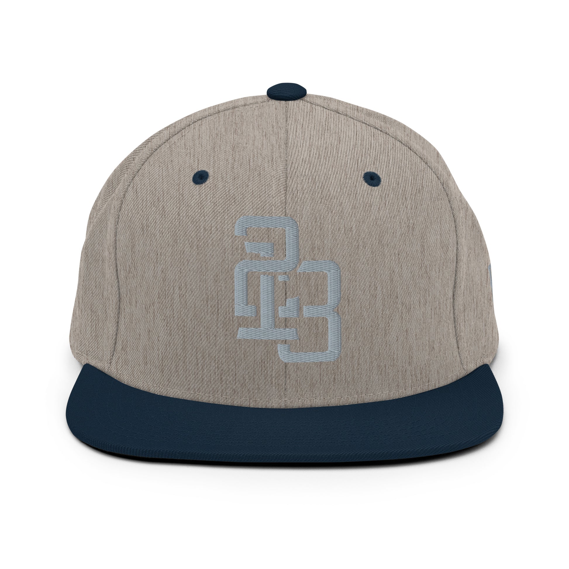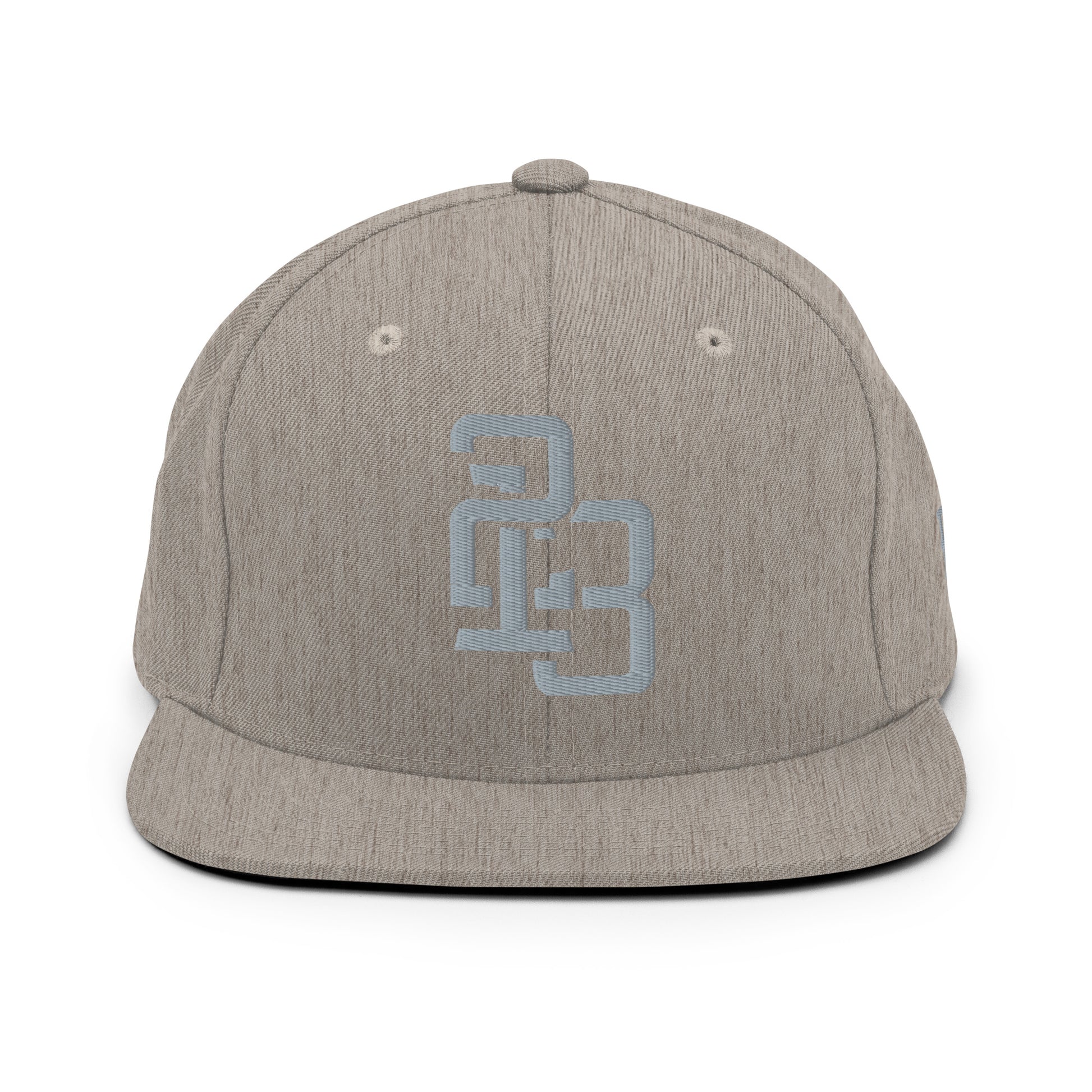 "213" Wool Blend Snapback Hat | Yupoong 6089M | E Luna SELECT Tricrest 3 Grey Thread Front, Left Side & Back Logos