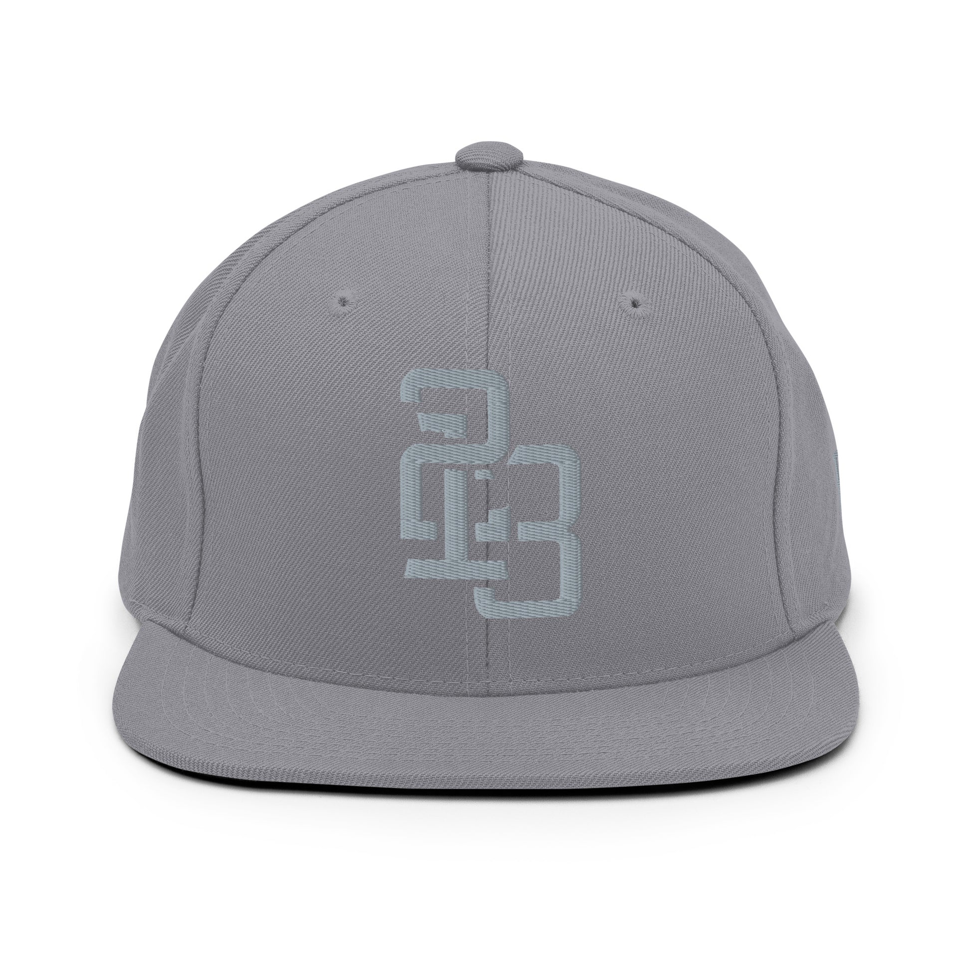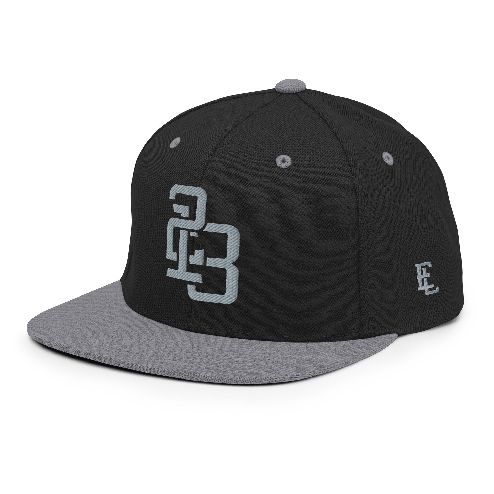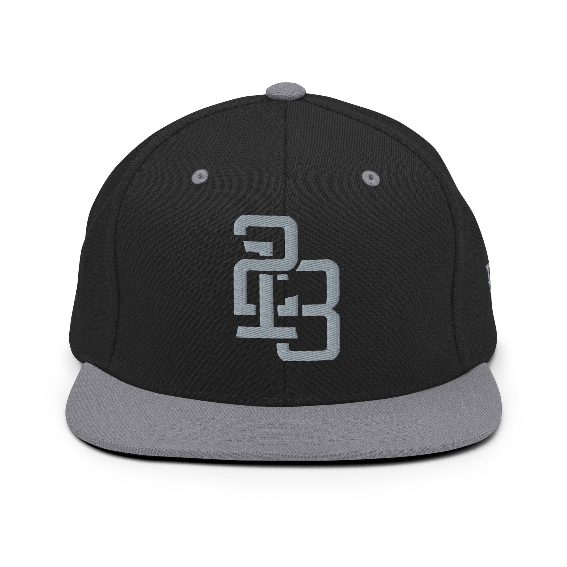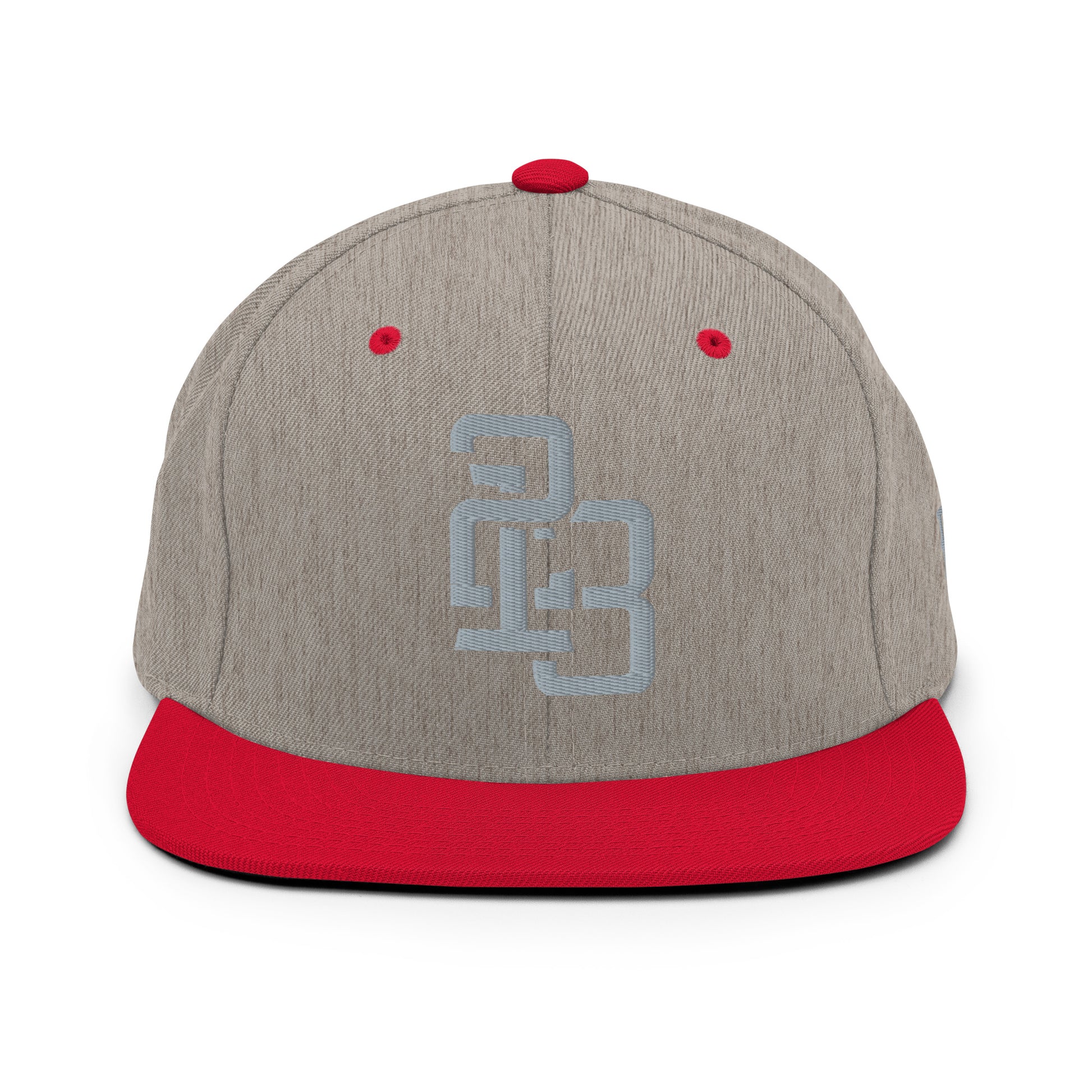 "213" Wool Blend Snapback Hat | Yupoong 6089M | E Luna SELECT Tricrest 3 Grey Thread Front, Left Side & Back Logos