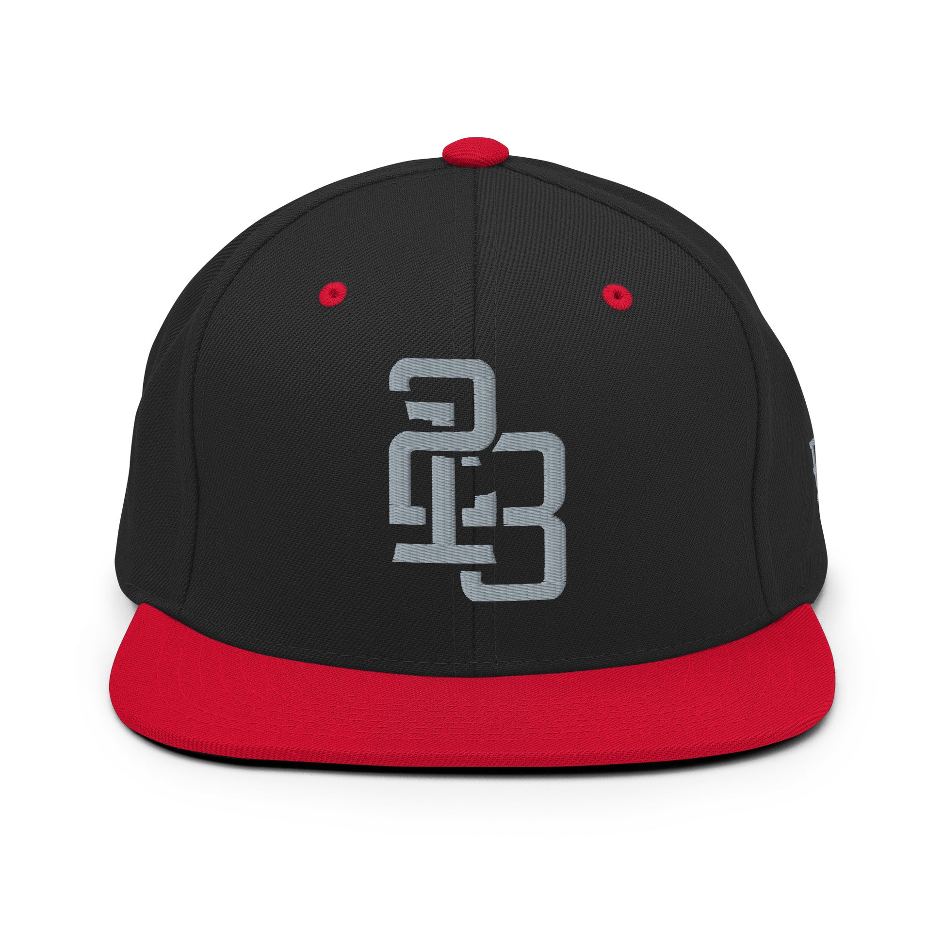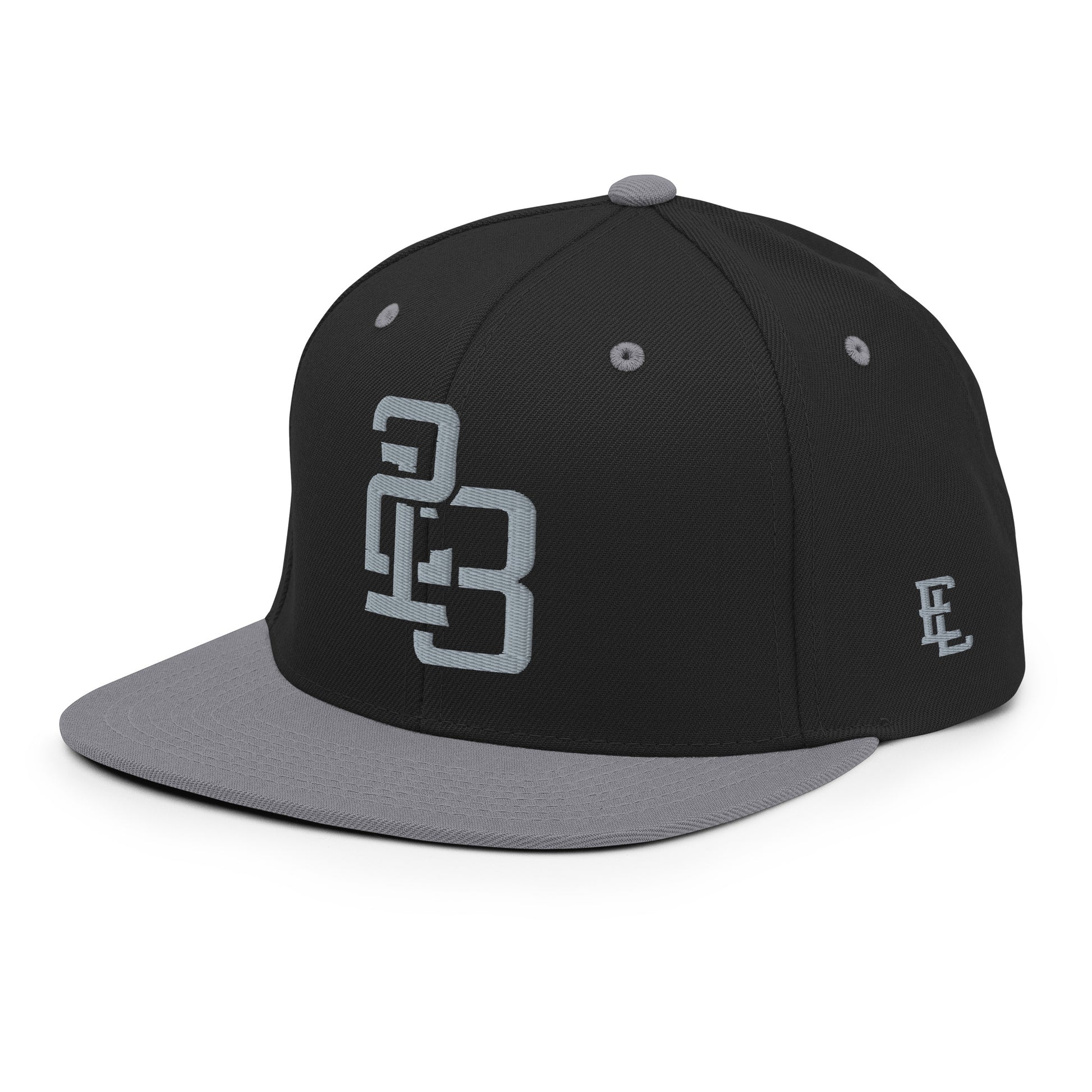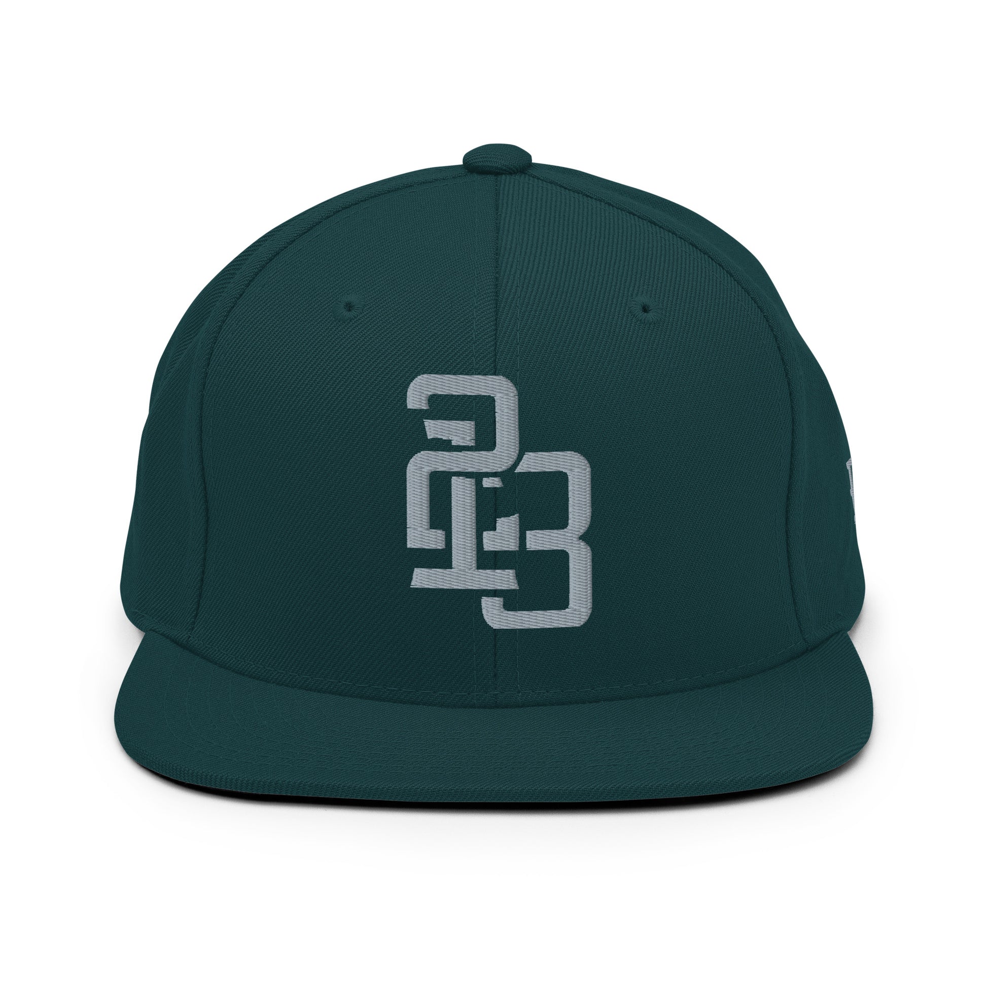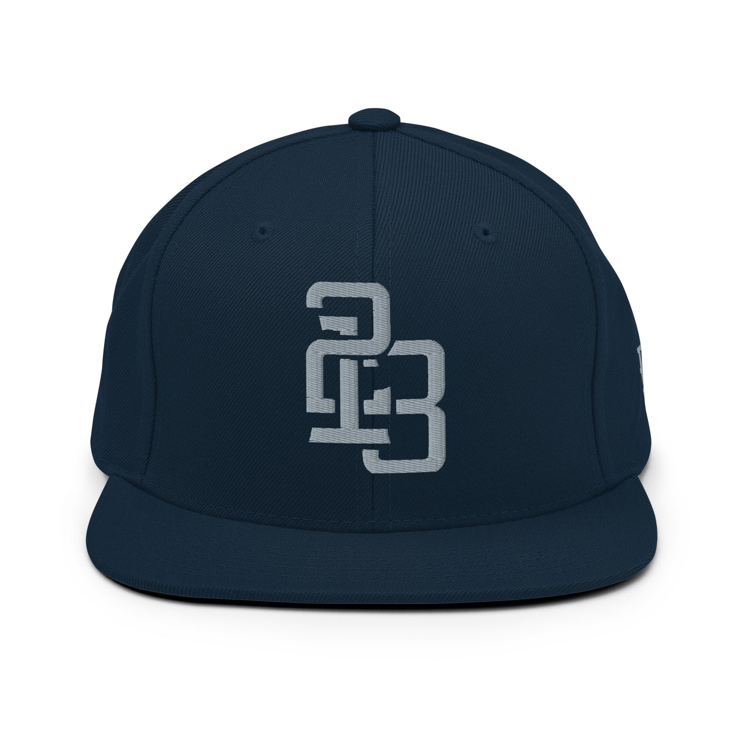 "213" Wool Blend Snapback Hat | Yupoong 6089M | E Luna SELECT Tricrest 3 Grey Thread Front, Left Side & Back Logos