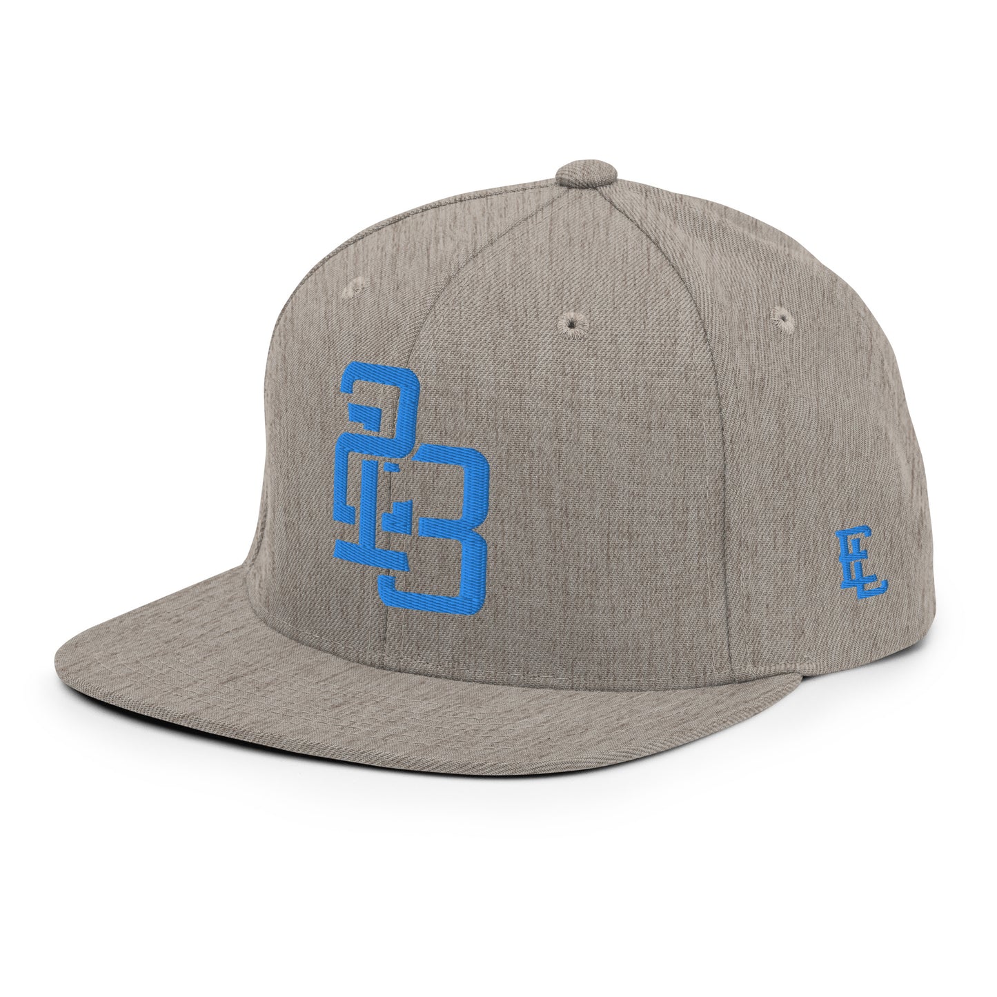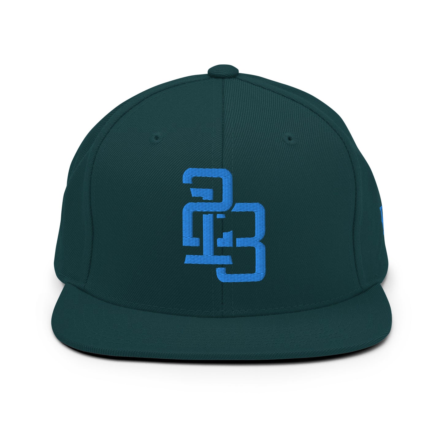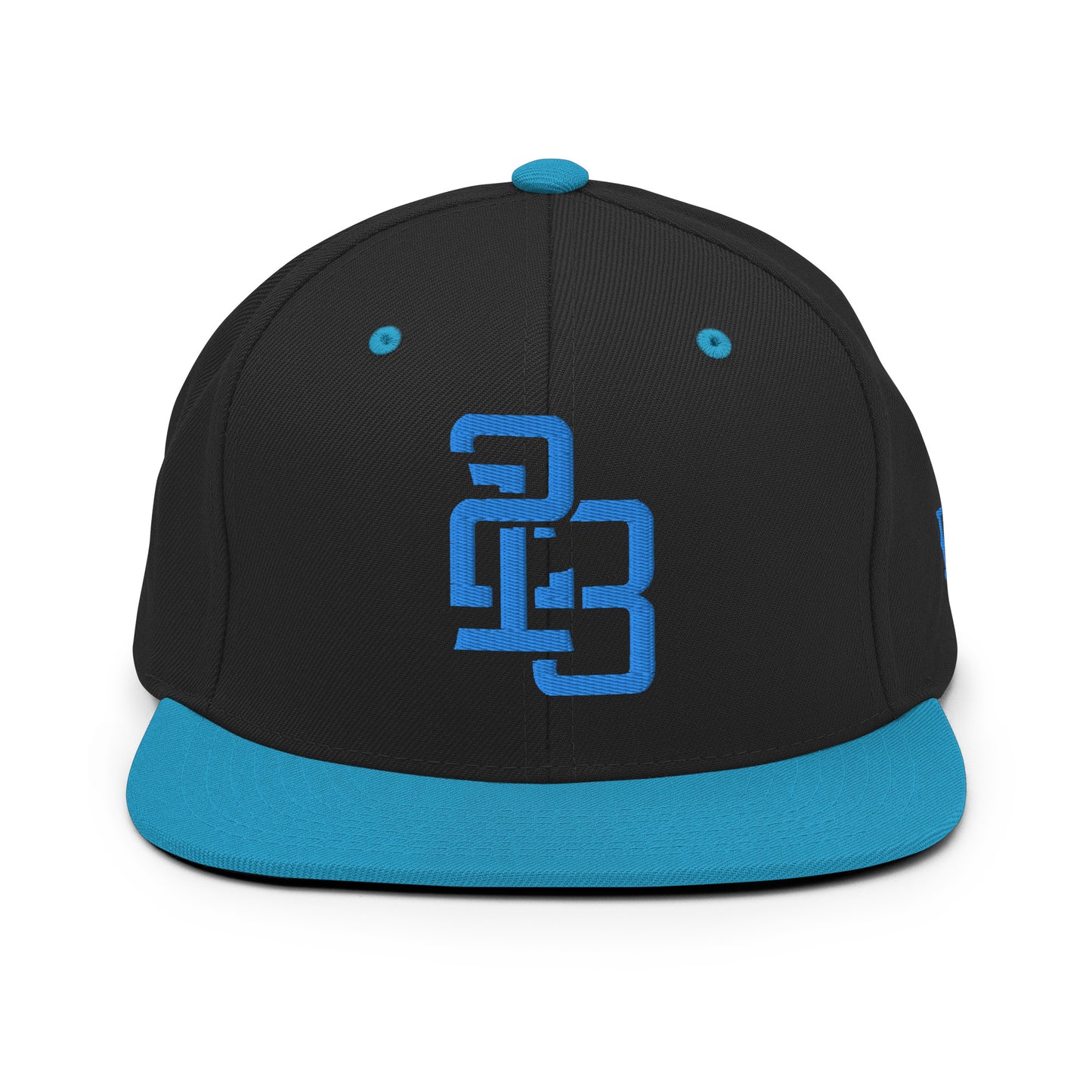 "213" Wool Blend Snapback Hat | Yupoong 6089M | E Luna ESSENTIAL Duocrest 2 Aqua/Teal Thread Front & Left Side Logos
