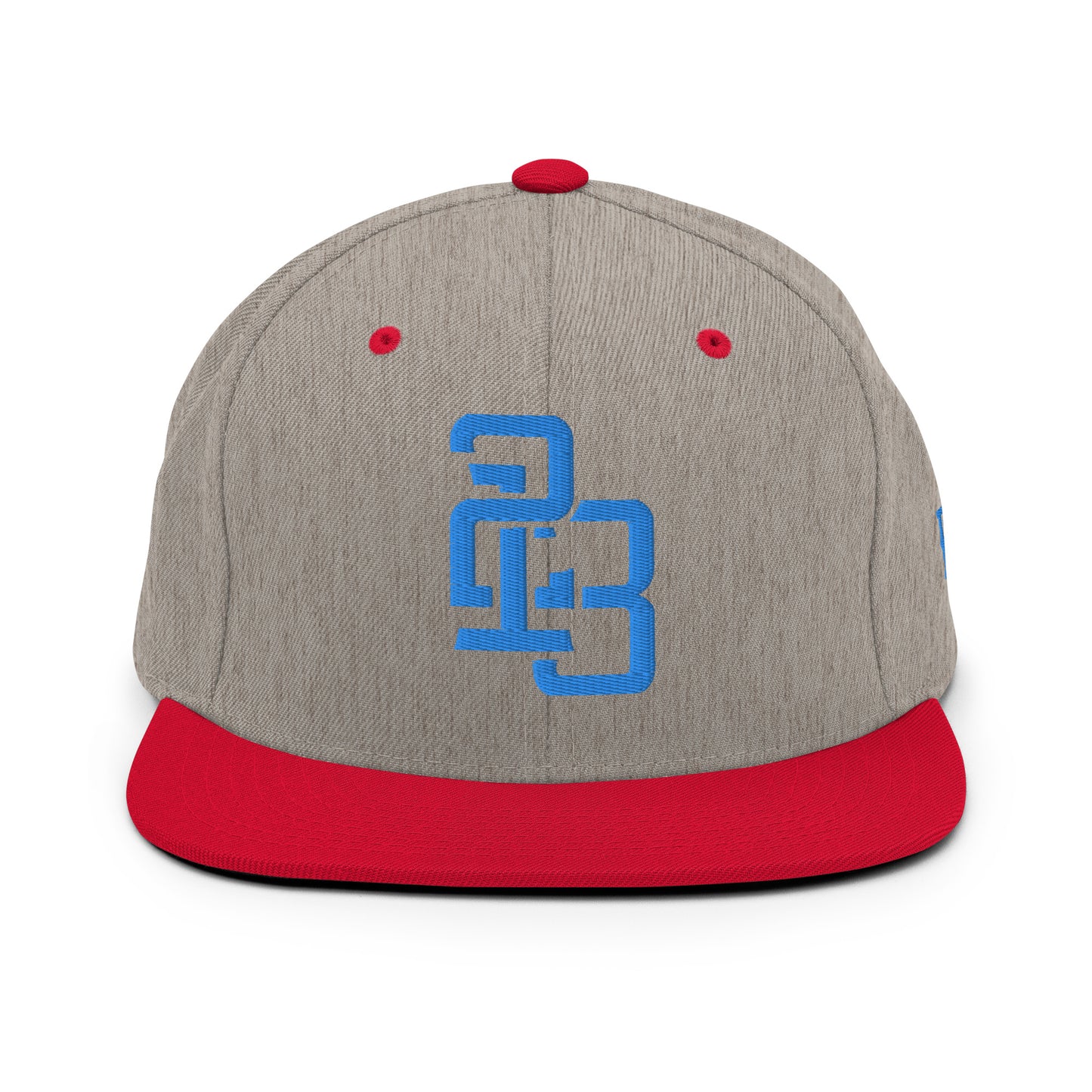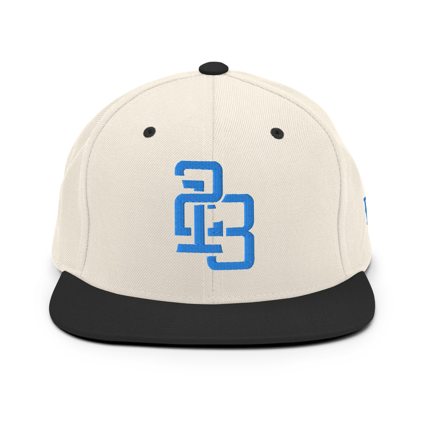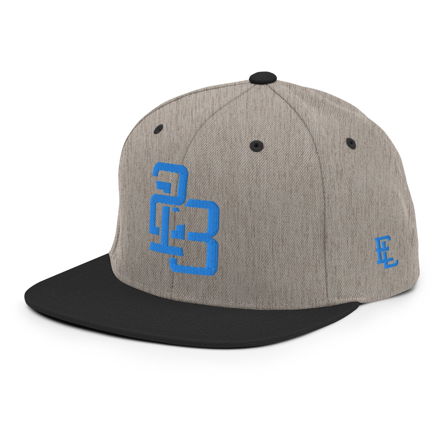 "213" Wool Blend Snapback Hat | Yupoong 6089M | E Luna ESSENTIAL Duocrest 2 Aqua/Teal Thread Front & Left Side Logos
