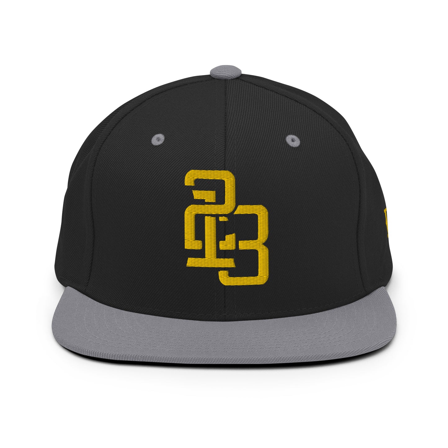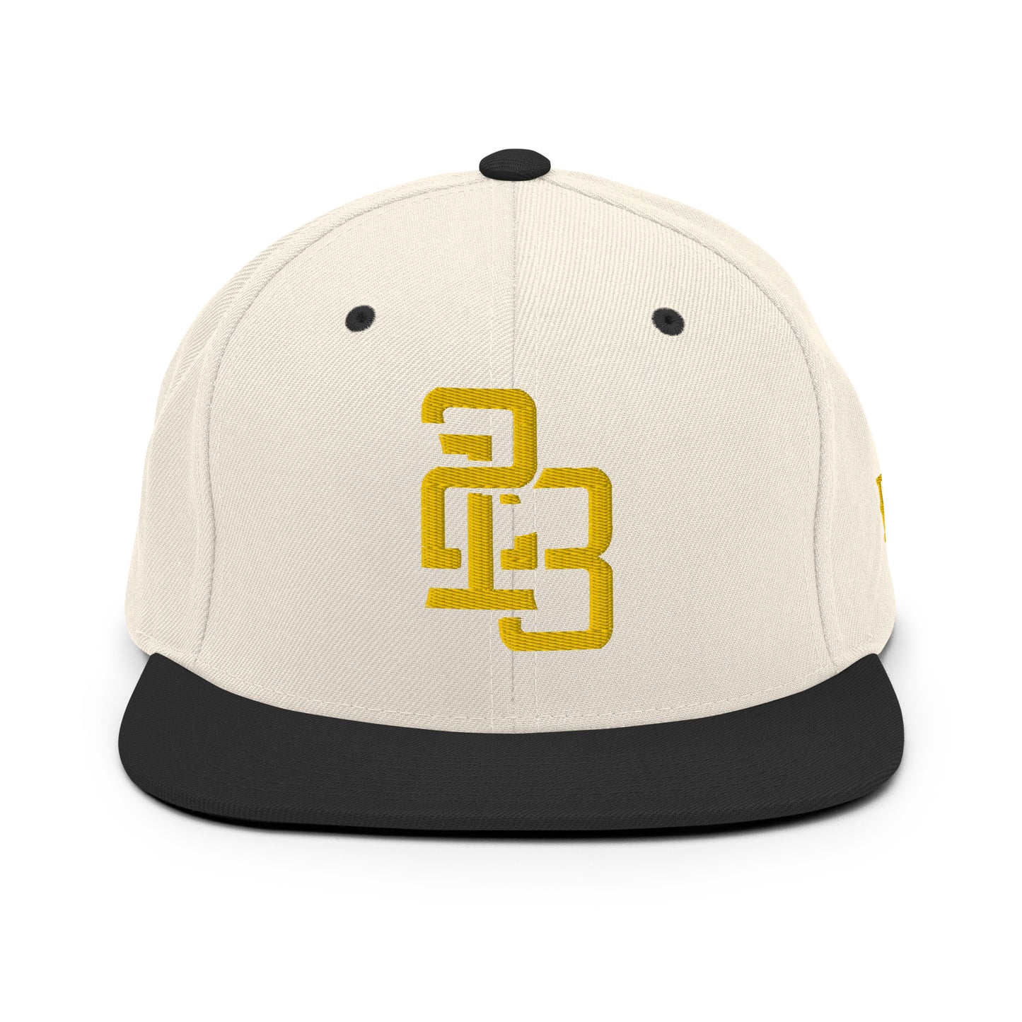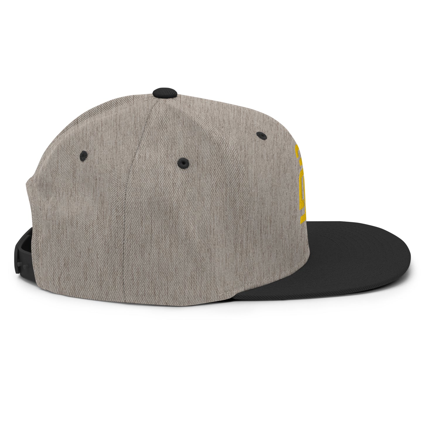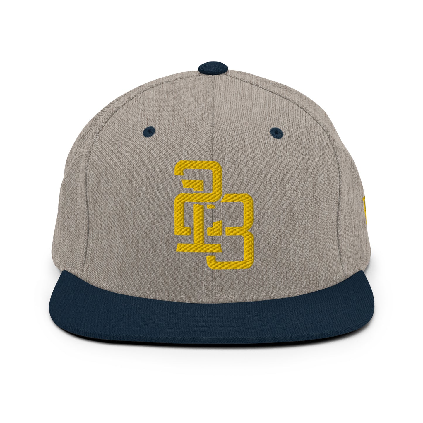 "213" Wool Blend Snapback Hat | Yupoong 6089M | E Luna ESSENTIAL Duocrest 2 Gold Thread Front & Left Side Logos