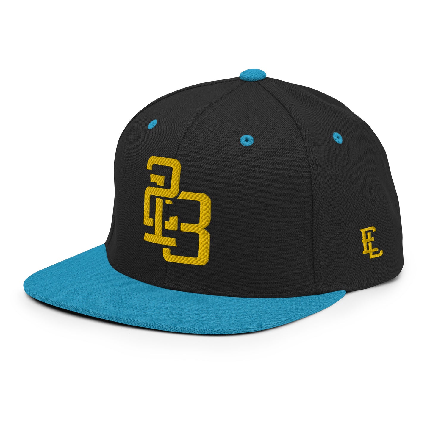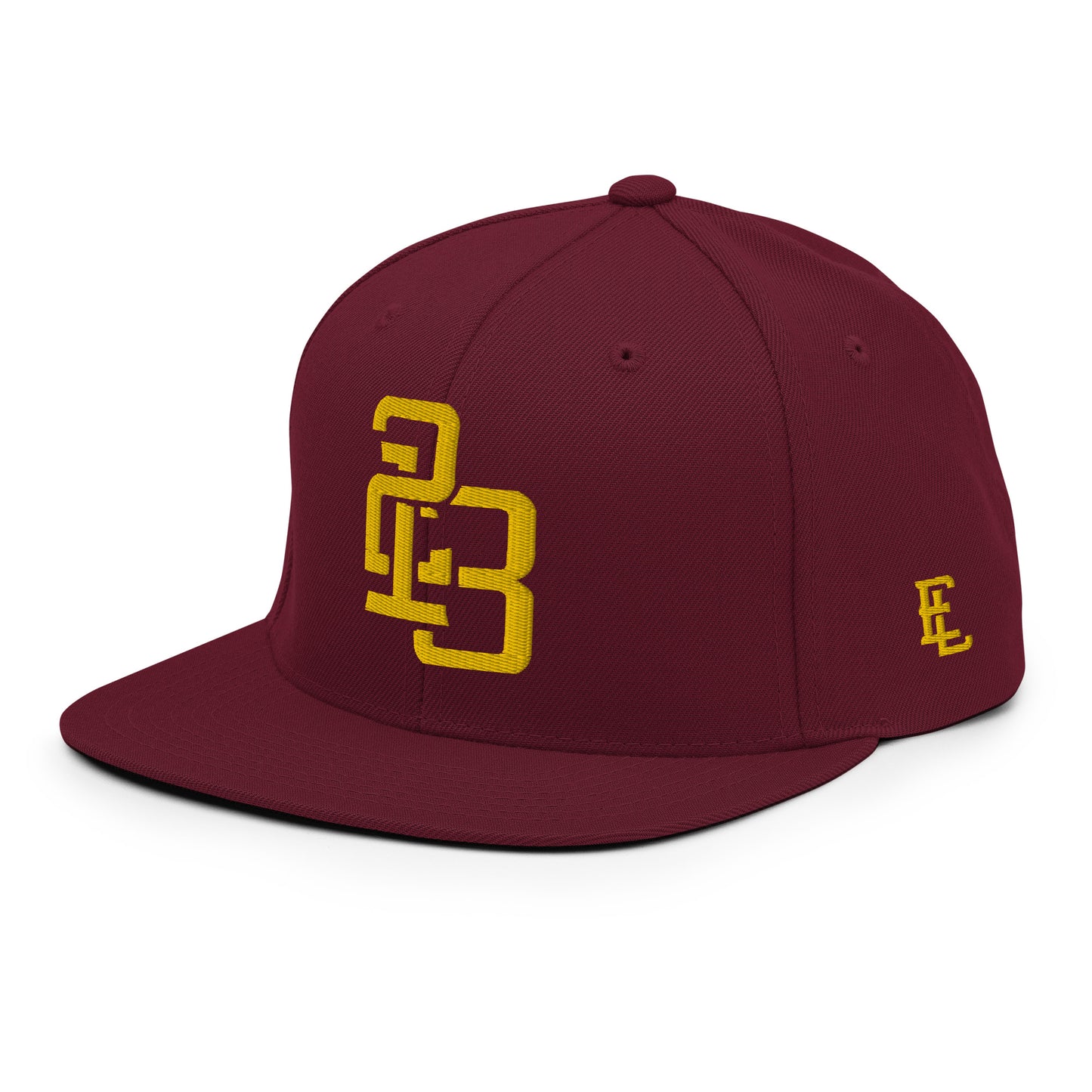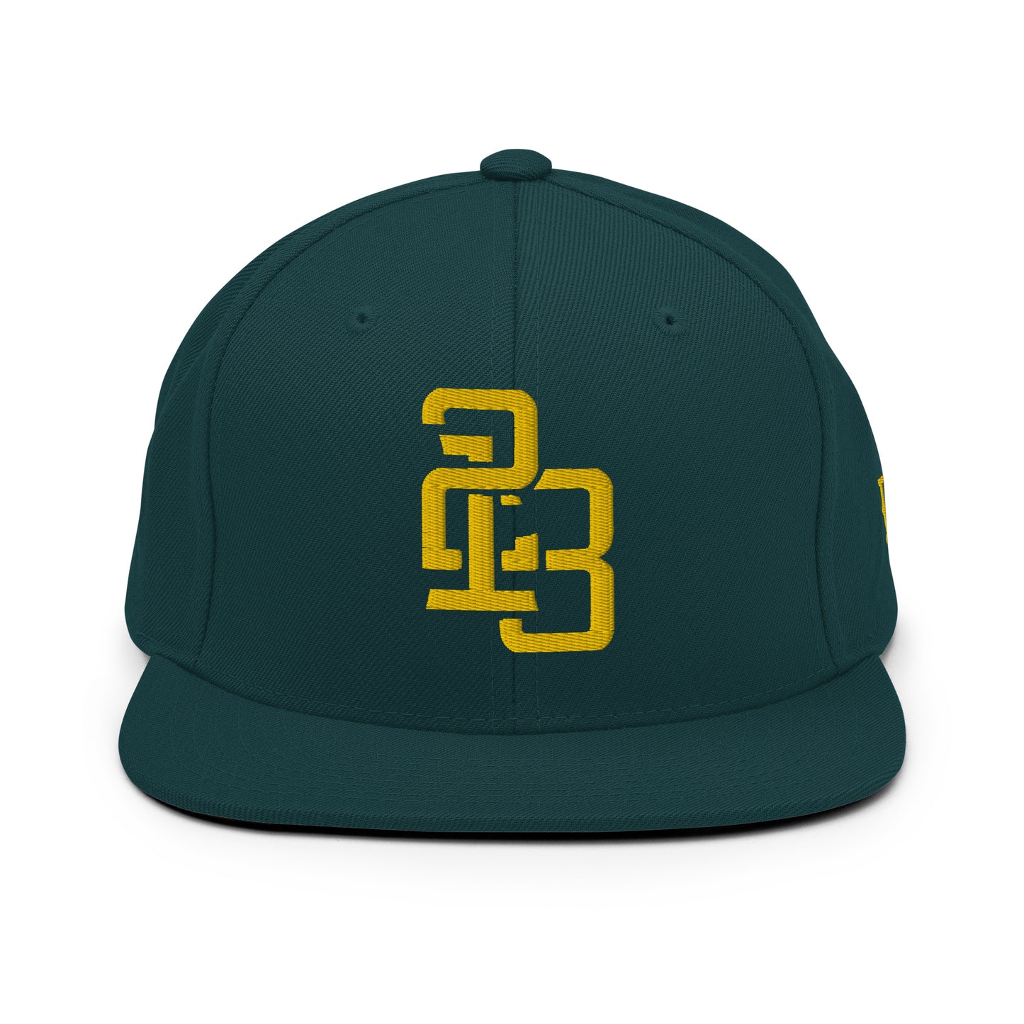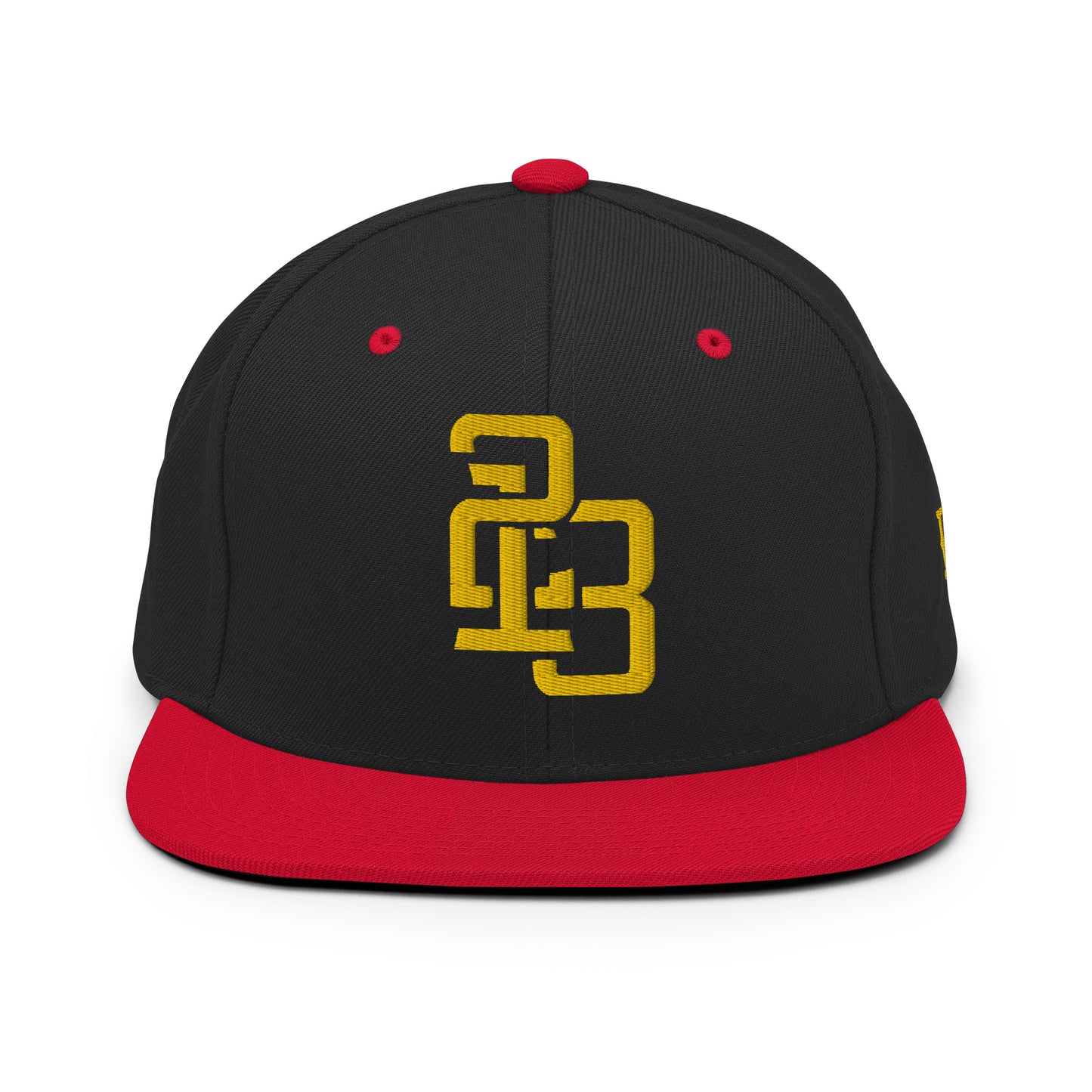 "213" Wool Blend Snapback Hat | Yupoong 6089M | E Luna ESSENTIAL Duocrest 2 Gold Thread Front & Left Side Logos