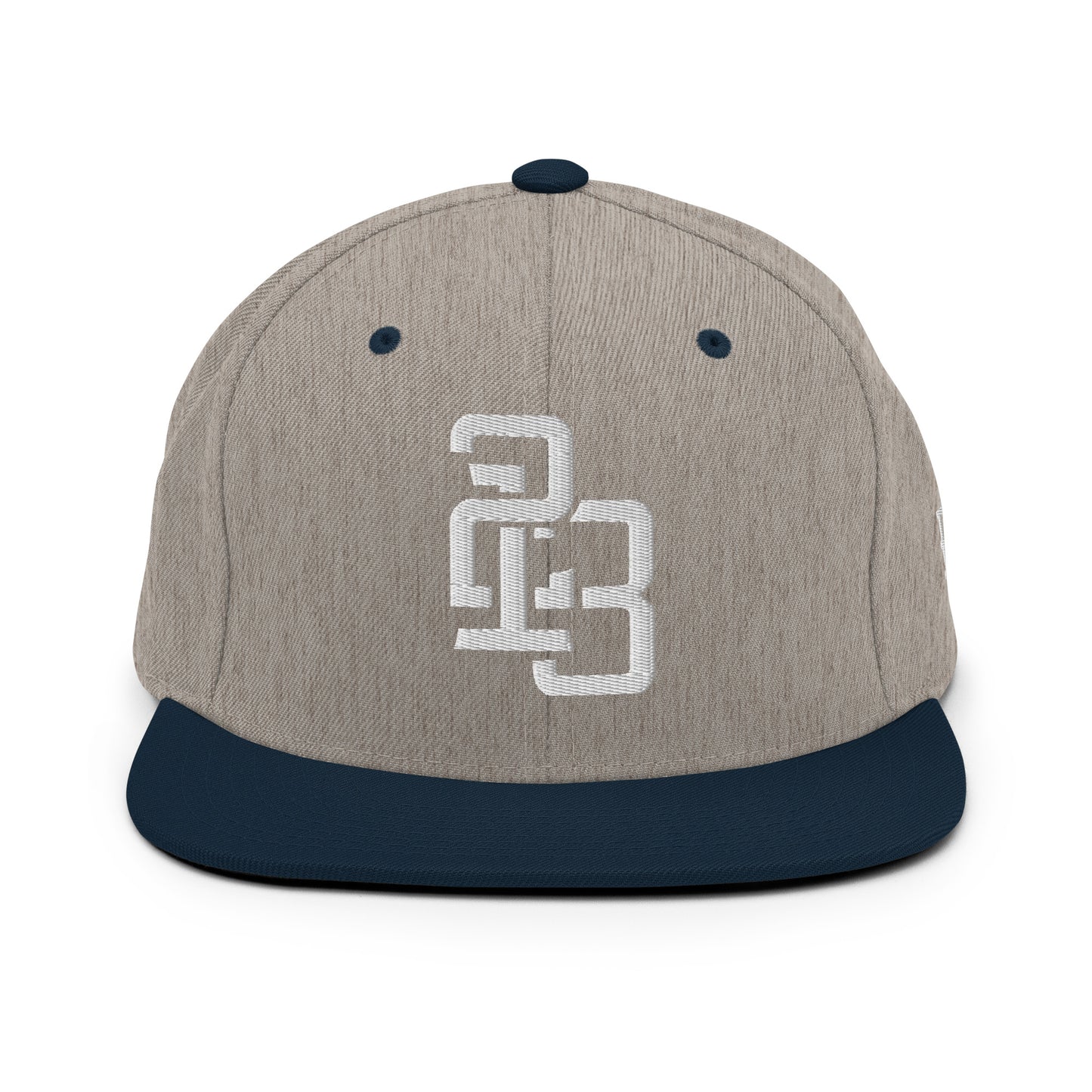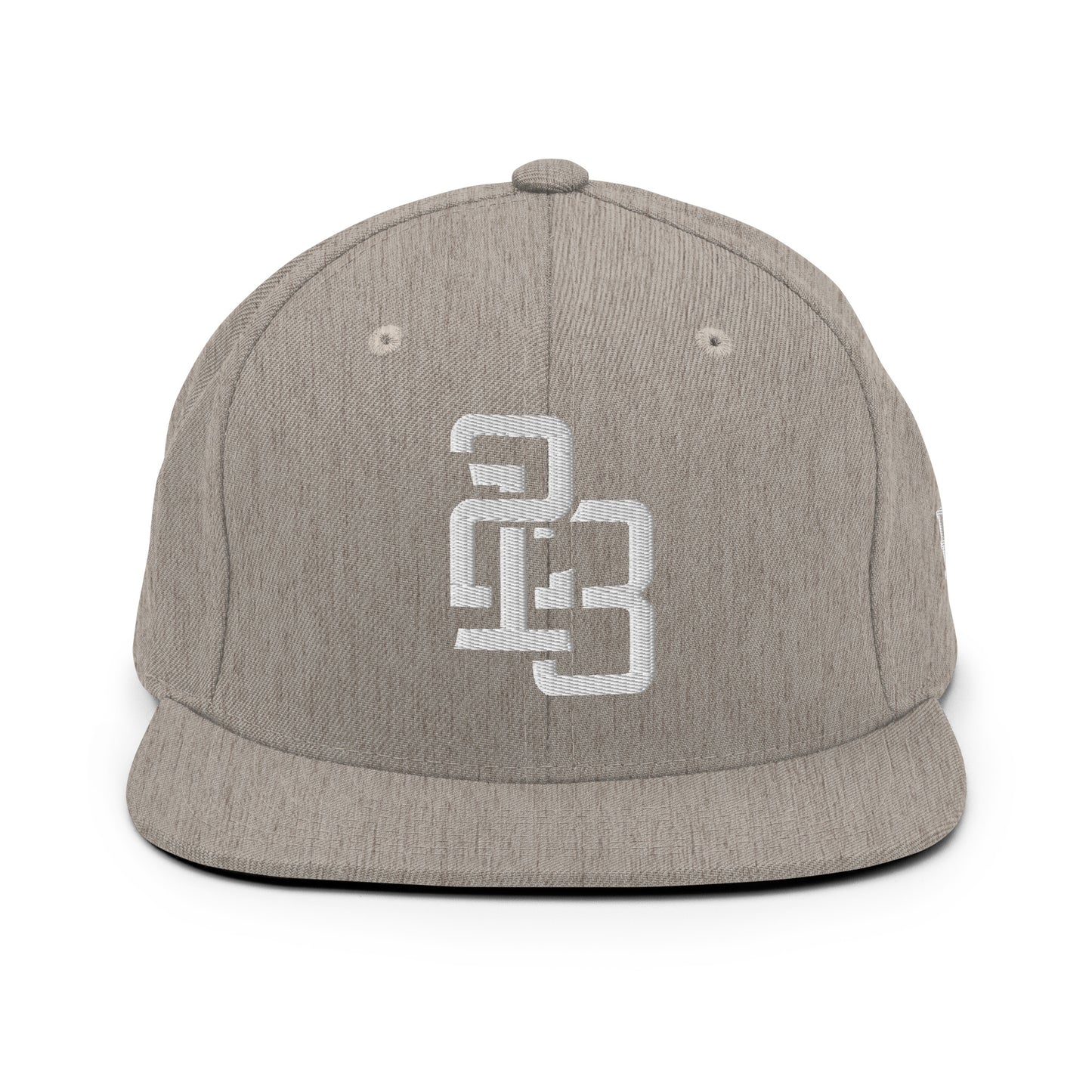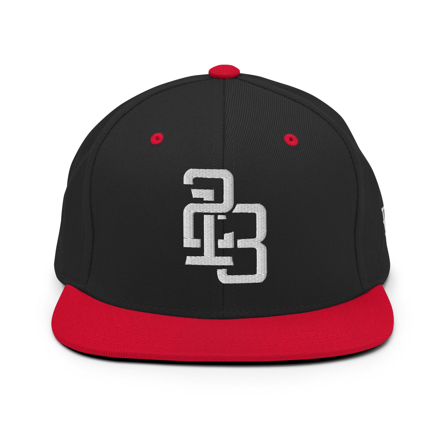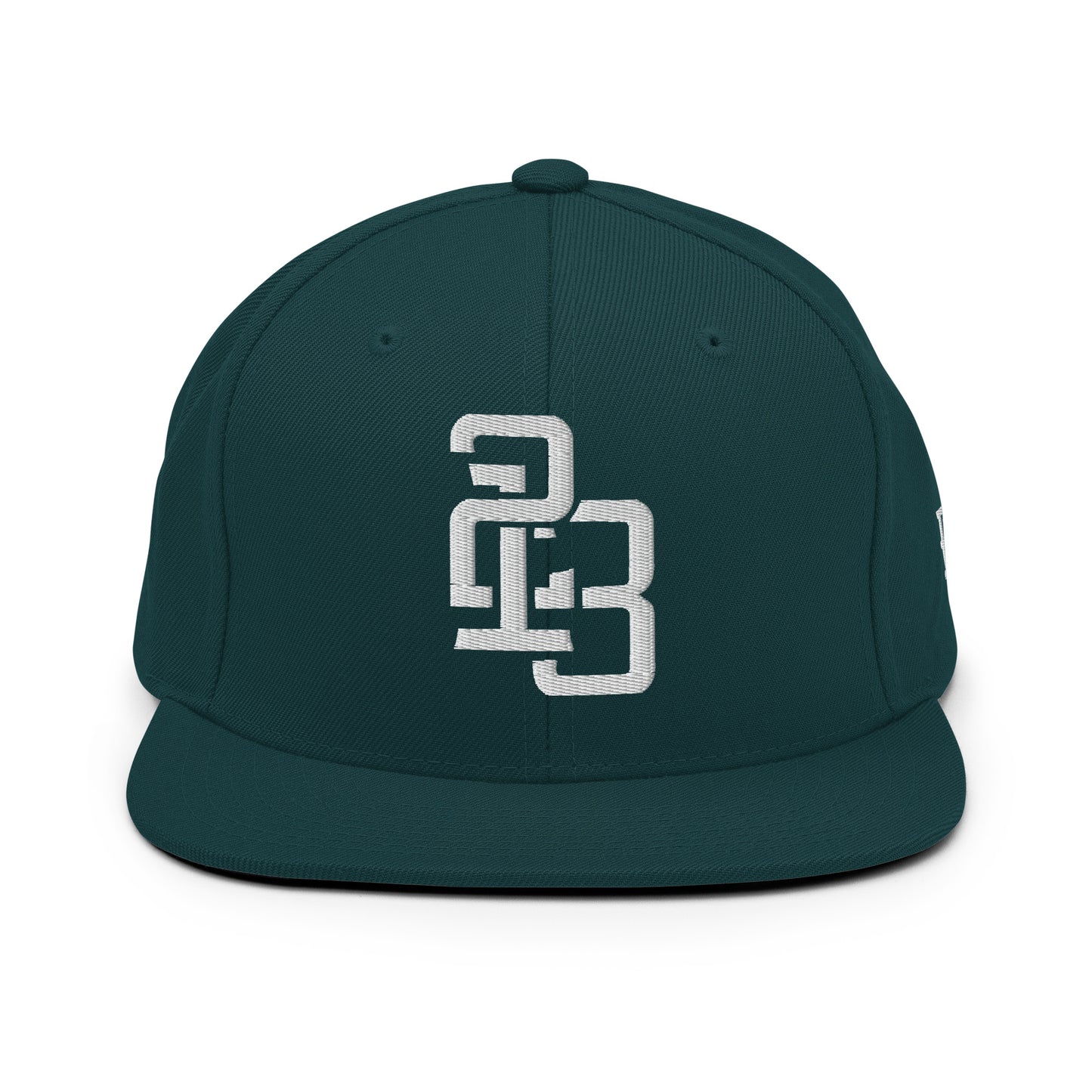 "213" Wool Blend Snapback Hat | Yupoong 6089M | E Luna ESSENTIAL Duocrest 2 White Thread Front & Left Side Logos