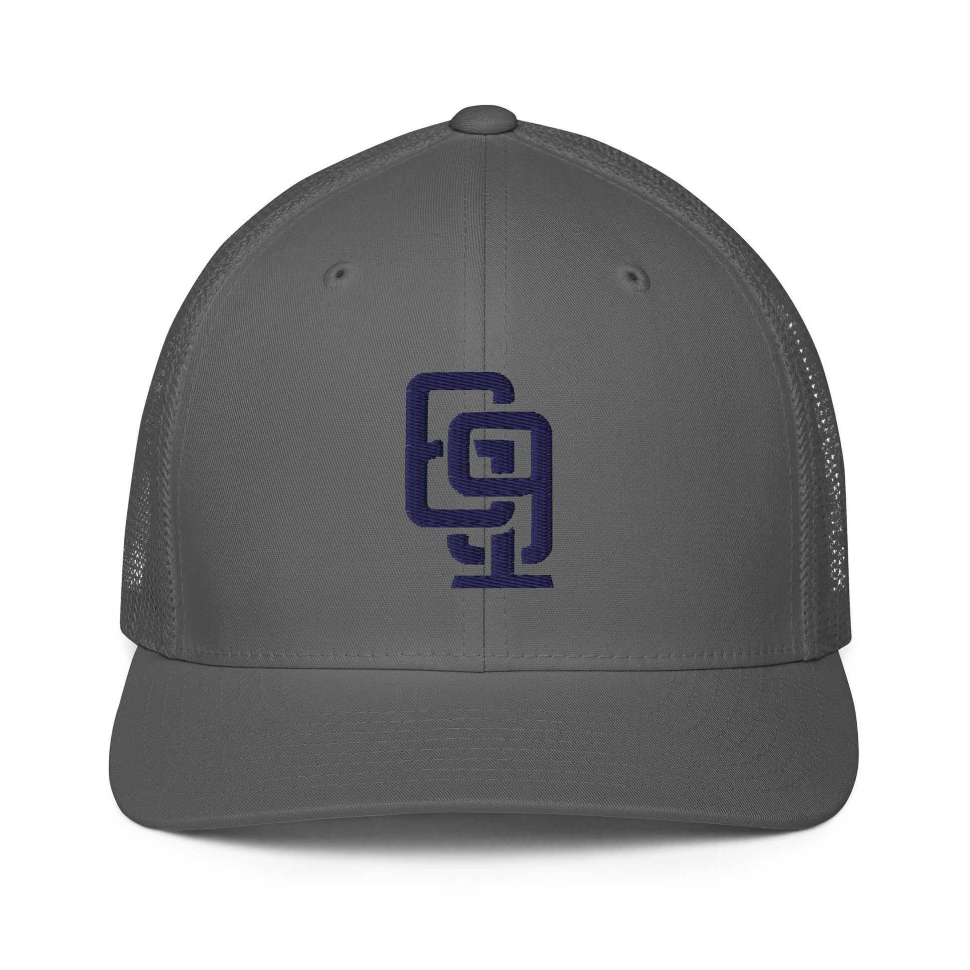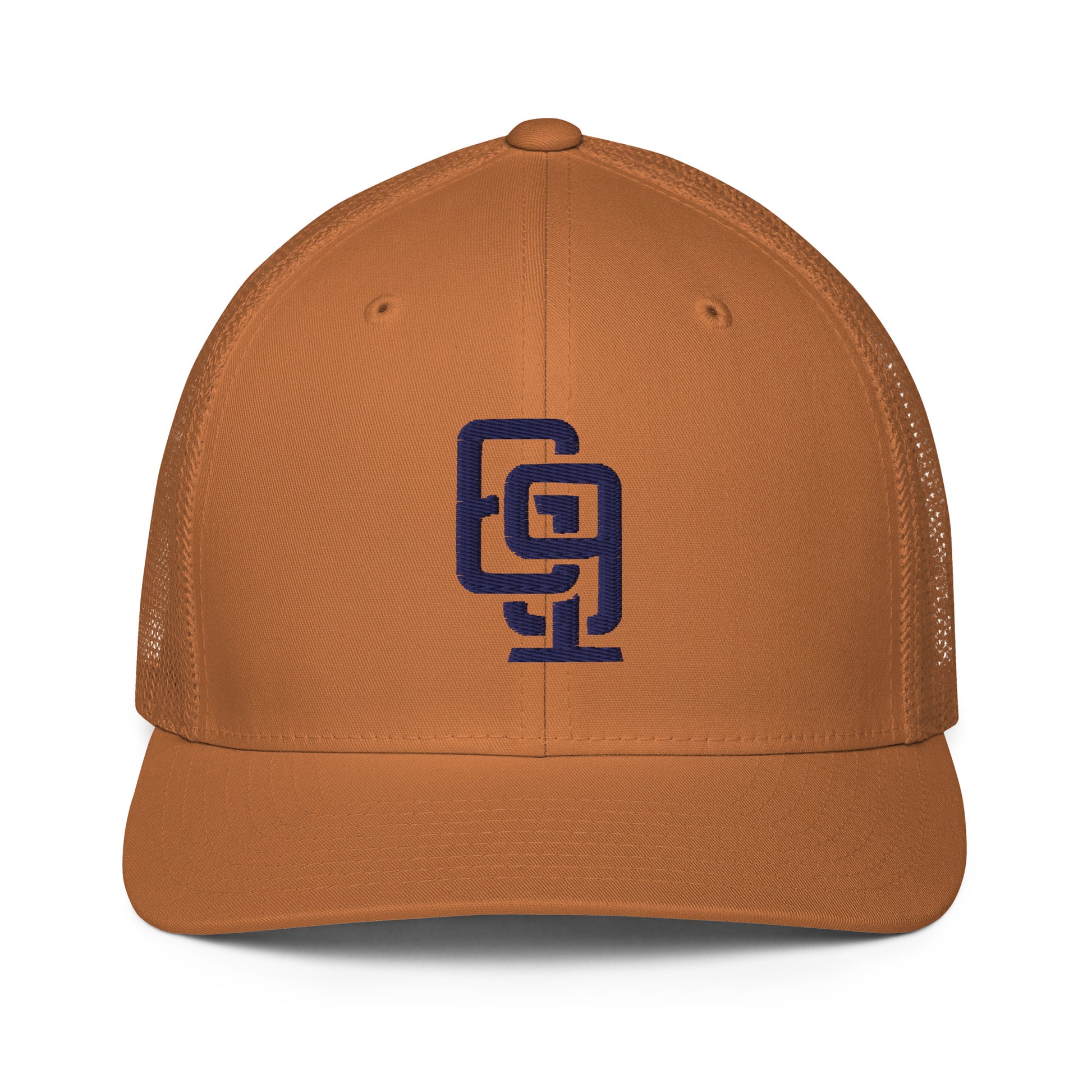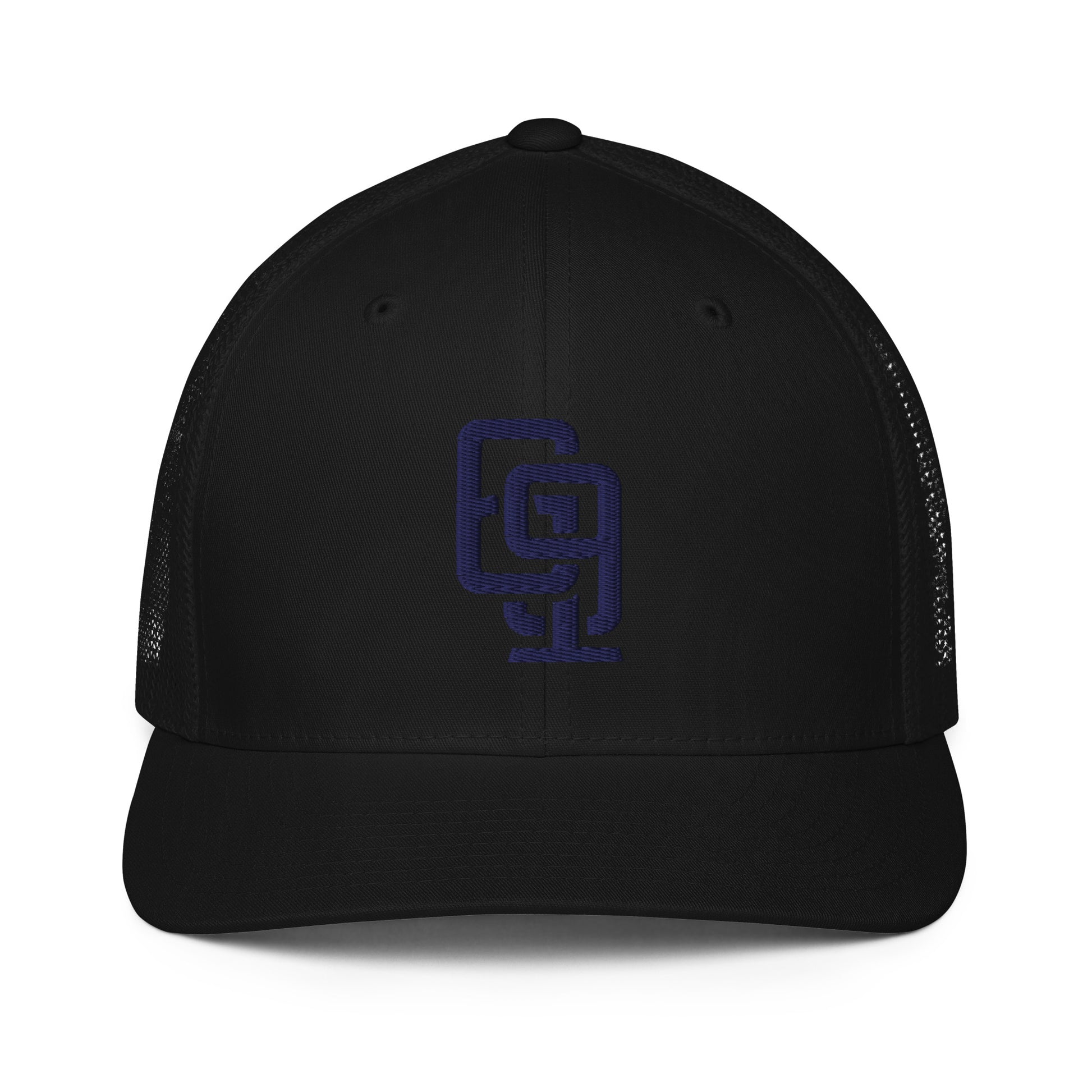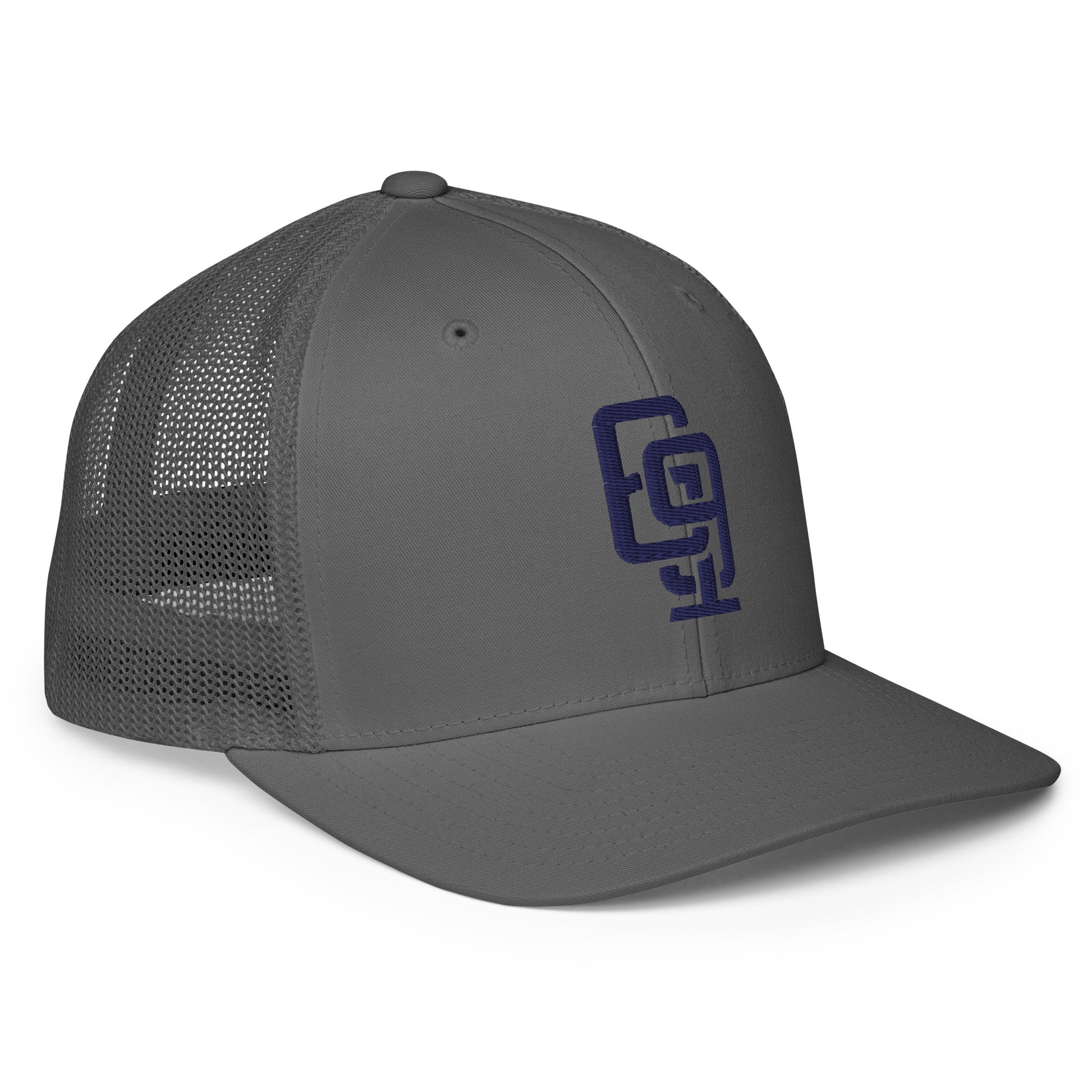 "619" Closed-Back Trucker Cap | Flexfit 6511 | E Luna CLASSIC Solocrest 1 Navy Thread Front Logo