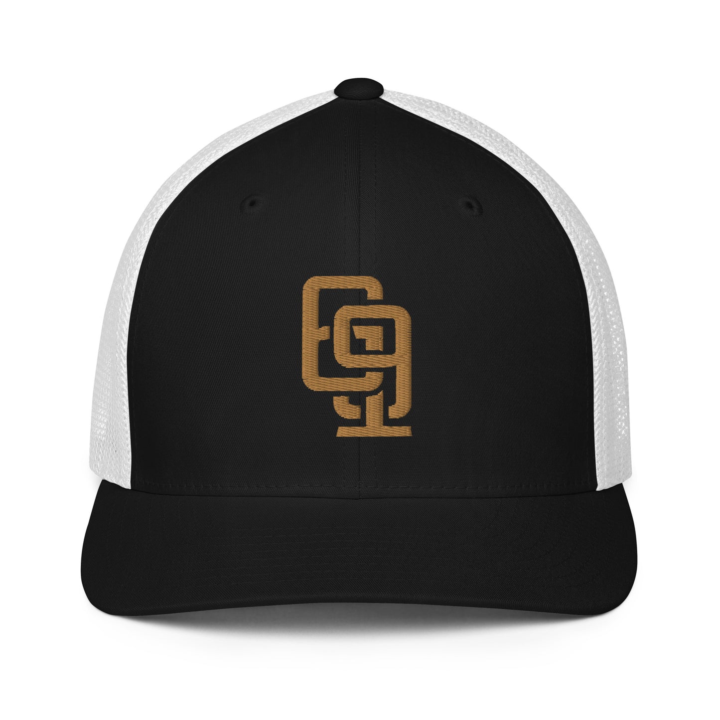 "619" Closed-Back Trucker Cap | Flexfit 6511 | E Luna CLASSIC Solocrest 1 Old Gold Thread Front Logo
