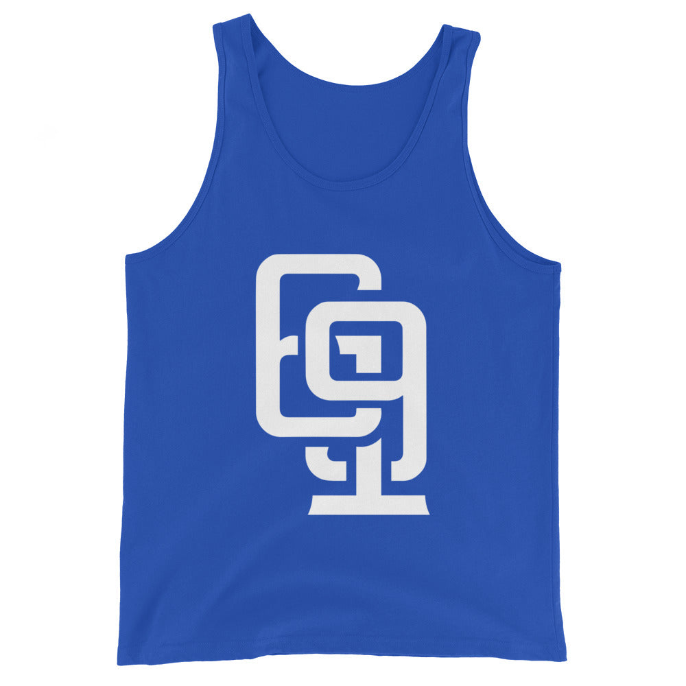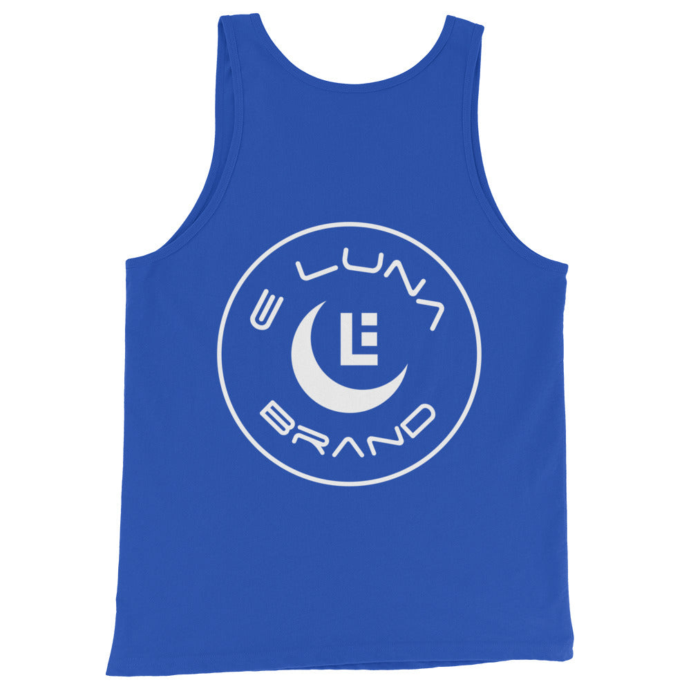 "619" Men’s Staple Tank Top | Bella + Canvas 3480 | E Luna Brand CHOICE Duocrest 2 White Logos: Front Center (Large) & Back (Large)