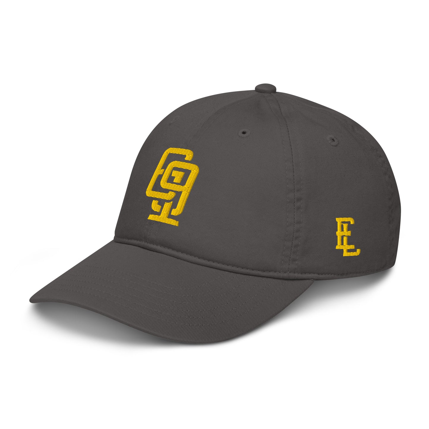 "619" Organic Baseball Cap | E Luna Brand PREMIUM | 4 Gold Thread Logos [3D Puff Edition]