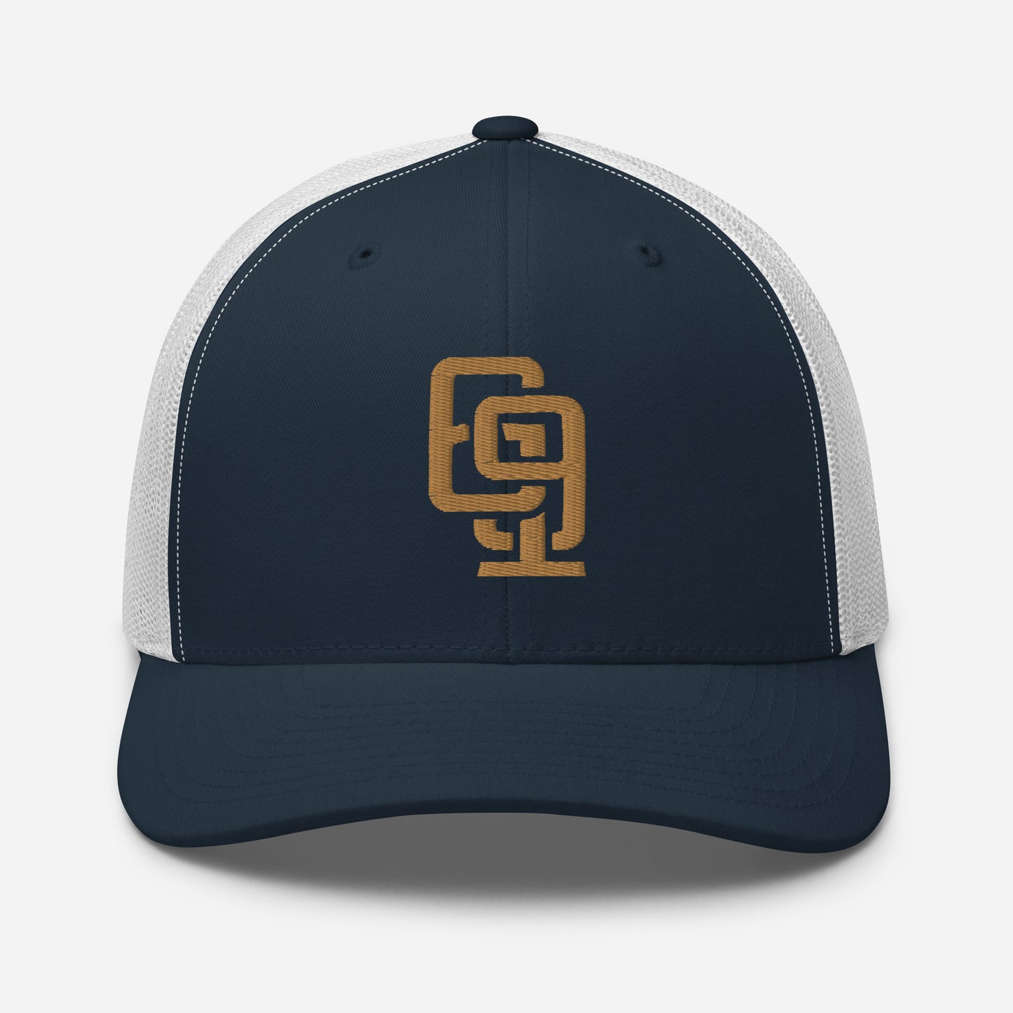 "619" Retro Trucker Hat | Yupoong 6606 | E Luna Brand CLASSIC Solocrest 1 Old Gold Thread Front Logo