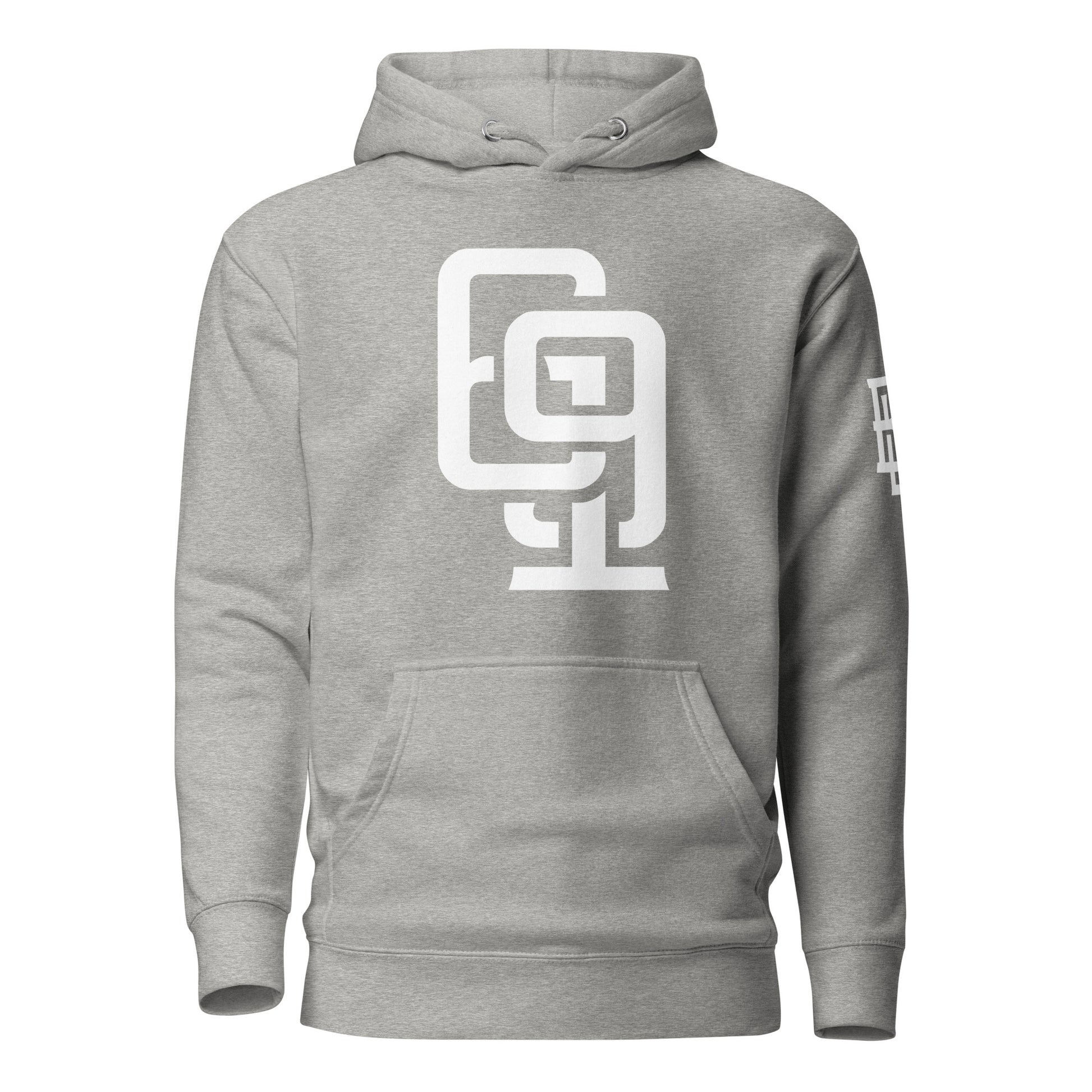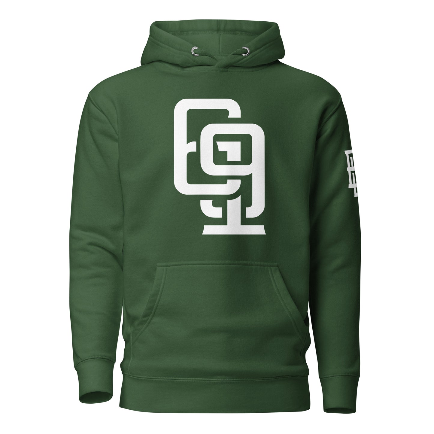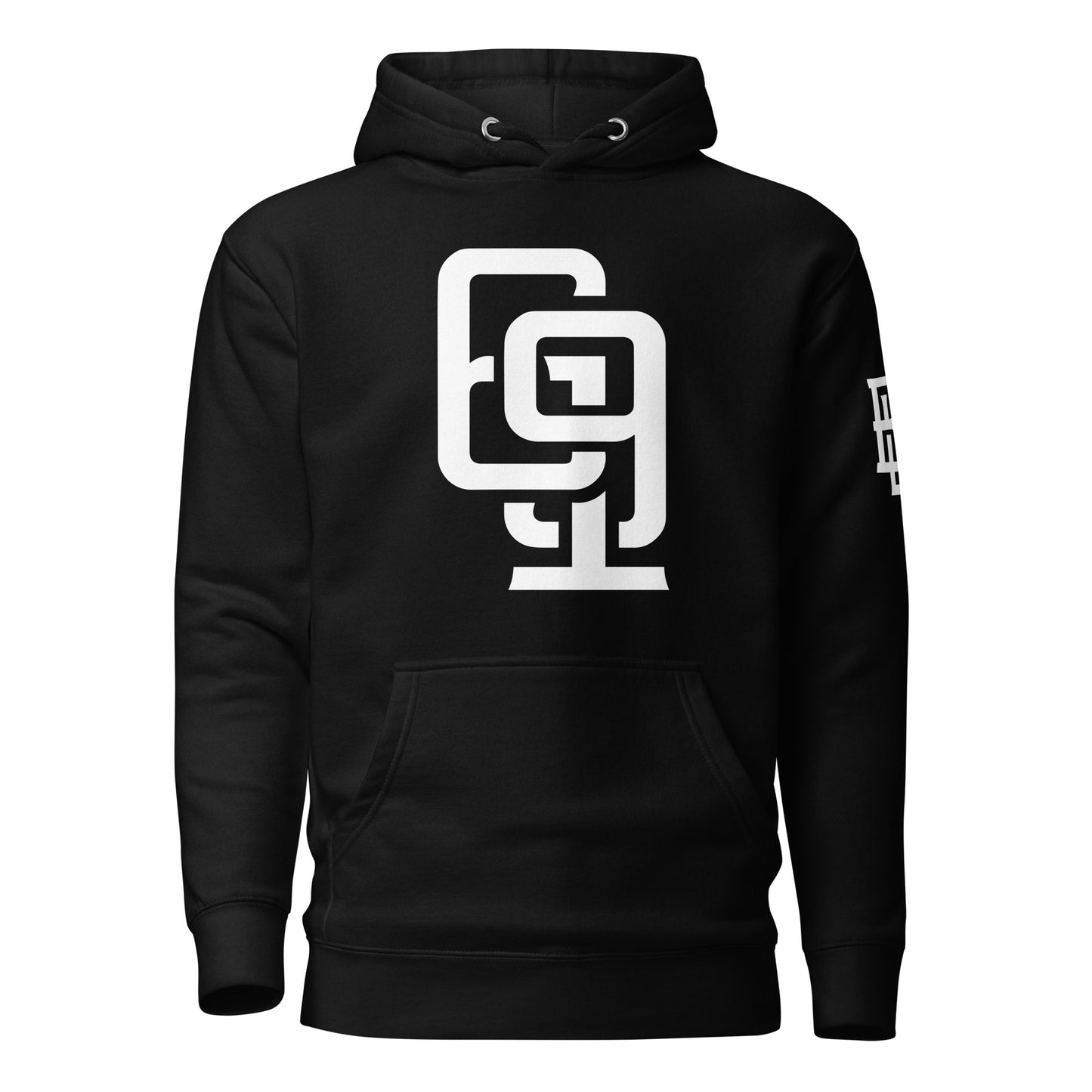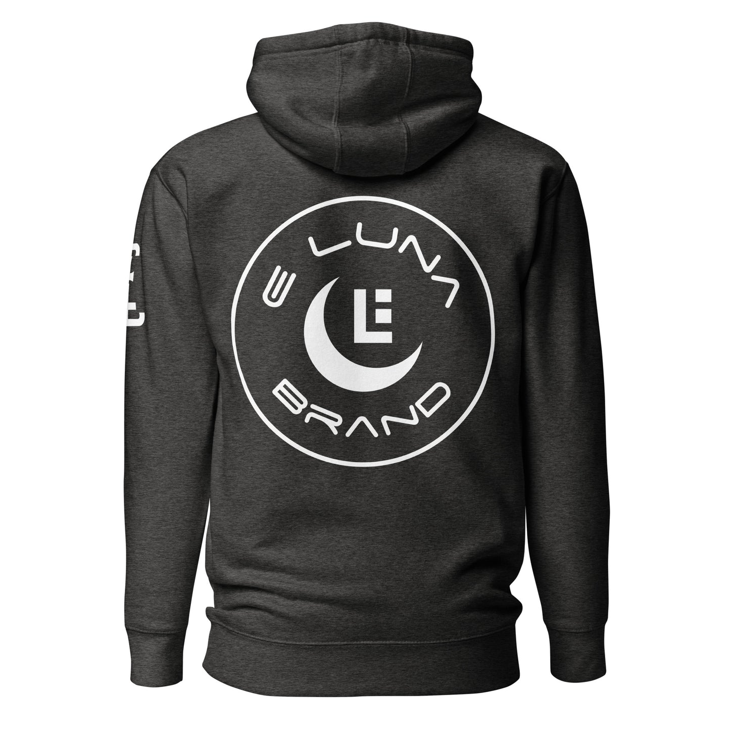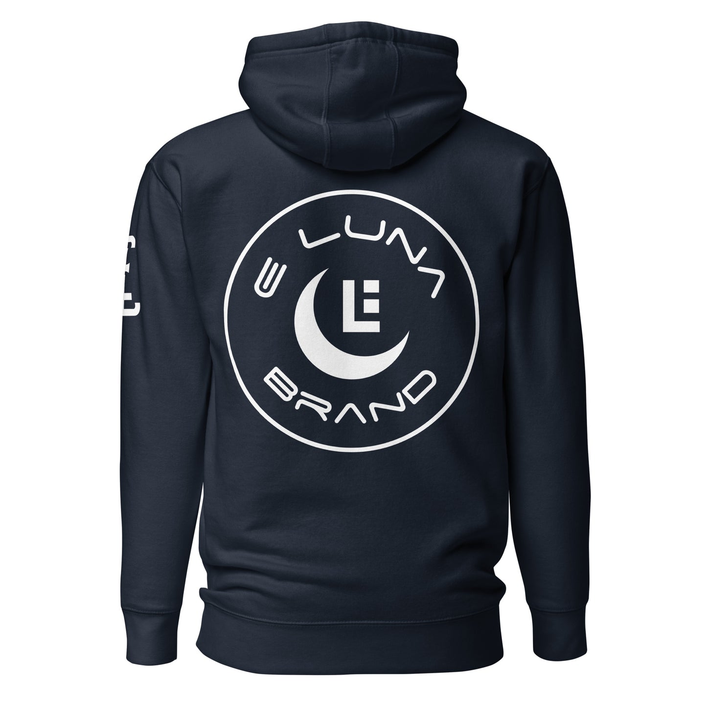 "619" Unisex Premium Hoodie | Cotton Heritage M2580 | E Luna Brand ELEMENT Tricrest 3 White Logos: Front Center (Large), Left Arm & Back (Large)