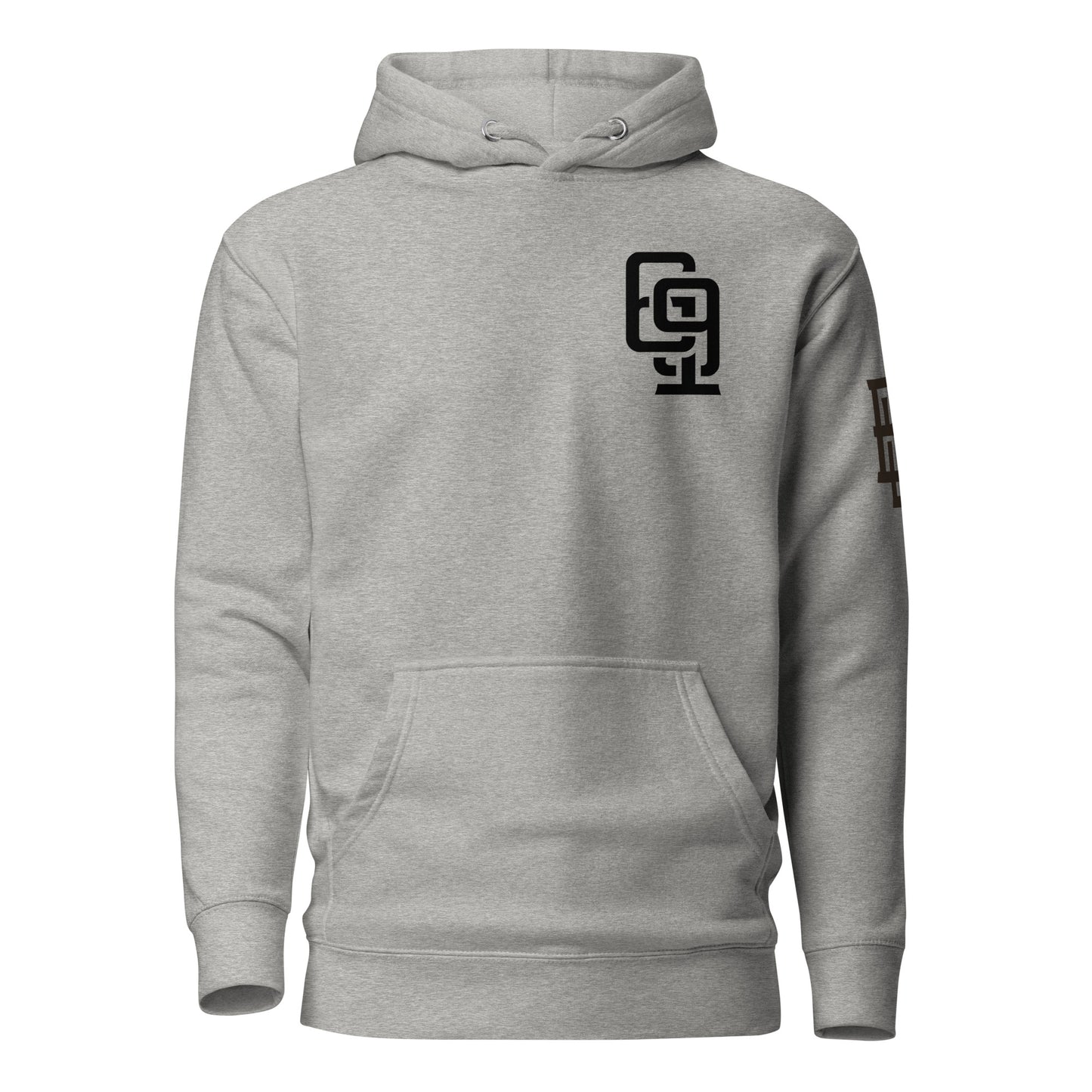 "619" Unisex Premium Hoodie | Cotton Heritage M2580 | E Luna Brand ESSENCE Tricrest 3 Black Logos: Front Upper Left, Left Arm & Outside Back Label