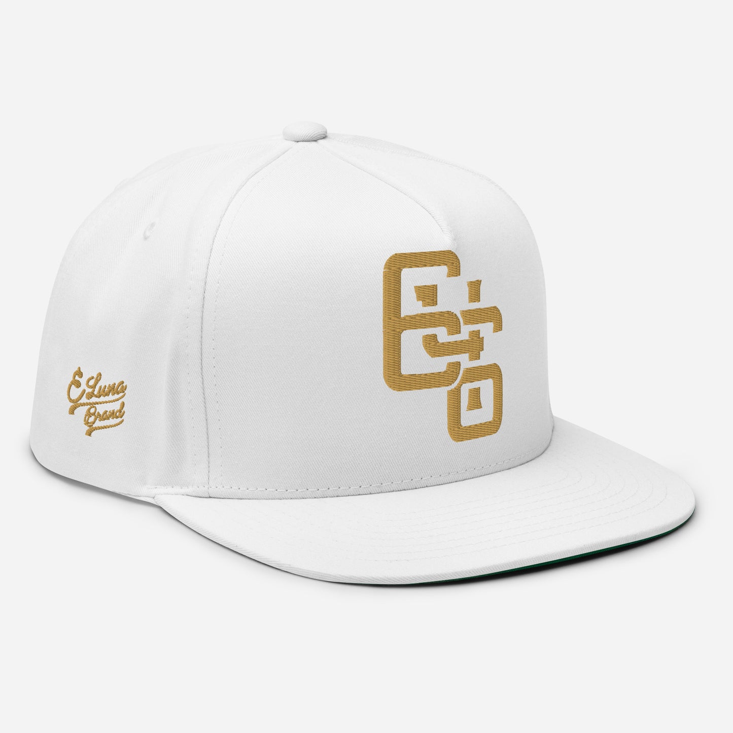"646" Flat Bill Cap | E Luna Brand PREMIUM | 4 Old Gold Thread Logos | 3D Puff Edition