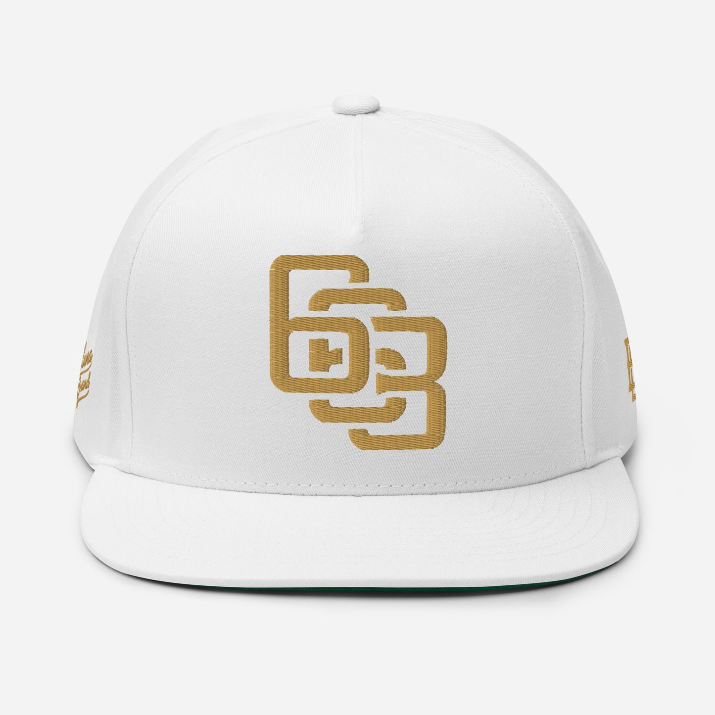 "663" Flat Bill Cap | E Luna Brand PREMIUM | 4 Old Gold Thread Logos | 3D Puff Edition