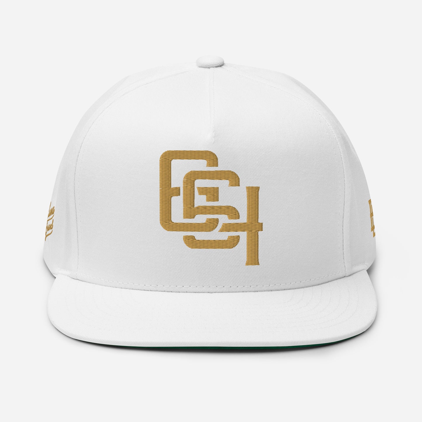 "664" Flat Bill Cap | E Luna Brand PREMIUM | 4 Old Gold Thread Logos | 3D Puff Edition