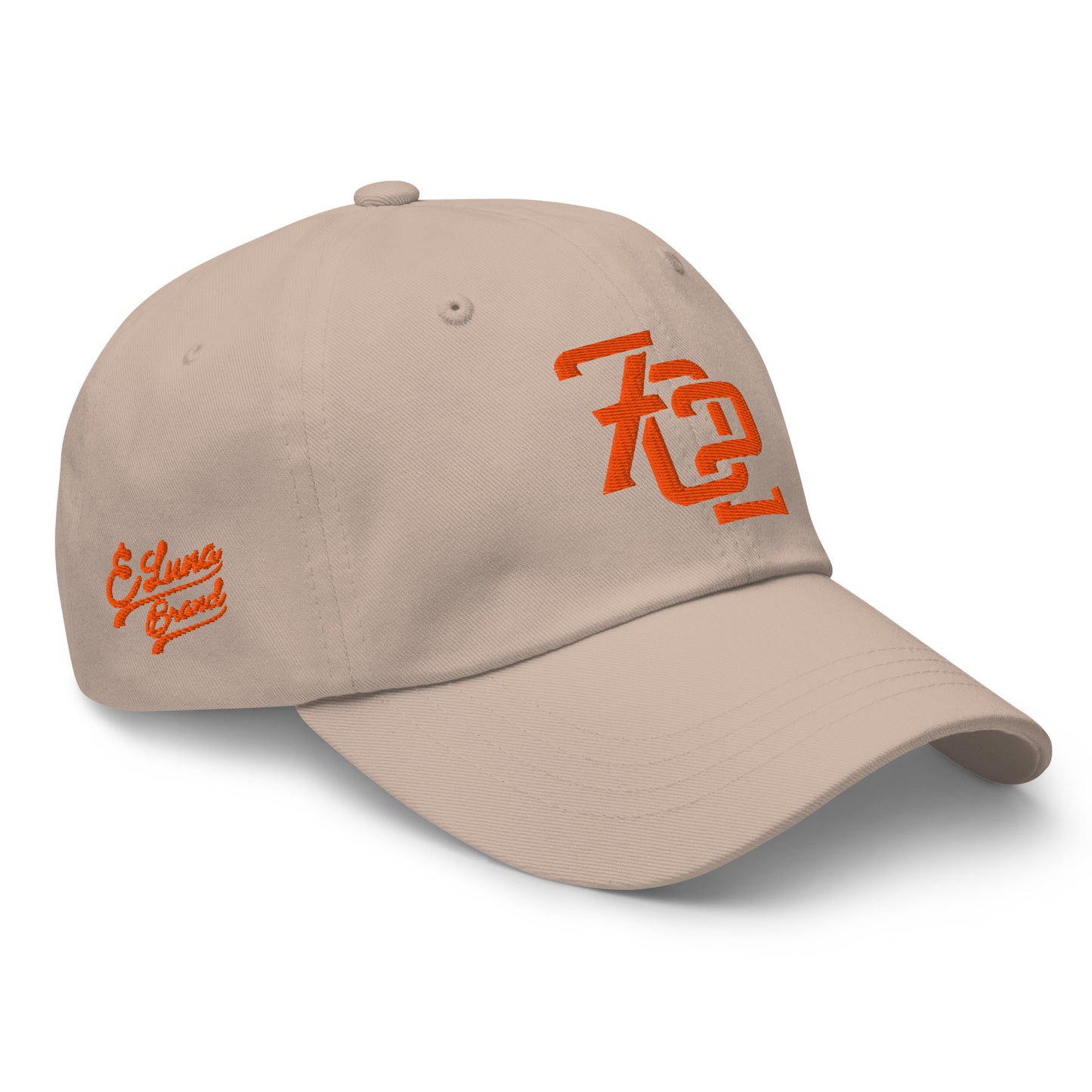"702" Classic Dad Hat | E Luna Brand PREMIUM | 4 Orange Thread Logos | 3D Puff Edition