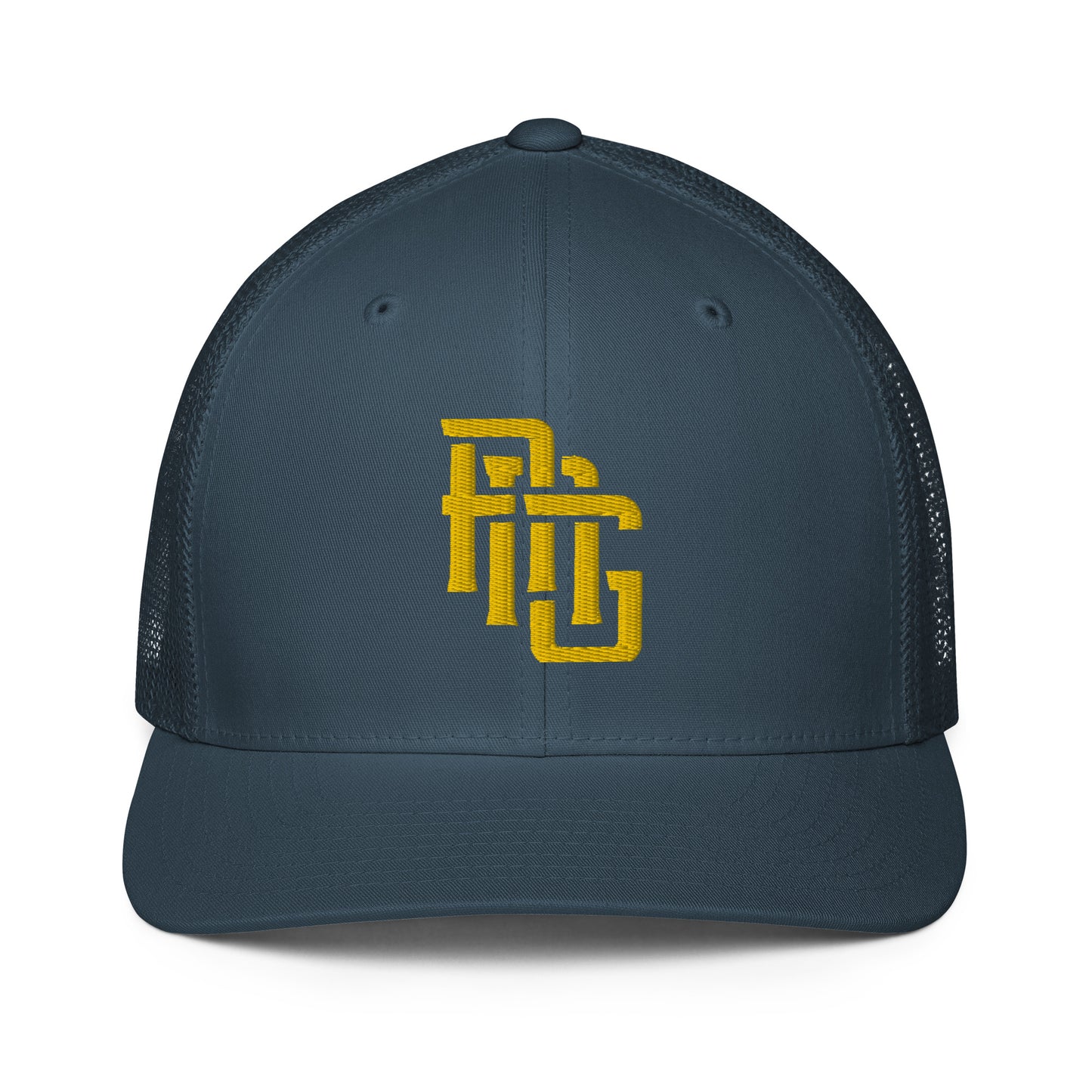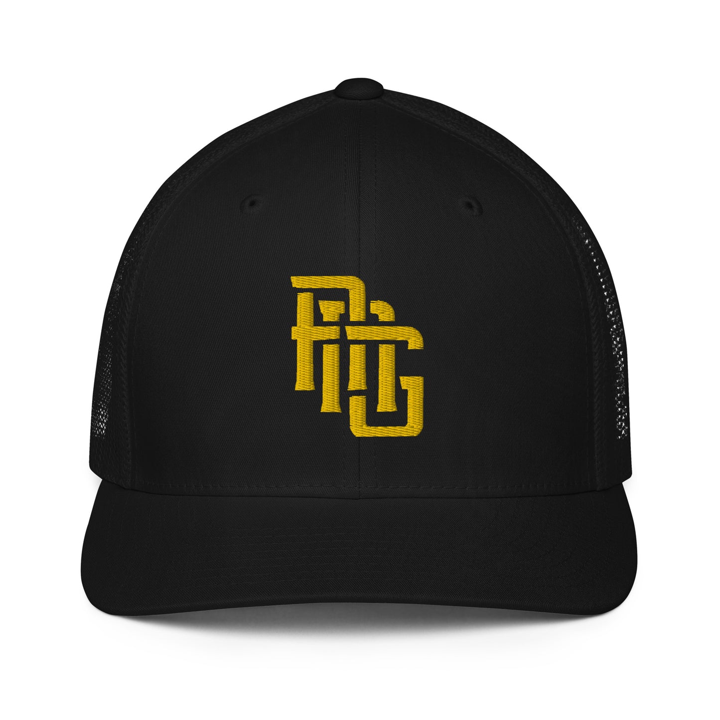 "ANG" Closed-Back Trucker Cap | Flexfit 6511 | E Luna CLASSIC Solocrest 1 Gold Thread Front Logo