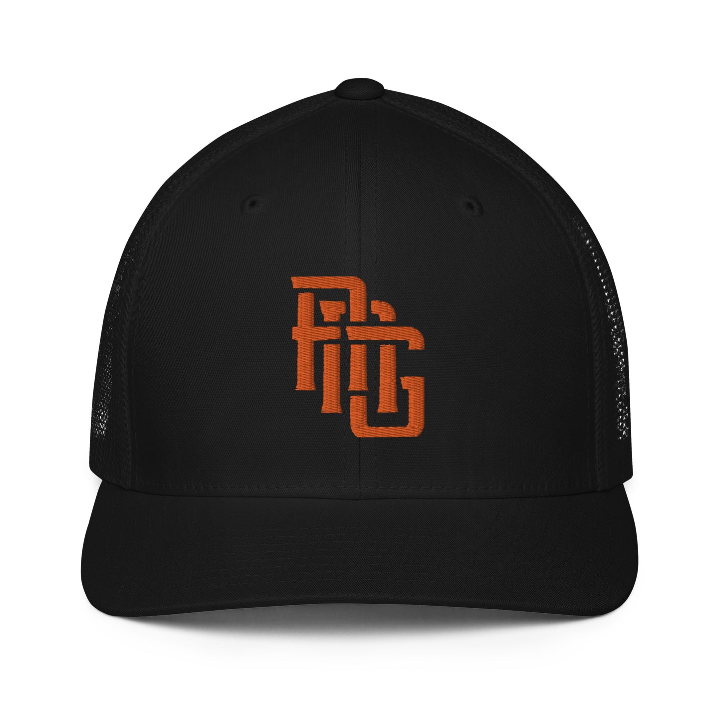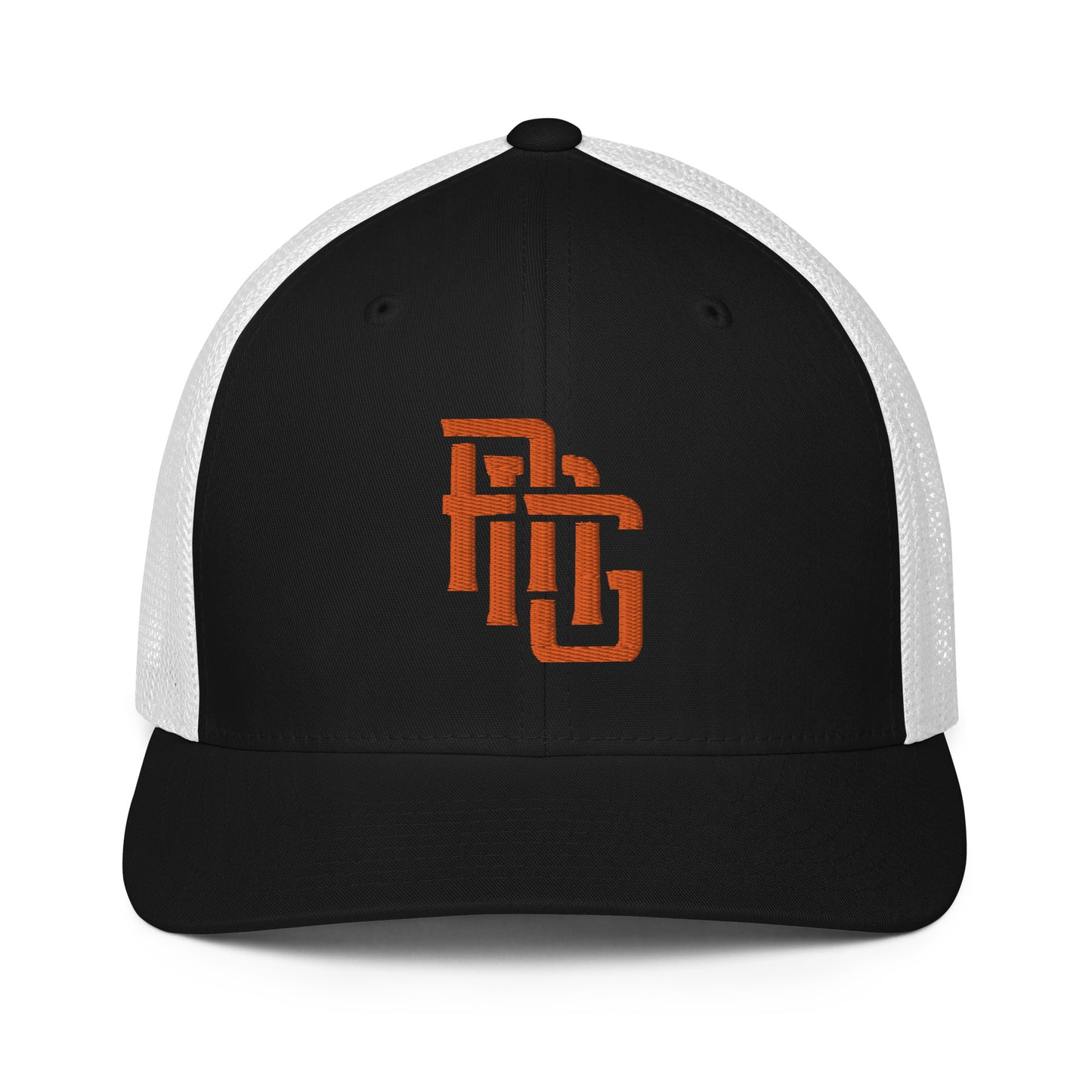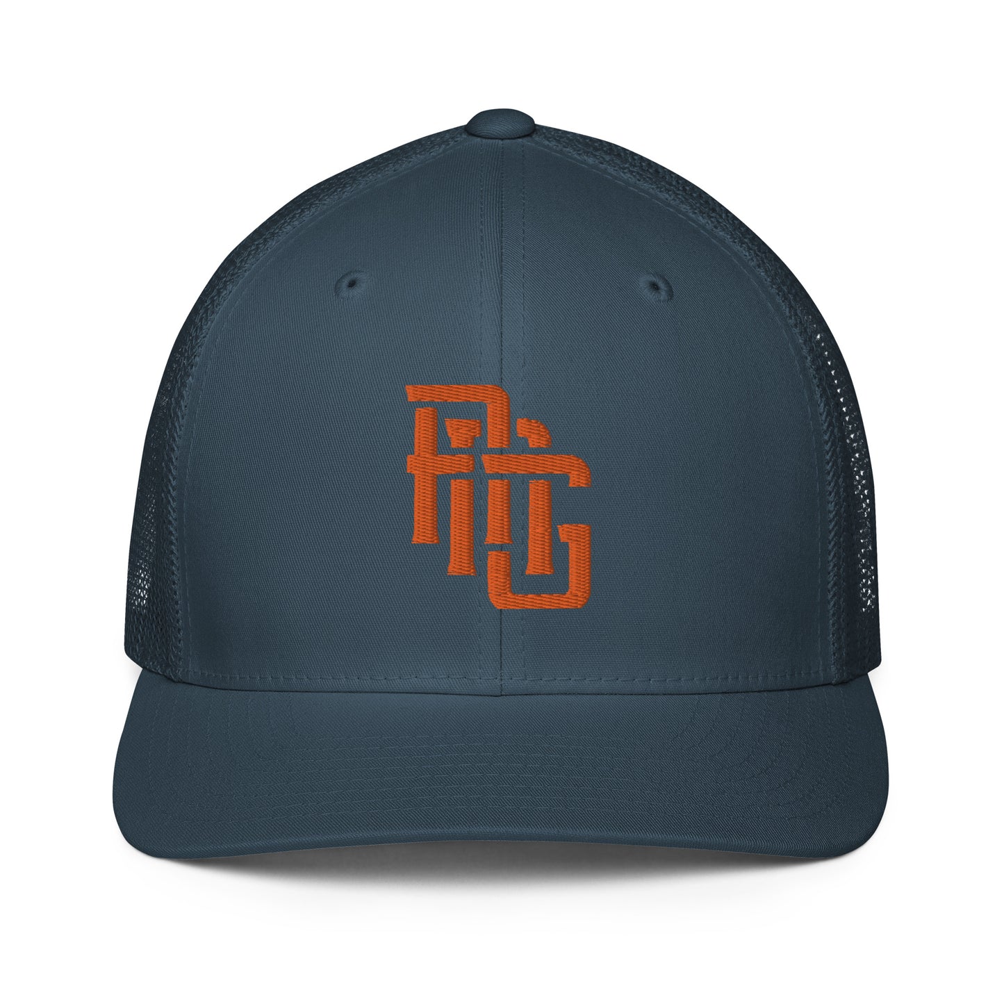 "ANG" Closed-Back Trucker Cap | Flexfit 6511 | E Luna CLASSIC Solocrest 1 Orange Thread Front Logo