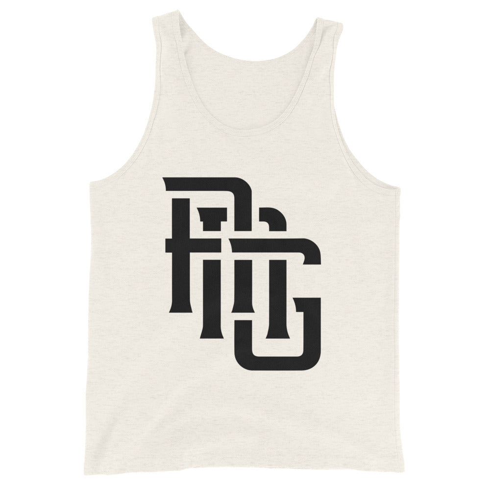 "ANG" Men’s Staple Tank Top | Bella + Canvas 3480 | E Luna Brand CHOICE Duocrest 2 Black Logos: Front Center (Large) & Back (Large)