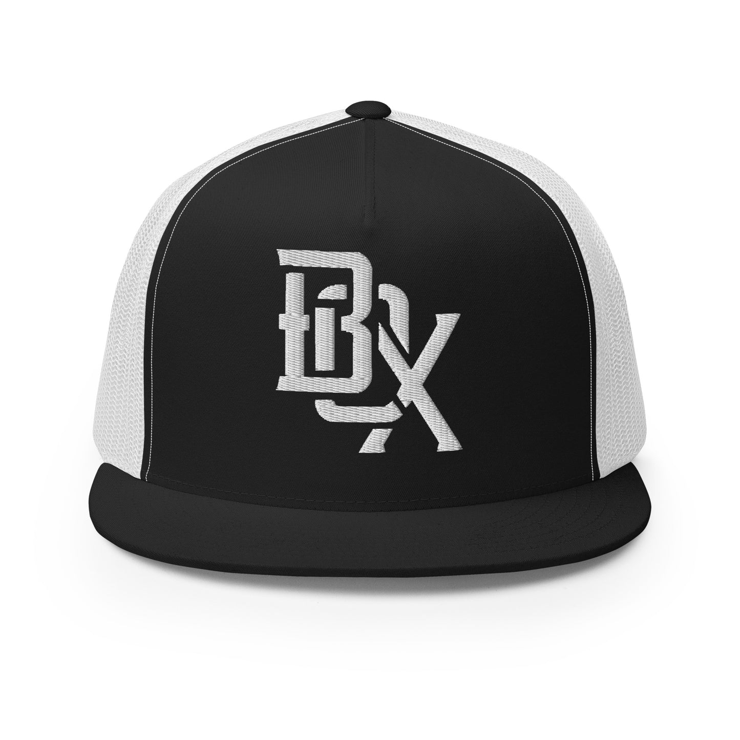 "BOX" Five Panel Trucker Cap | Yupoong 6006 | E Luna CLASSIC Solocrest 1 White Thread Front Logo