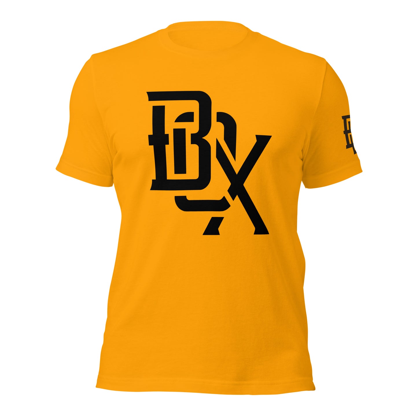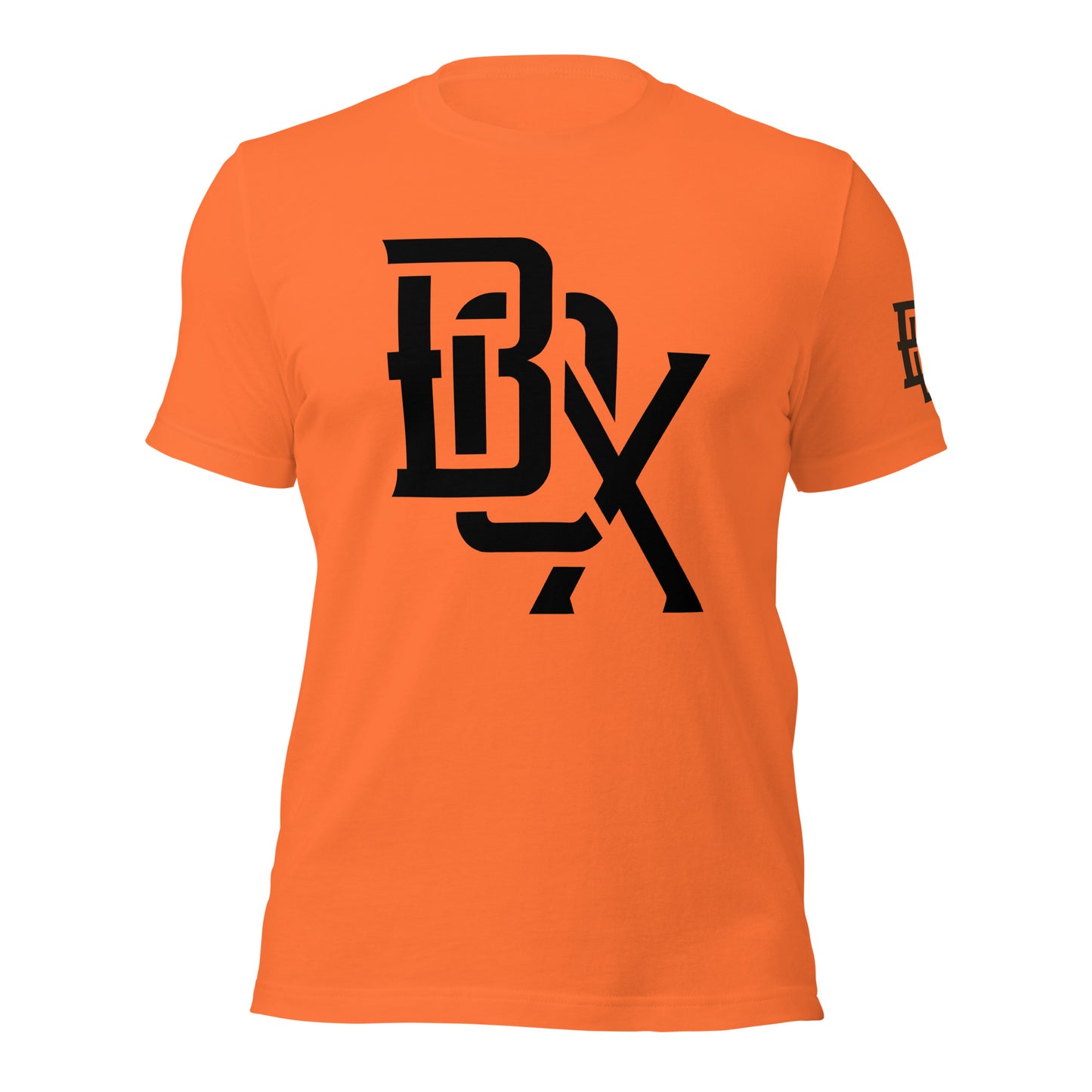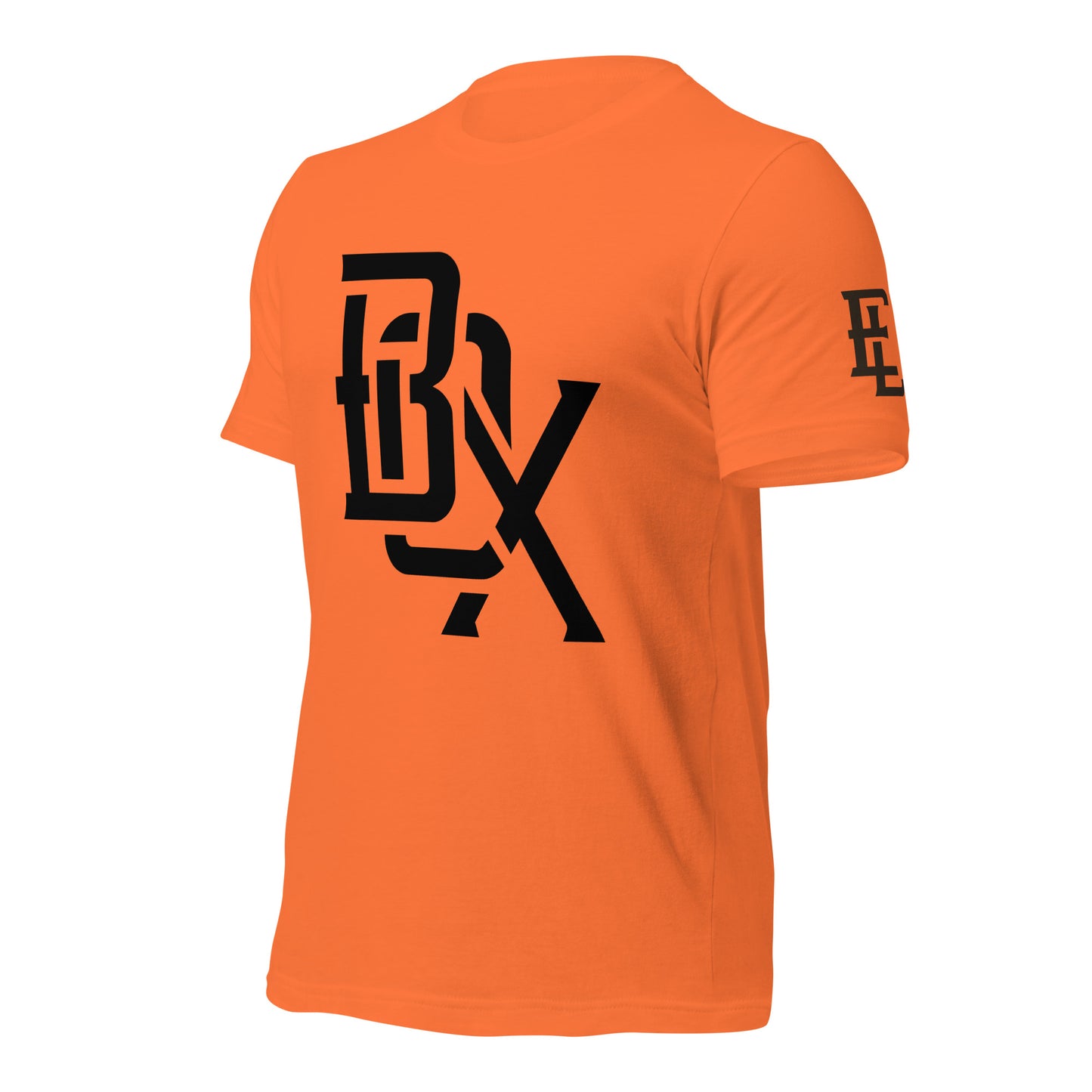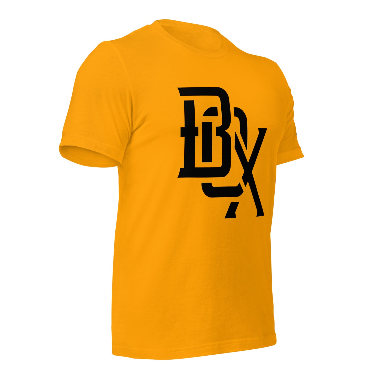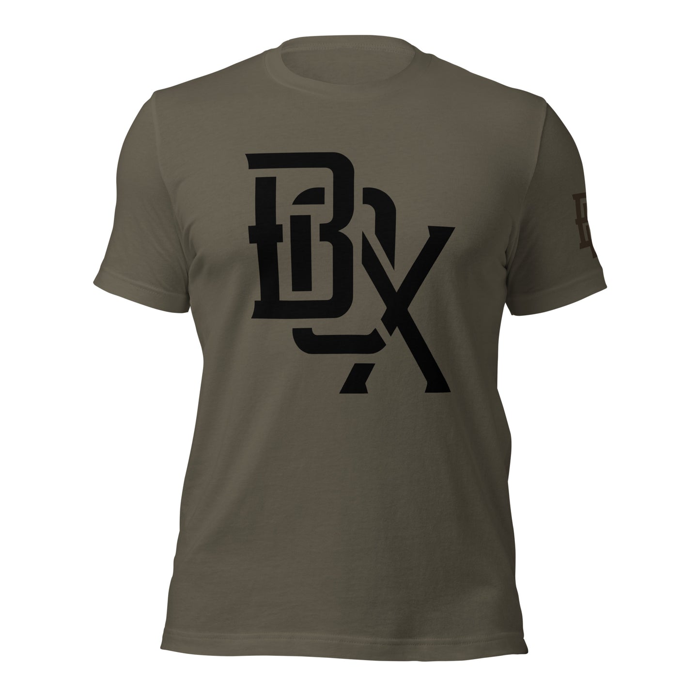 "BOX" Unisex Staple T-Shirt | Bella + Canvas 3001 | E Luna Brand ESSENCE Tricrest 3 Black Logos: Front Center (Large), Left Arm & Outside Back Label