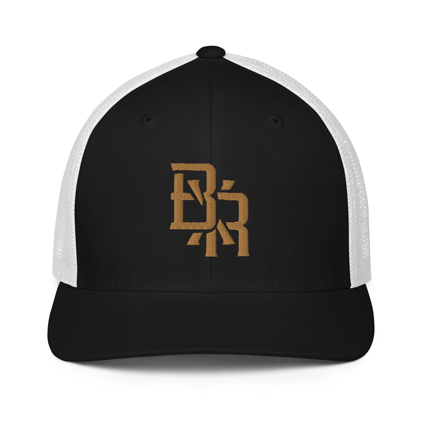 "BXR" Closed-Back Trucker Cap | Flexfit 6511 | E Luna CLASSIC Solocrest 1 Old Gold Thread Front Logo
