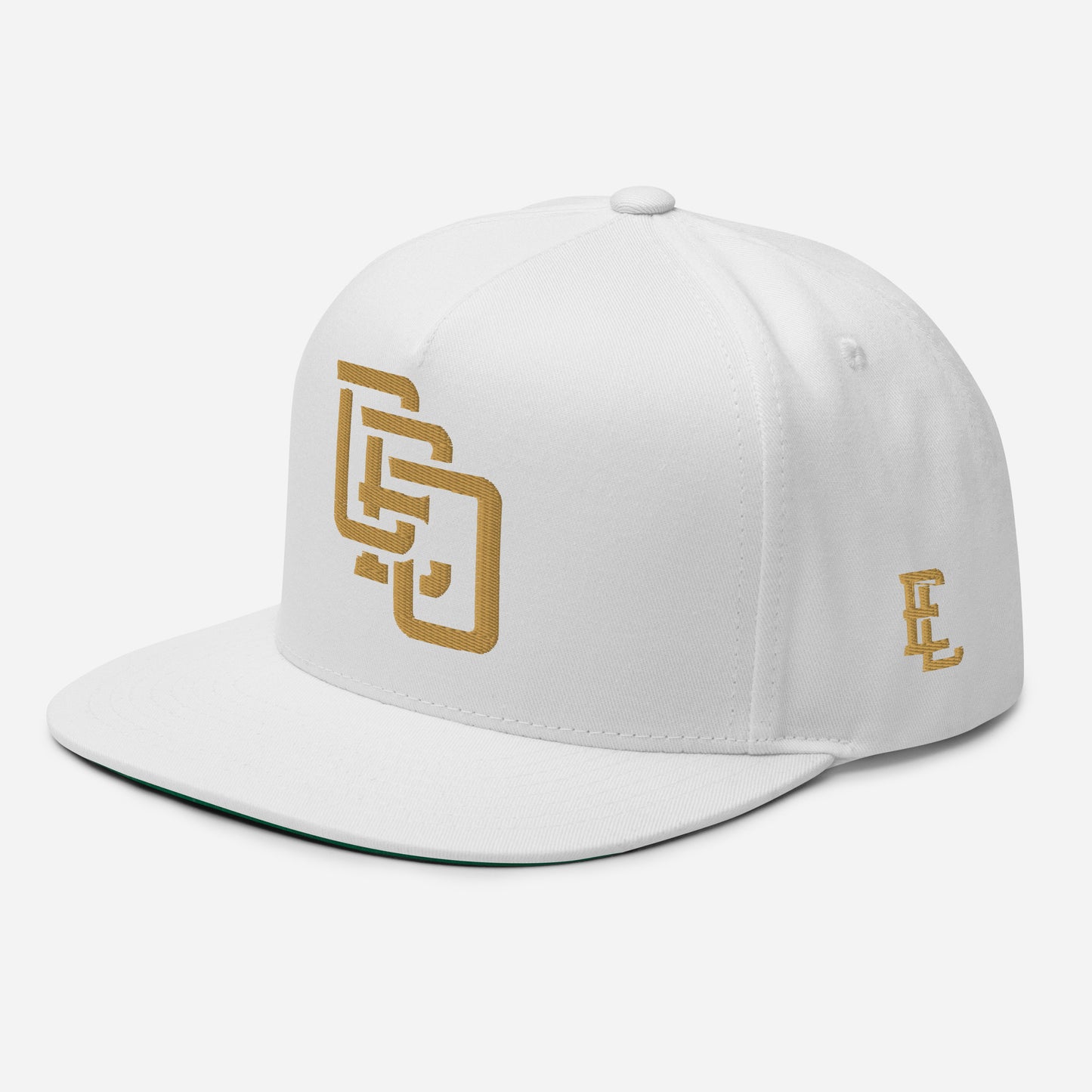"CEO" Flat Bill Cap | E Luna Brand PREMIUM | 4 Old Gold Thread Logos | 3D Puff Edition