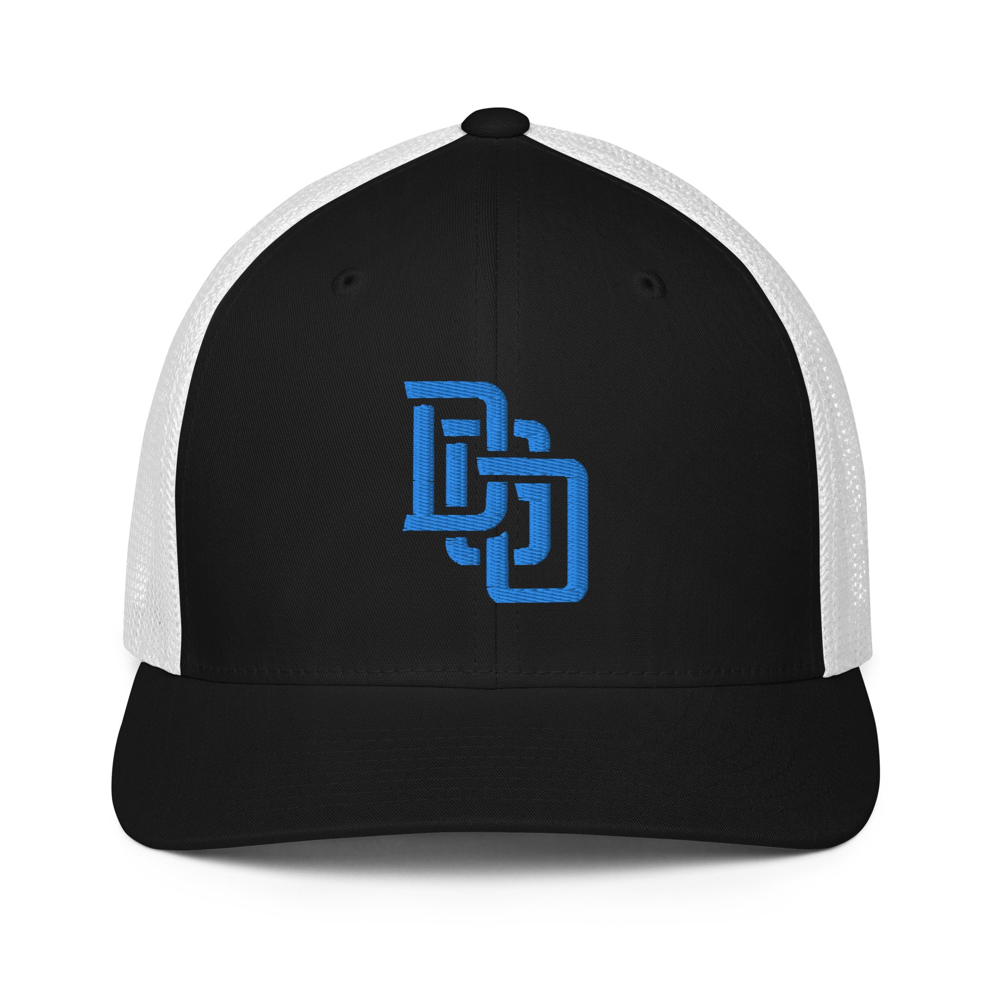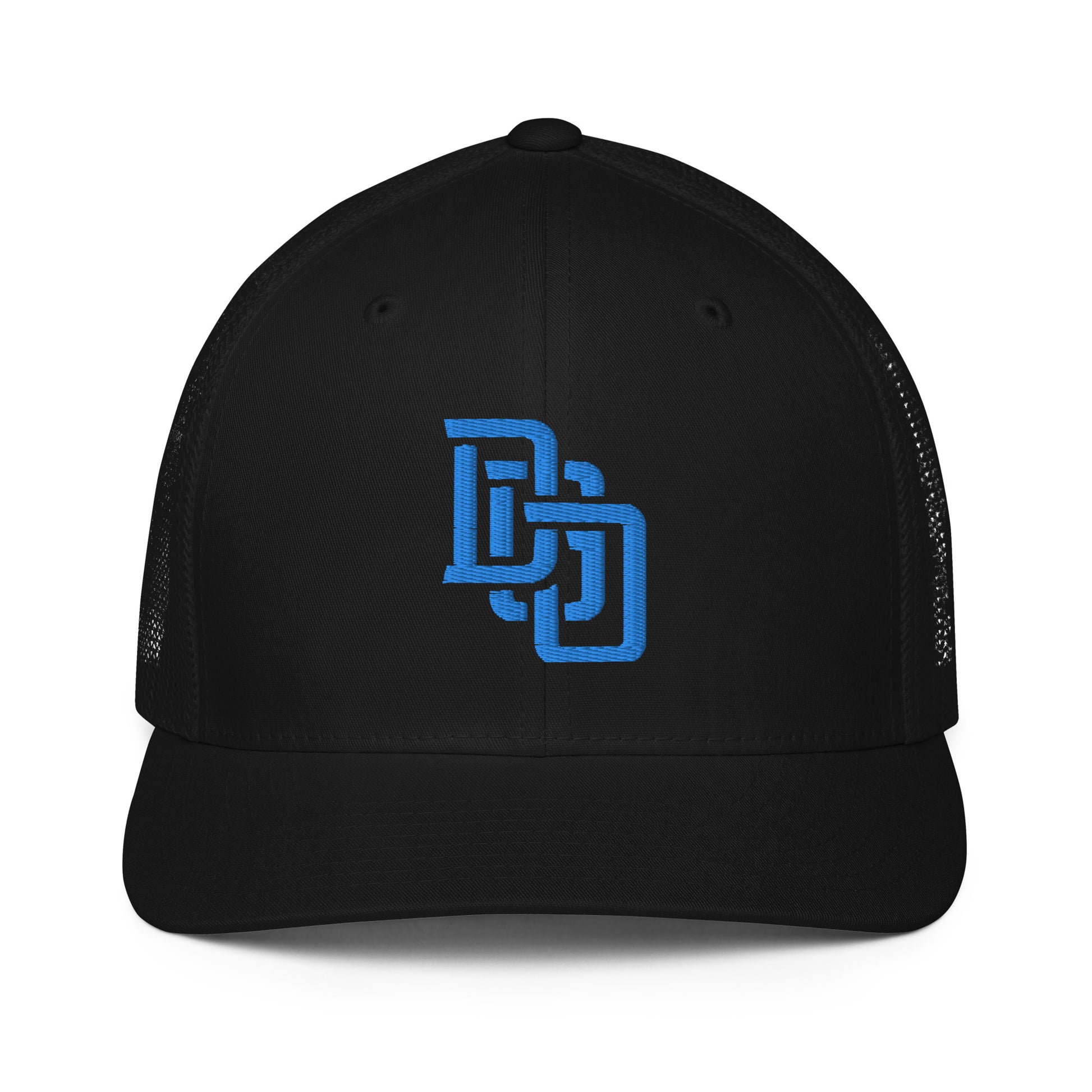 "DGO" Closed-Back Trucker Cap | Flexfit 6511 | E Luna CLASSIC Solocrest 1 Aqua/Teal Thread Front Logo