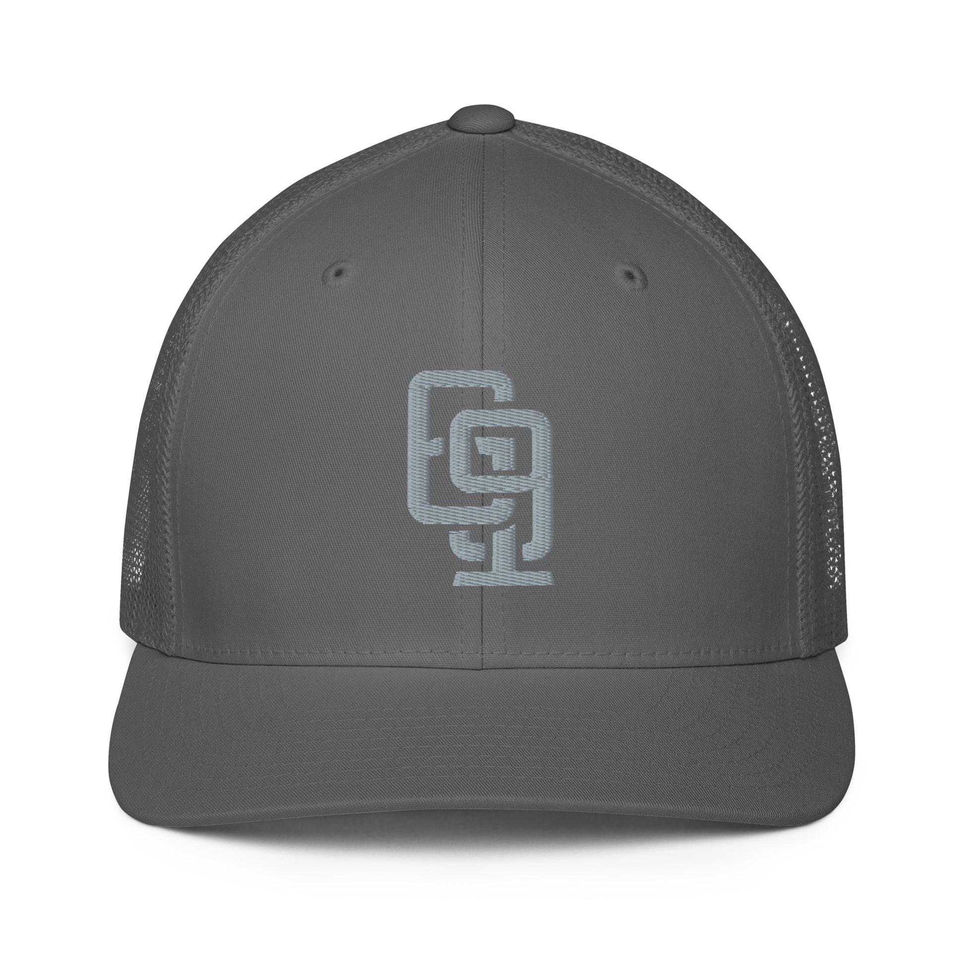 "619" Closed-Back Trucker Cap | Flexfit 6511 | E Luna CLASSIC Solocrest 1 Grey Thread Front Logo