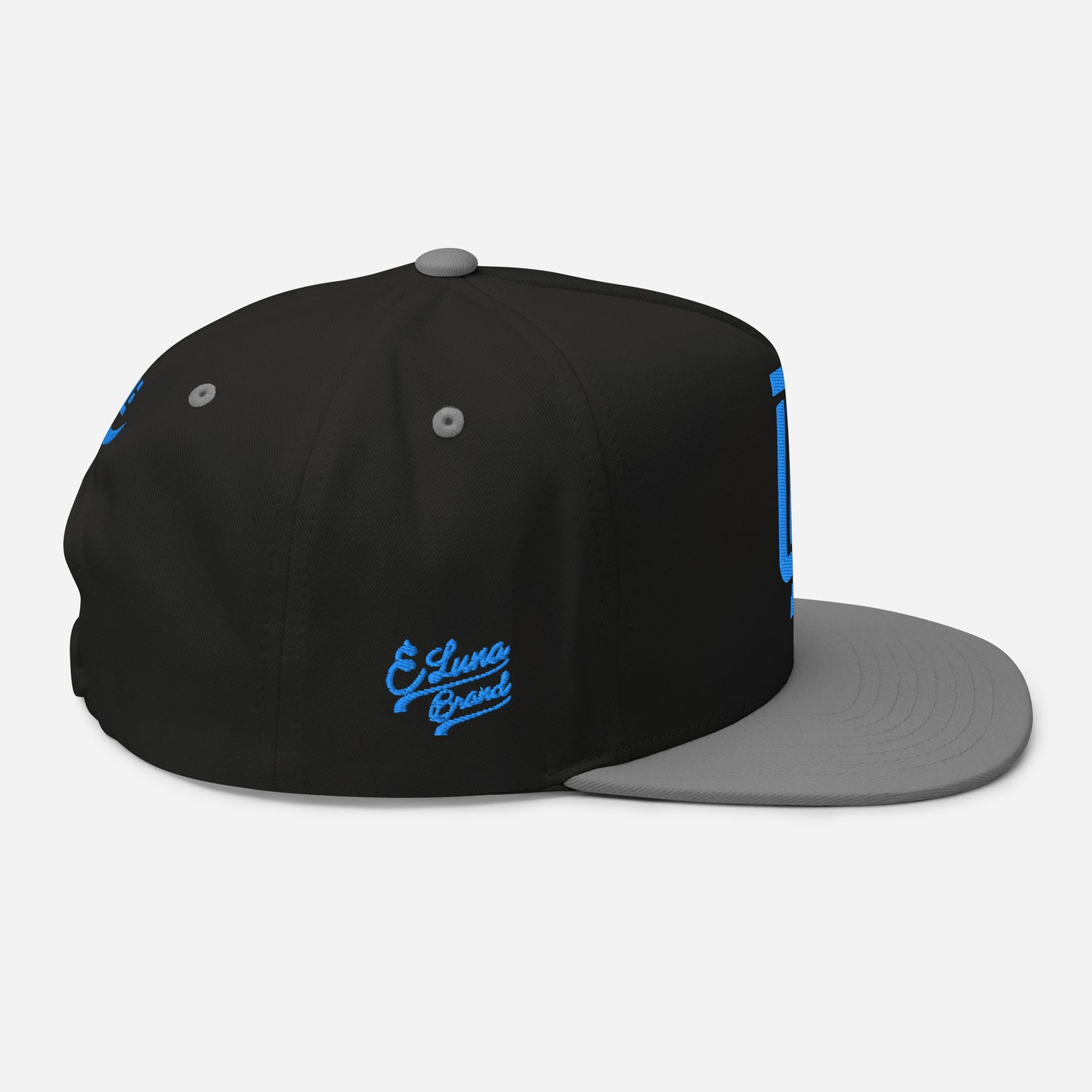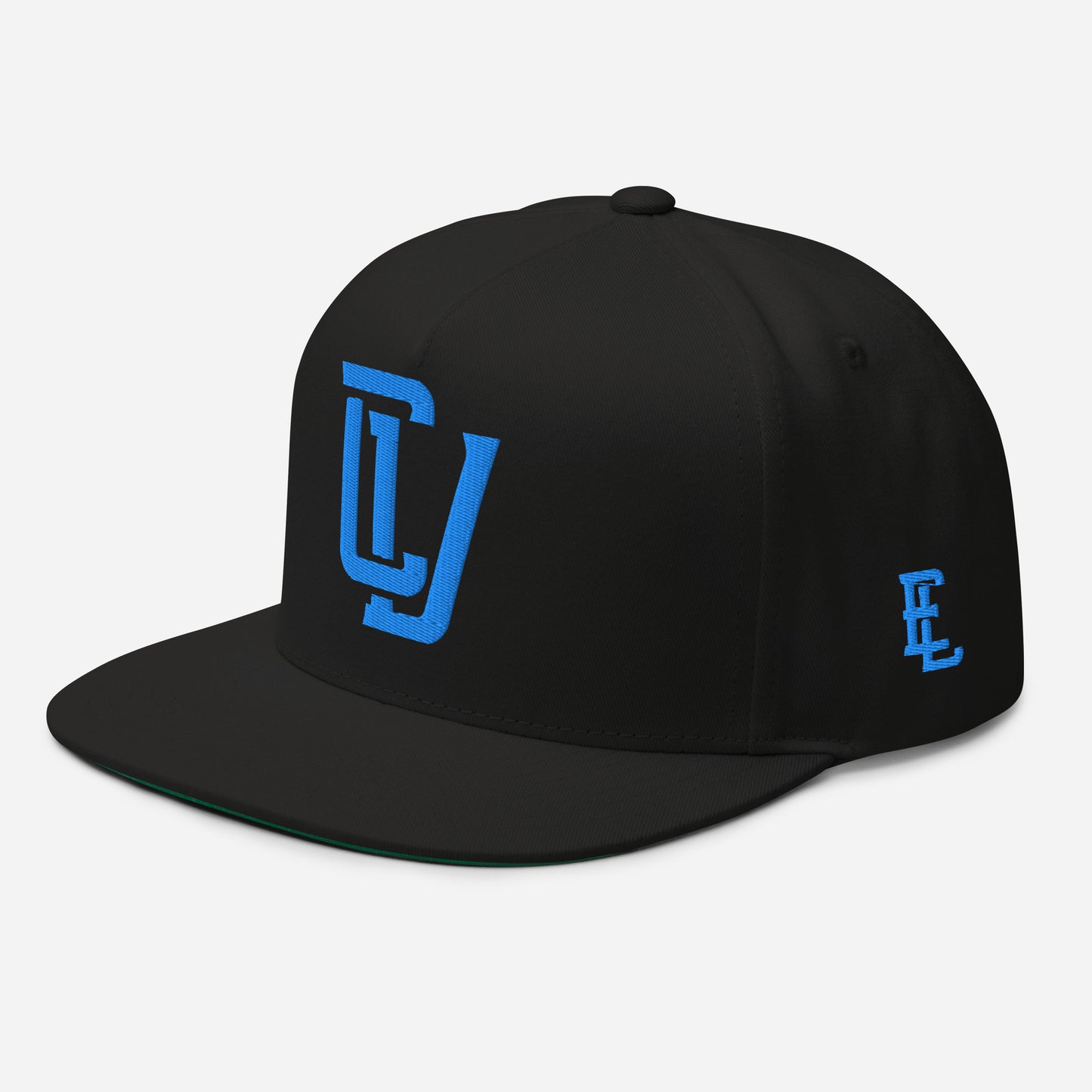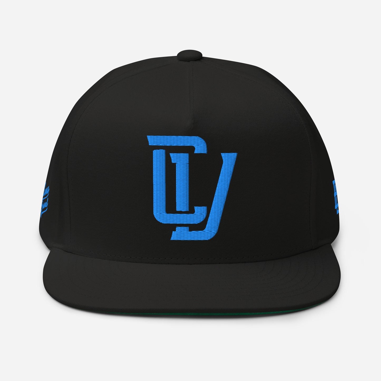 "CV" Flat Bill Cap | E Luna Brand PREMIUM | 4 Aqua/Teal Thread Logos | 3D Puff Edition