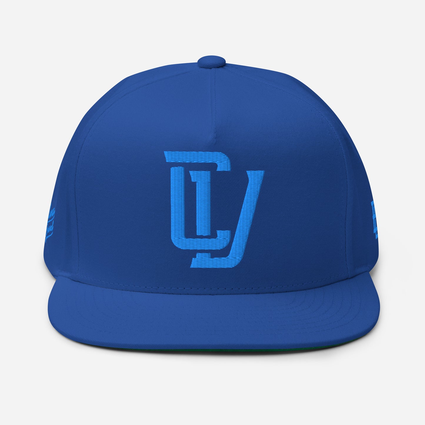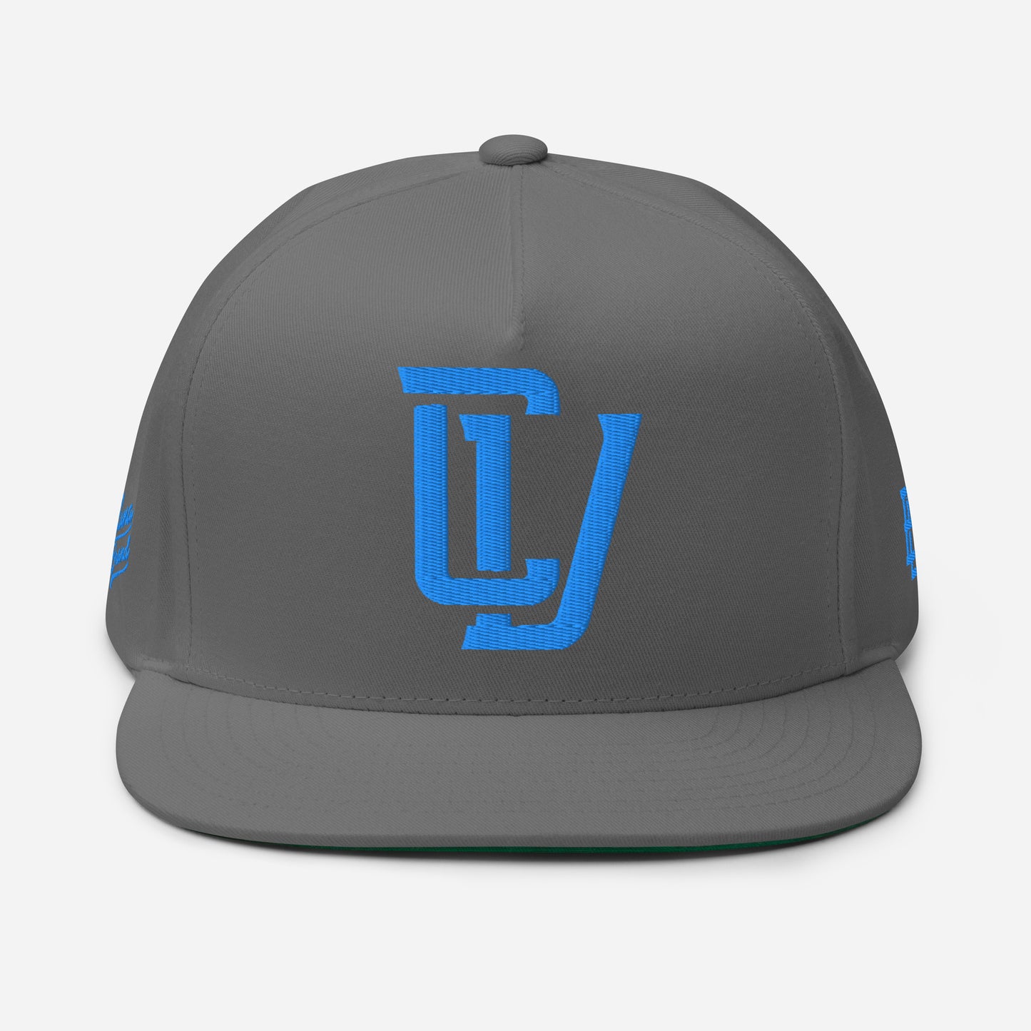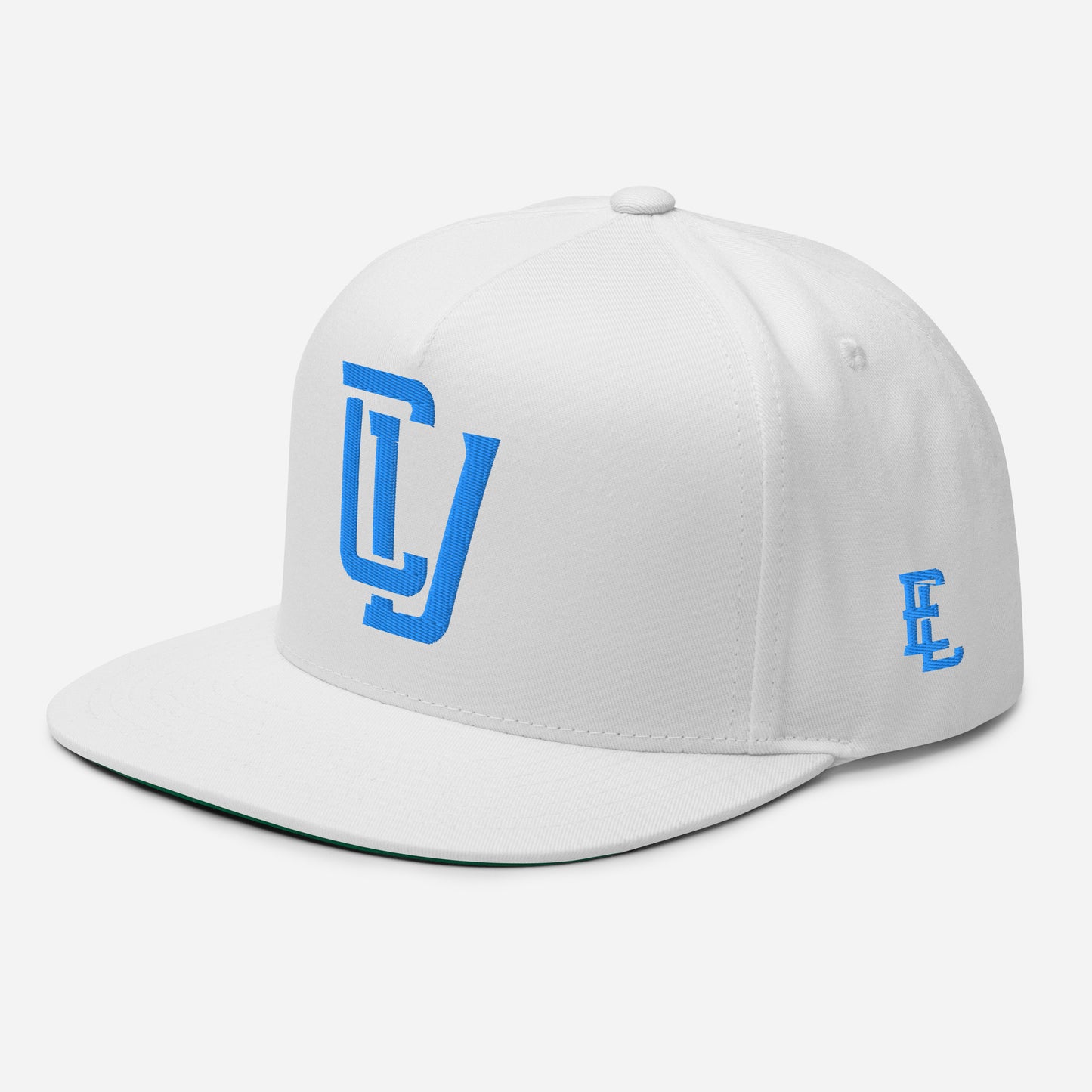 "CV" Flat Bill Cap | E Luna Brand PREMIUM | 4 Aqua/Teal Thread Logos | 3D Puff Edition