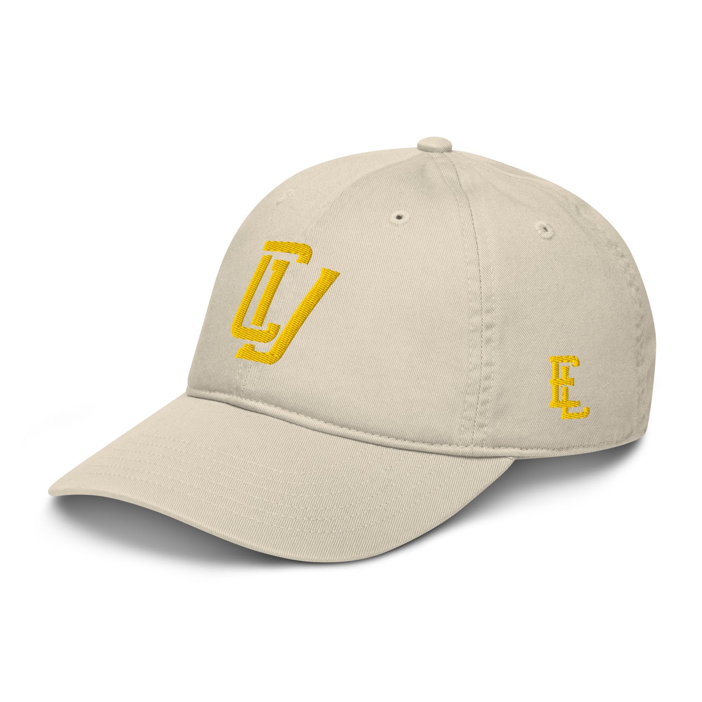 "CV" Organic Baseball Cap | E Luna Brand ESSENTIAL | 2 Gold Thread Logos