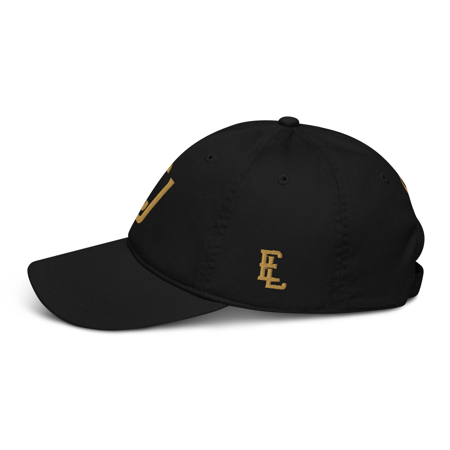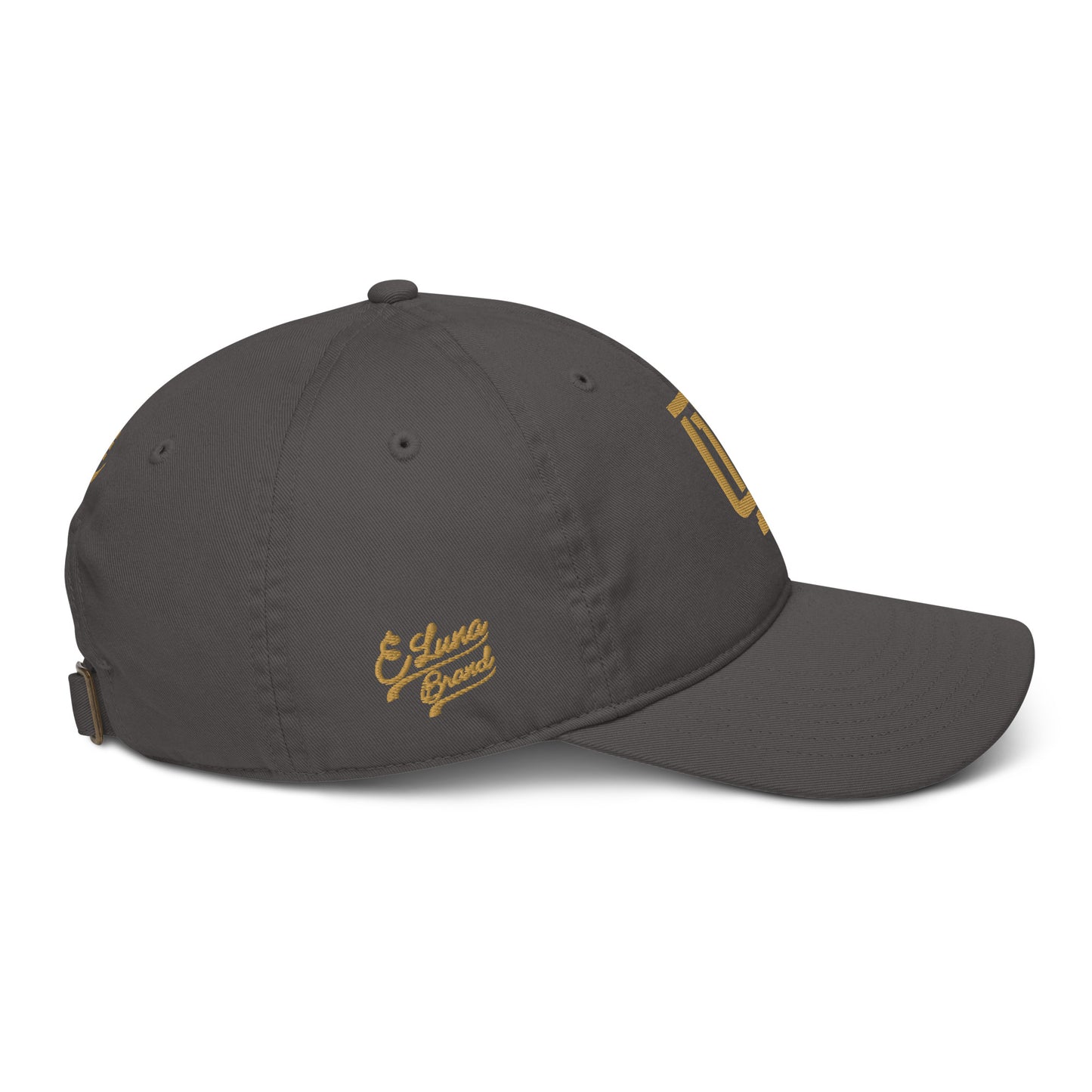 "CV" Organic Baseball Cap | E Luna Brand PREMIUM | 4 Old Gold Thread Logos | 3D Puff Edition