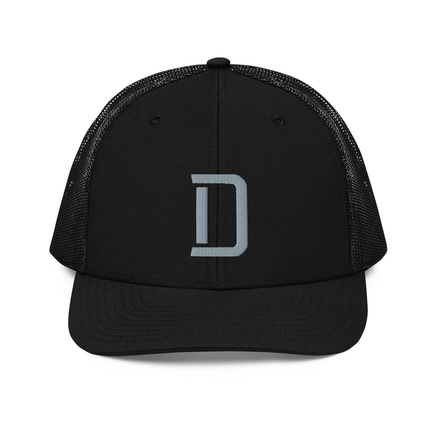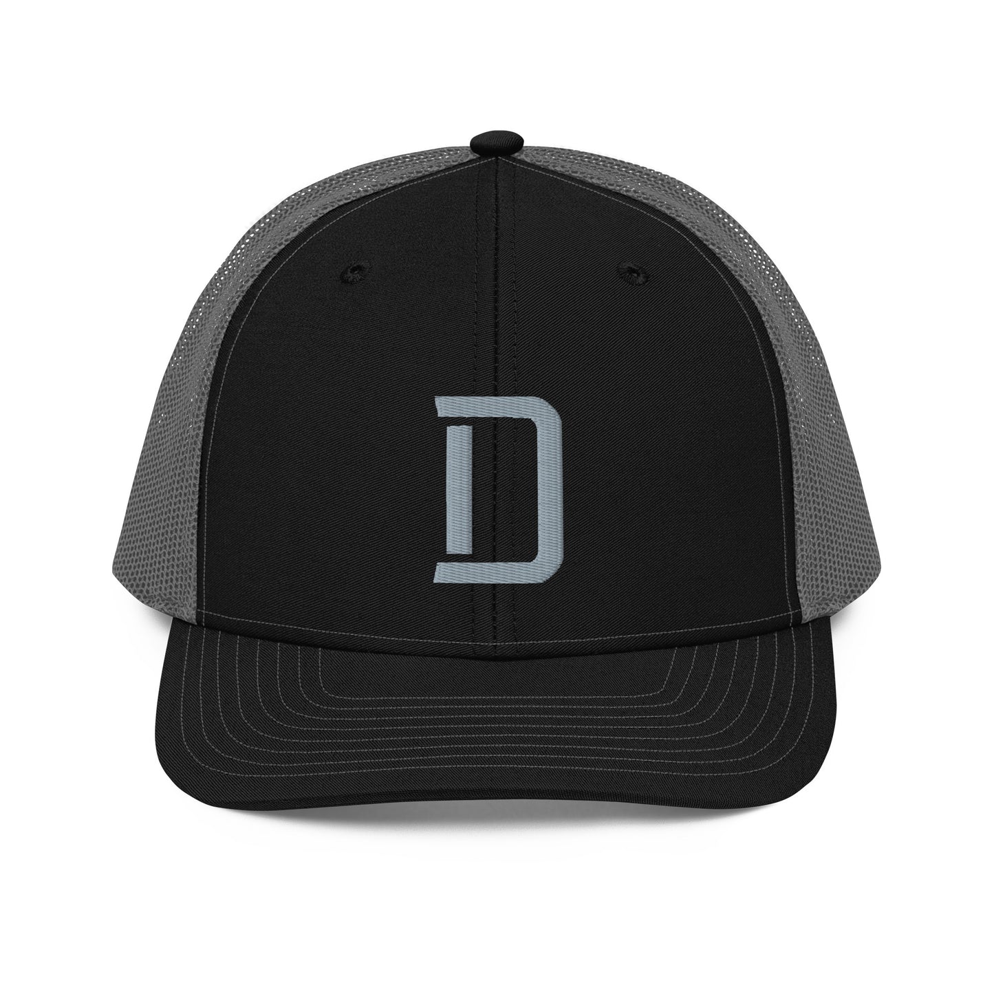 "D" Snapback Trucker Cap | E Luna Brand CLASSIC | 1 Grey Thread Logo | 3D Puff Edition