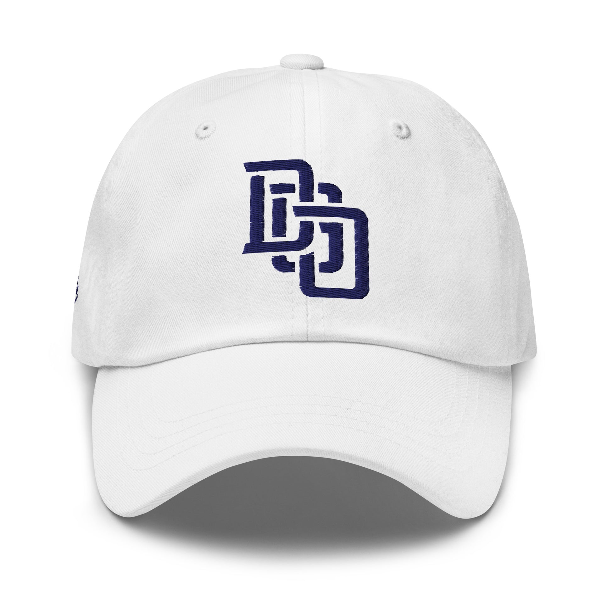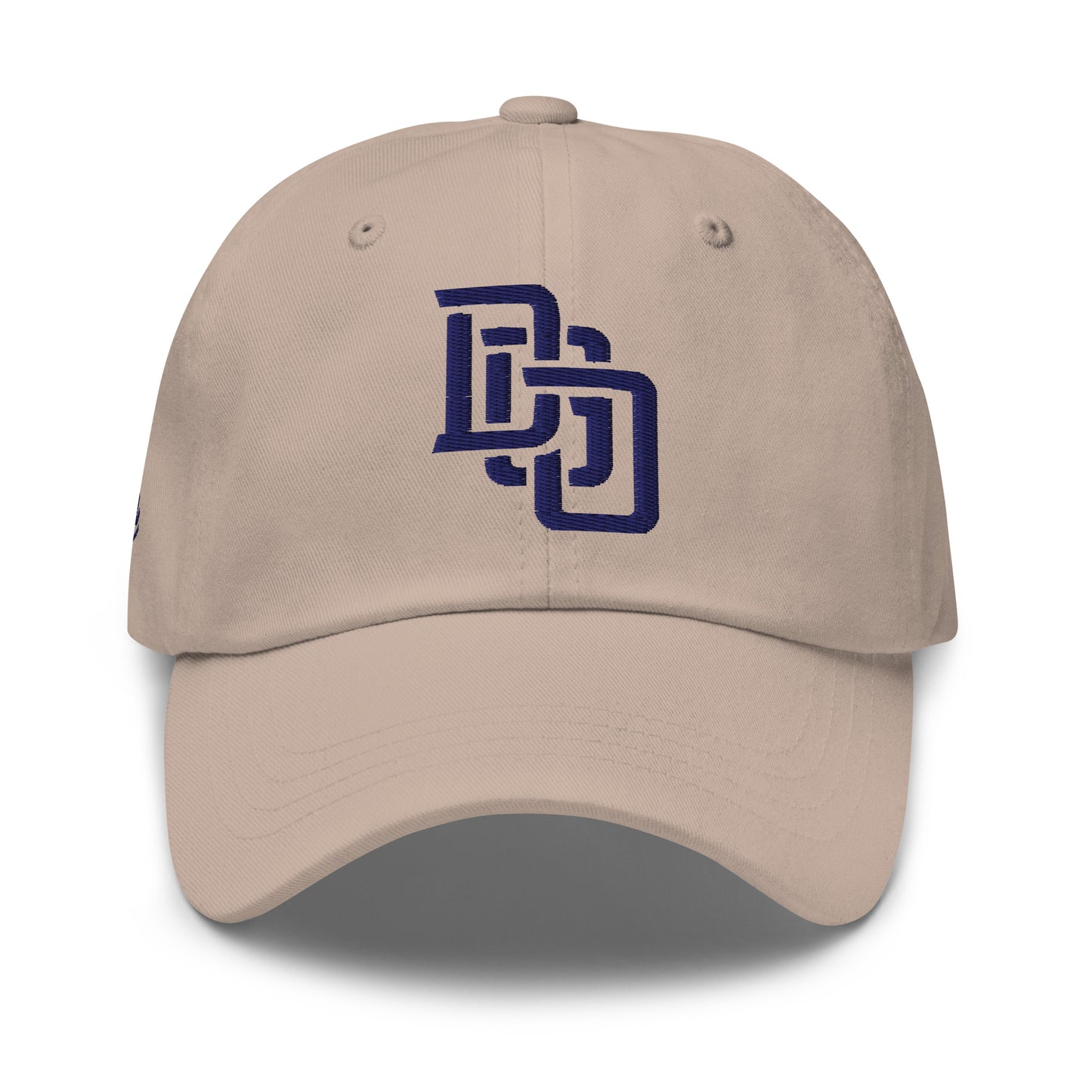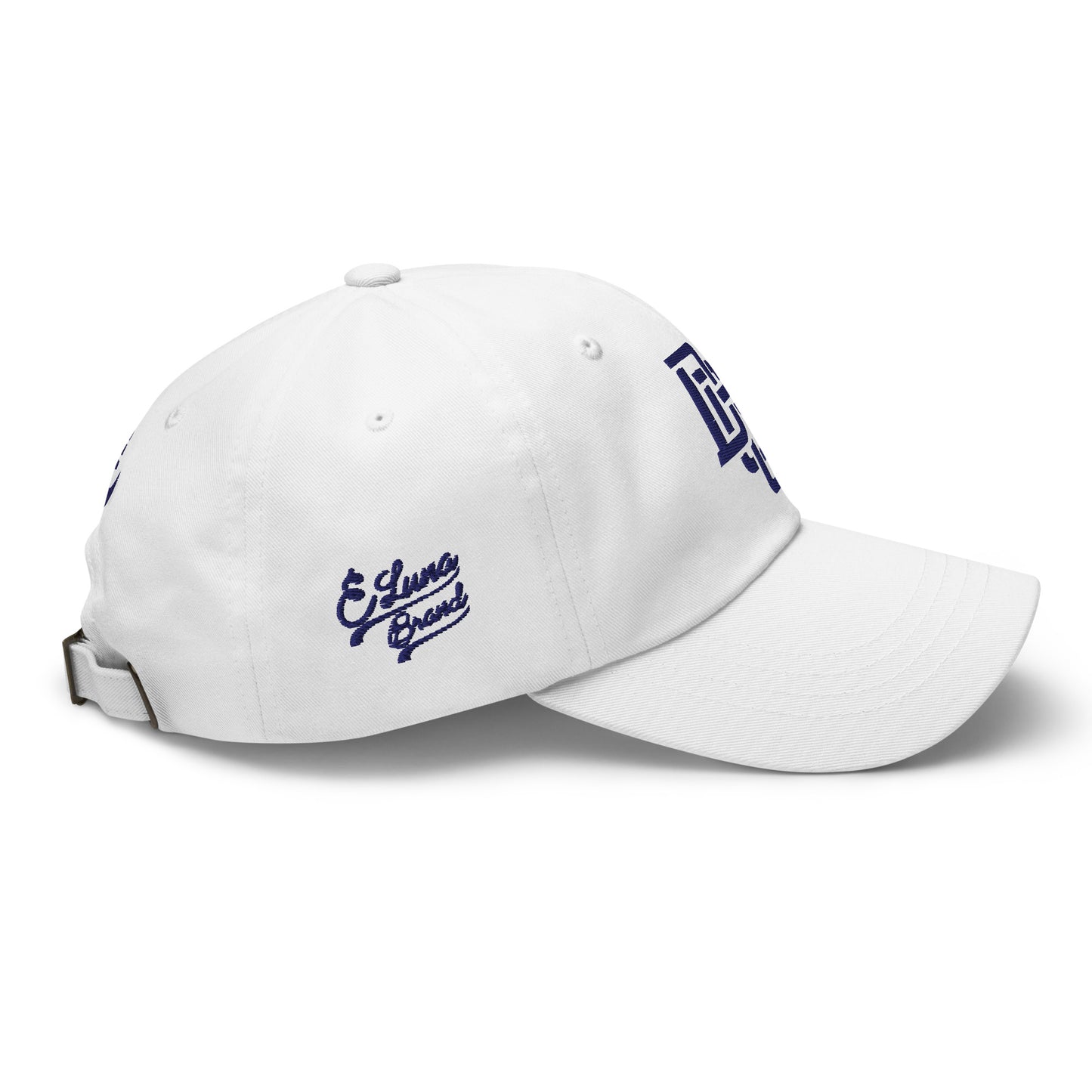 "DGO" Classic Dad Hat | Yupoong 6245CM | E Luna Brand PREMIUM Quadcrest 4 Navy Thread Logos: Front, Left, Right Signature & Back [3D Puff Edition]