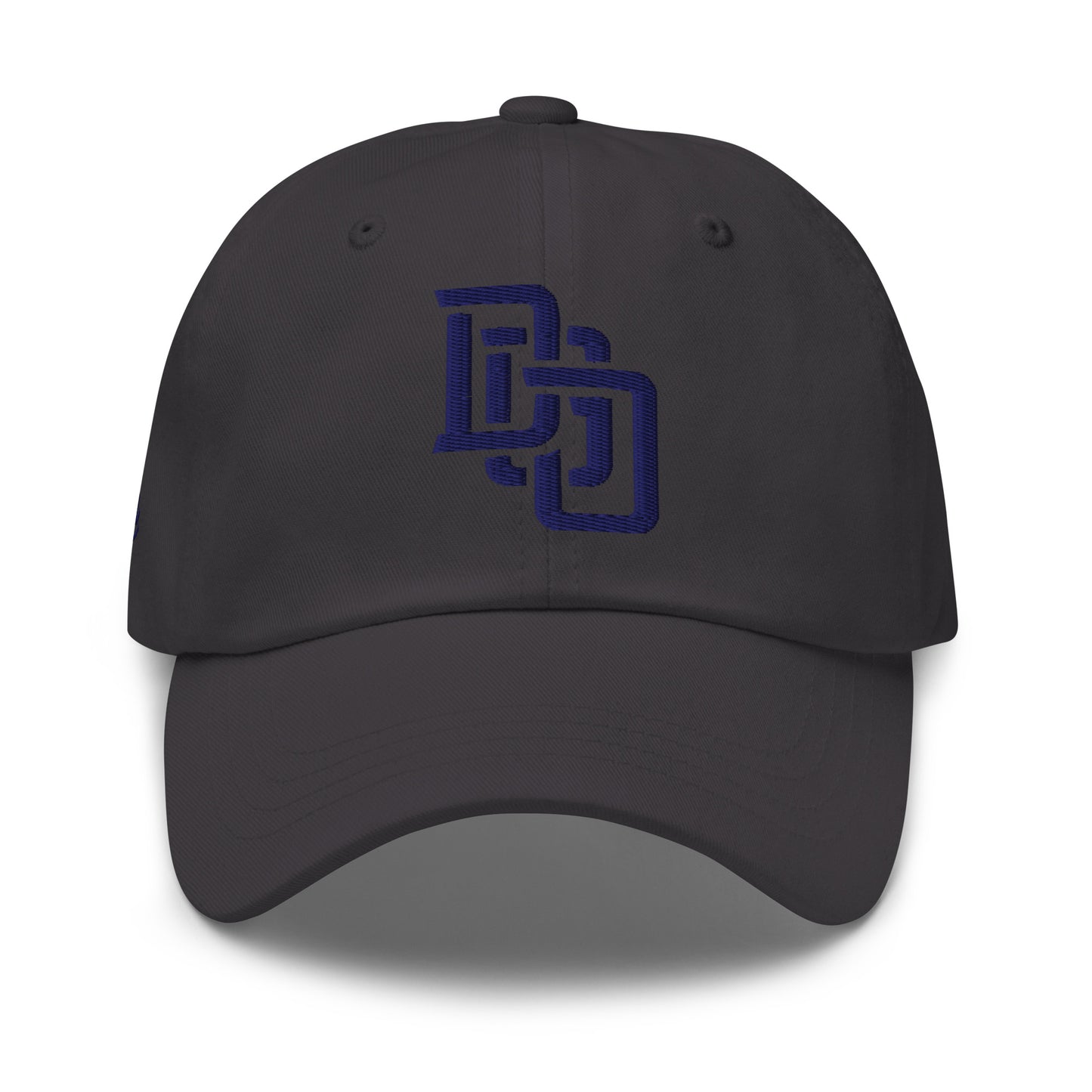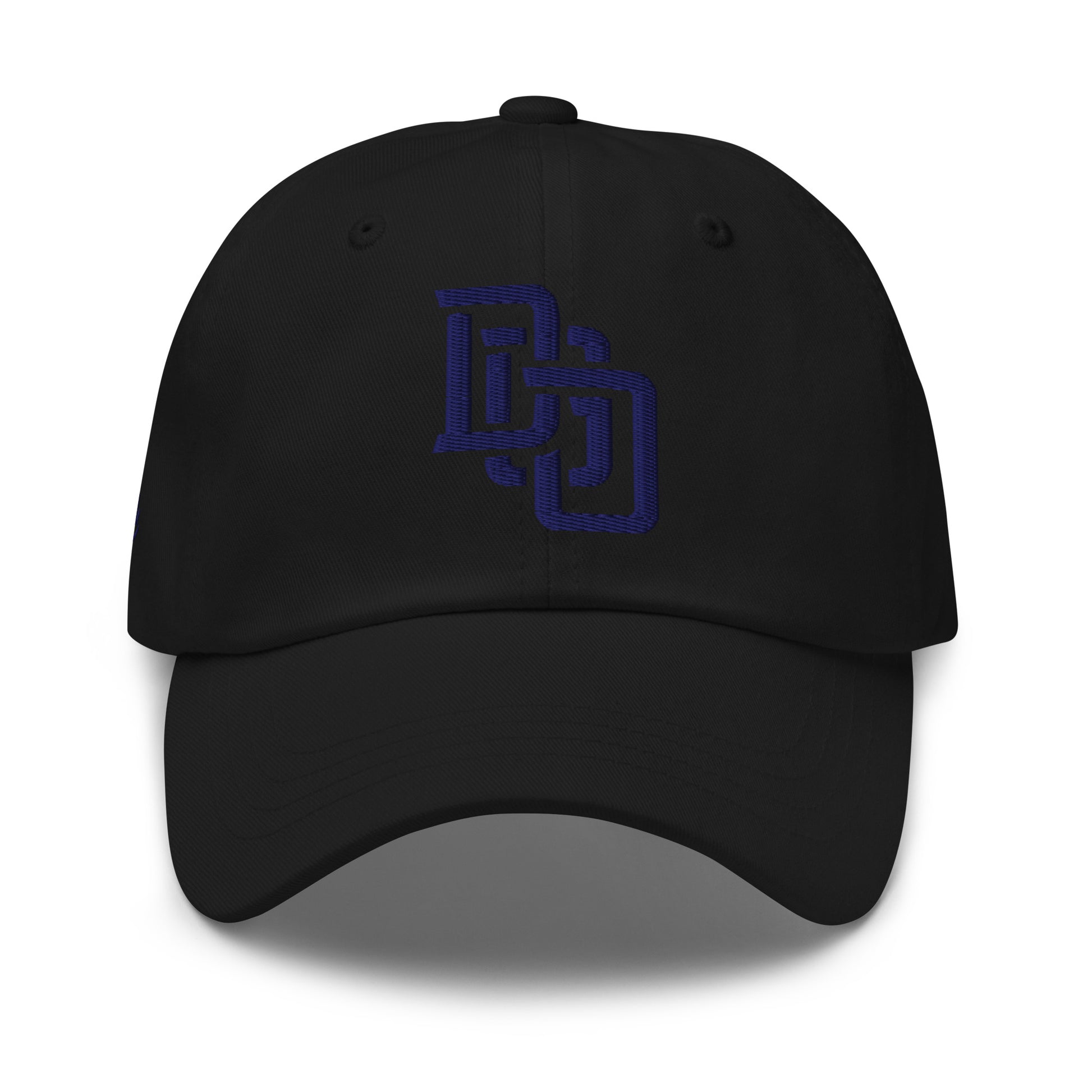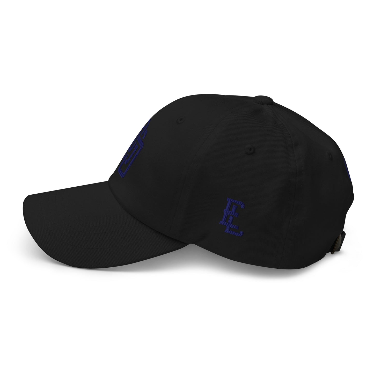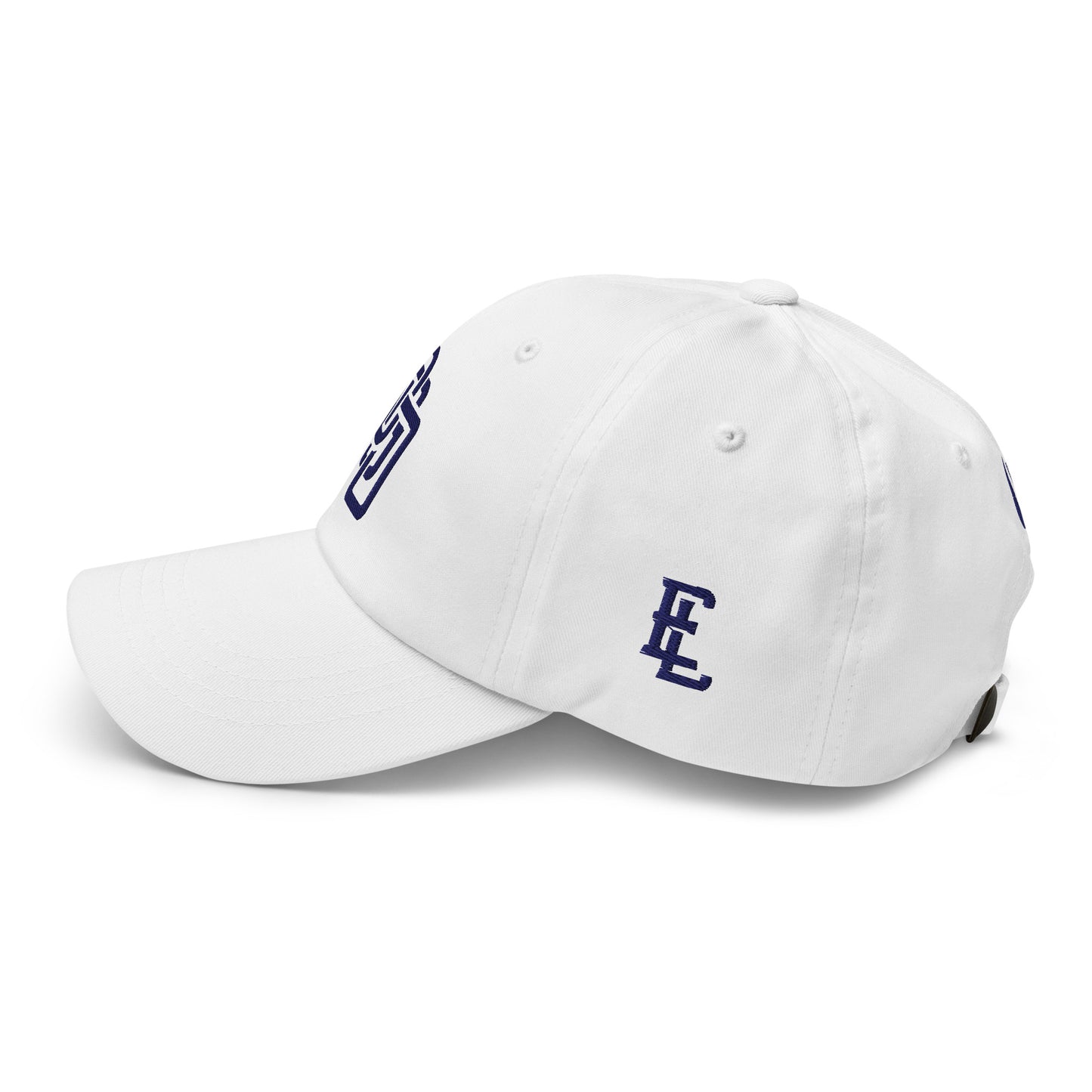 "DGO" Classic Dad Hat | Yupoong 6245CM | E Luna Brand PREMIUM Quadcrest 4 Navy Thread Logos: Front, Left, Right Signature & Back [3D Puff Edition]