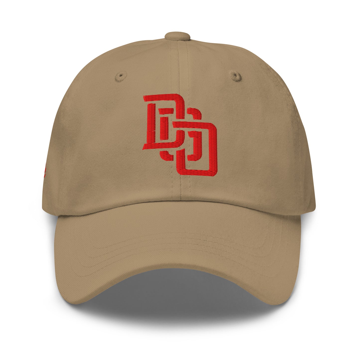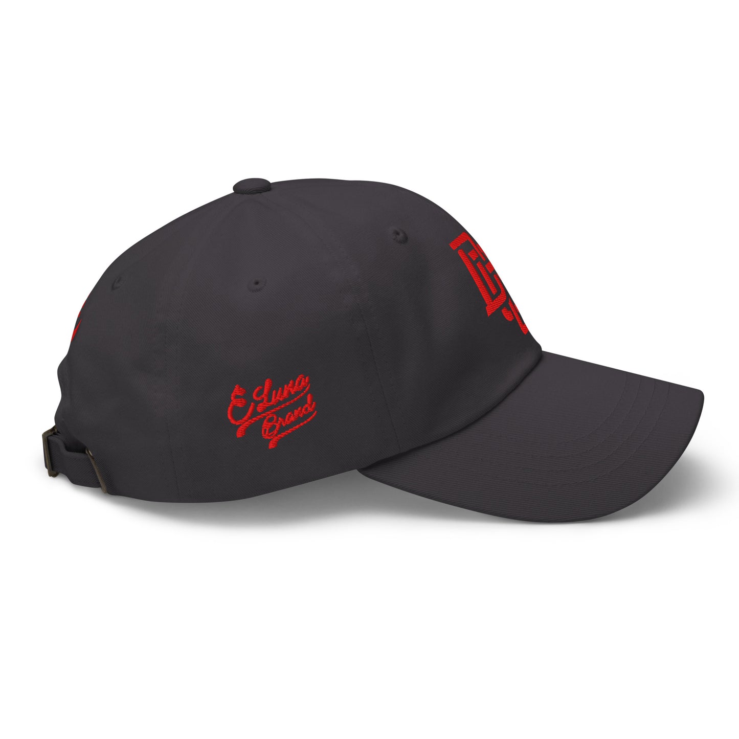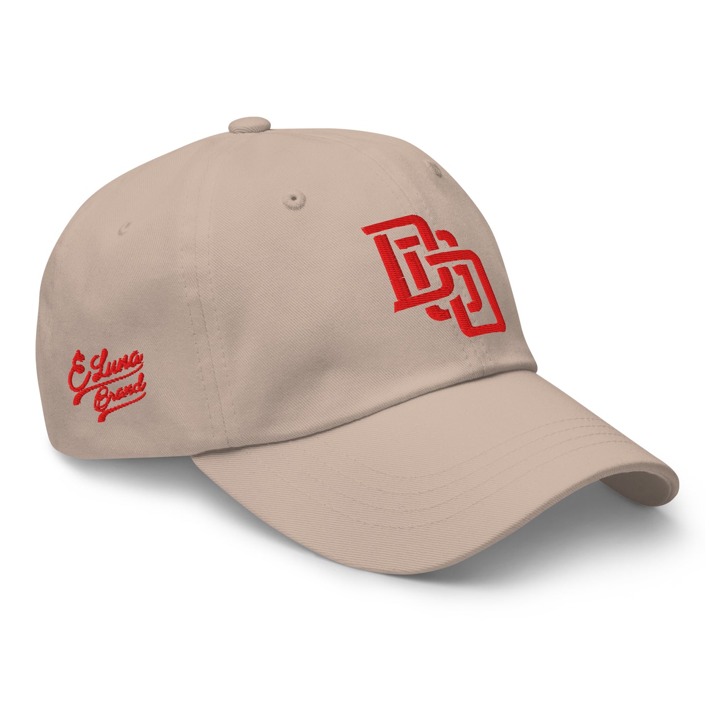 "DGO" Classic Dad Hat | Yupoong 6245CM | E Luna Brand PREMIUM Quadcrest 4 Red Thread Logos: Front, Left, Right Signature & Back [3D Puff Edition]