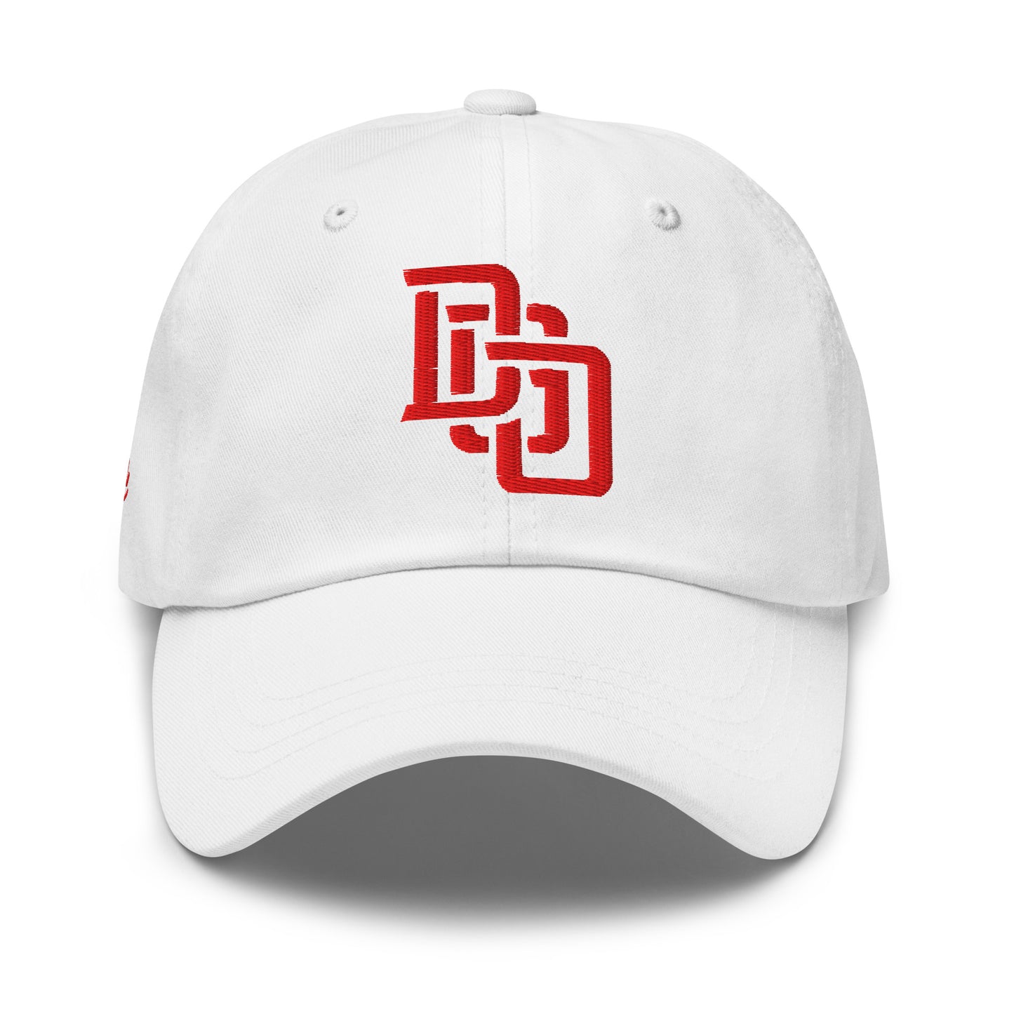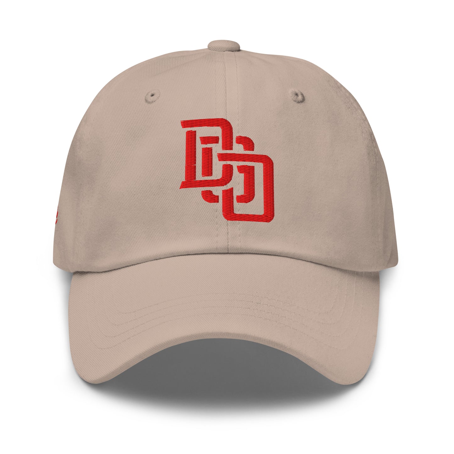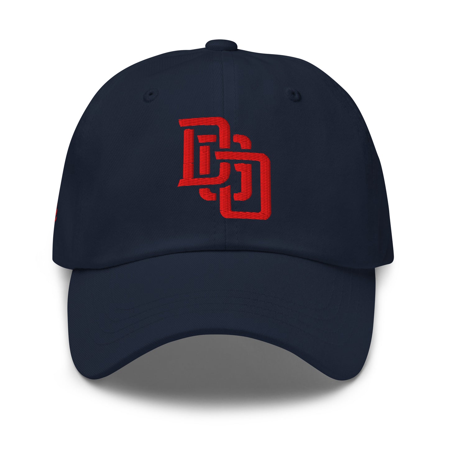 "DGO" Classic Dad Hat | Yupoong 6245CM | E Luna Brand PREMIUM Quadcrest 4 Red Thread Logos: Front, Left, Right Signature & Back [3D Puff Edition]