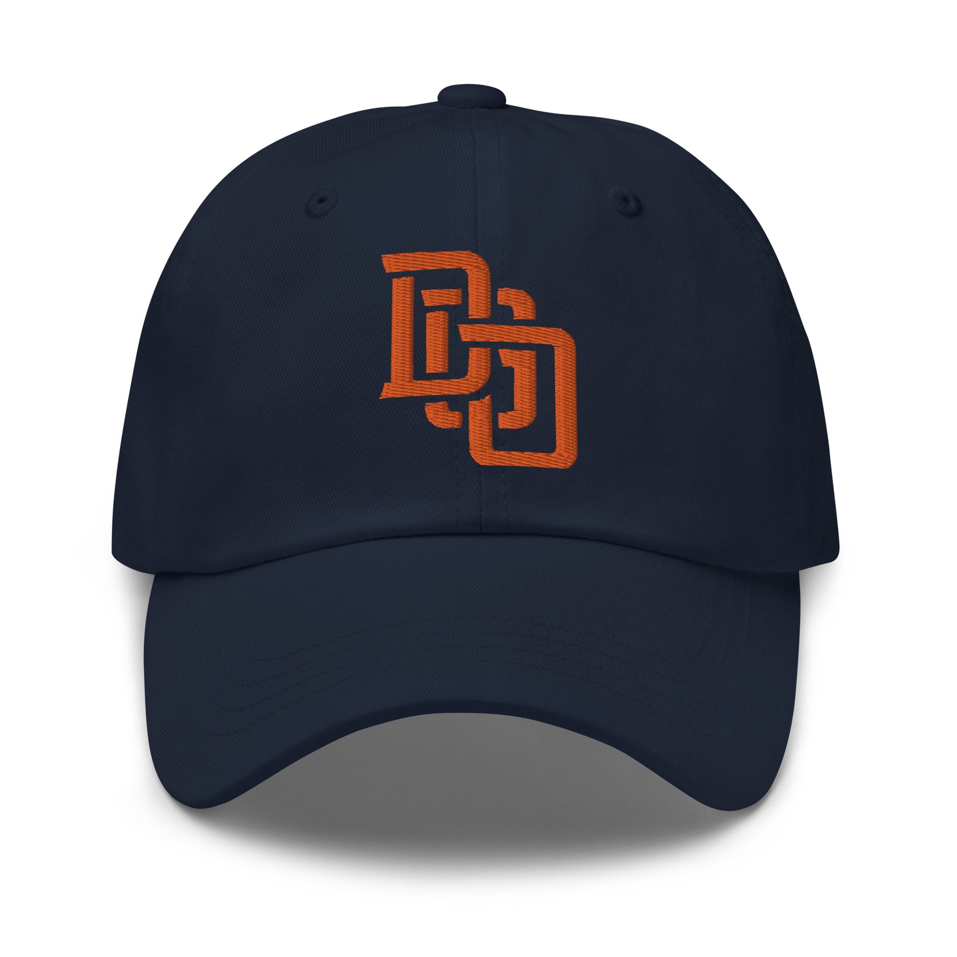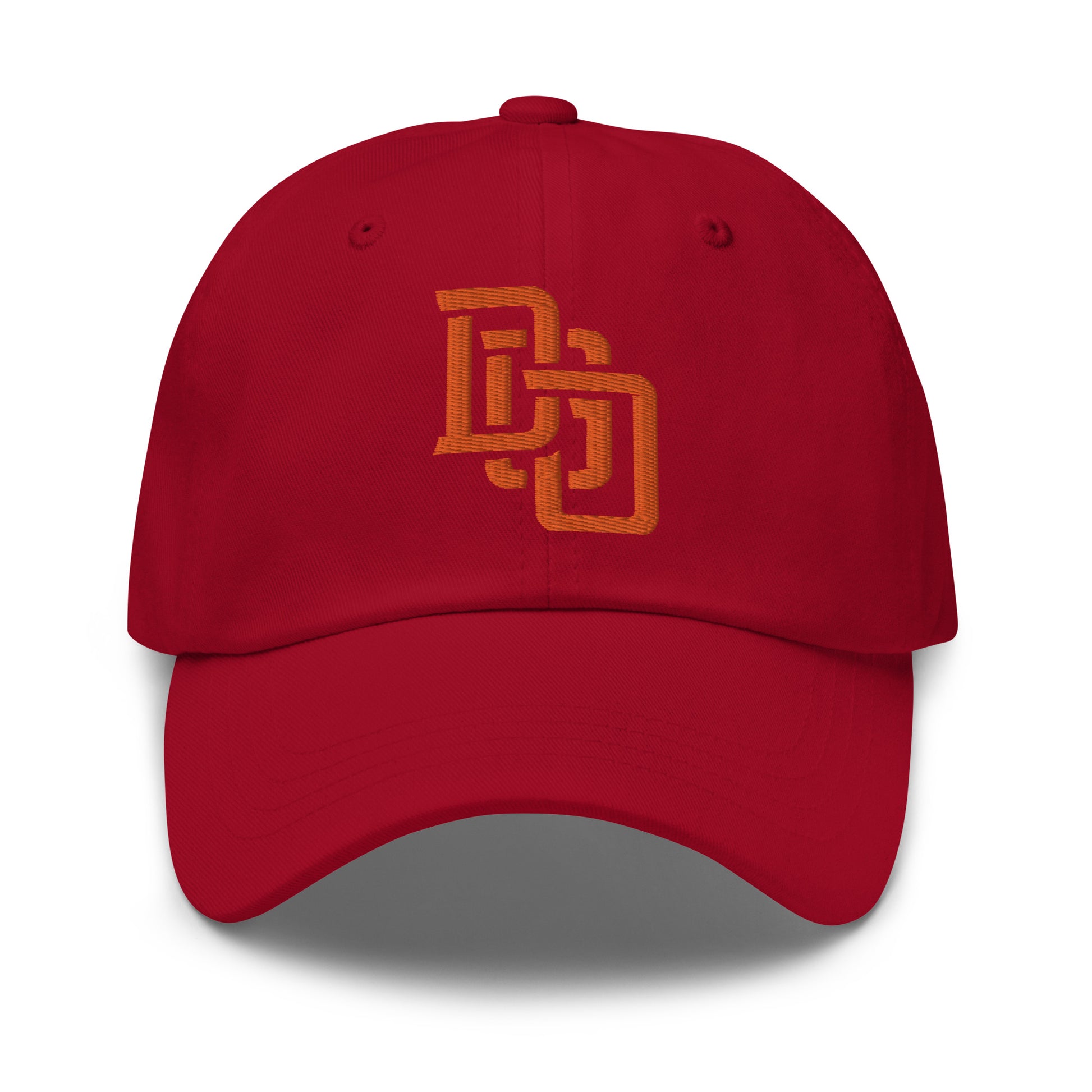 "DGO" Classic Dad Hat | Yupoong 6245CM | E Luna Brand ESSENTIAL Duocrest 2 Orange Thread Logos: Front & Left