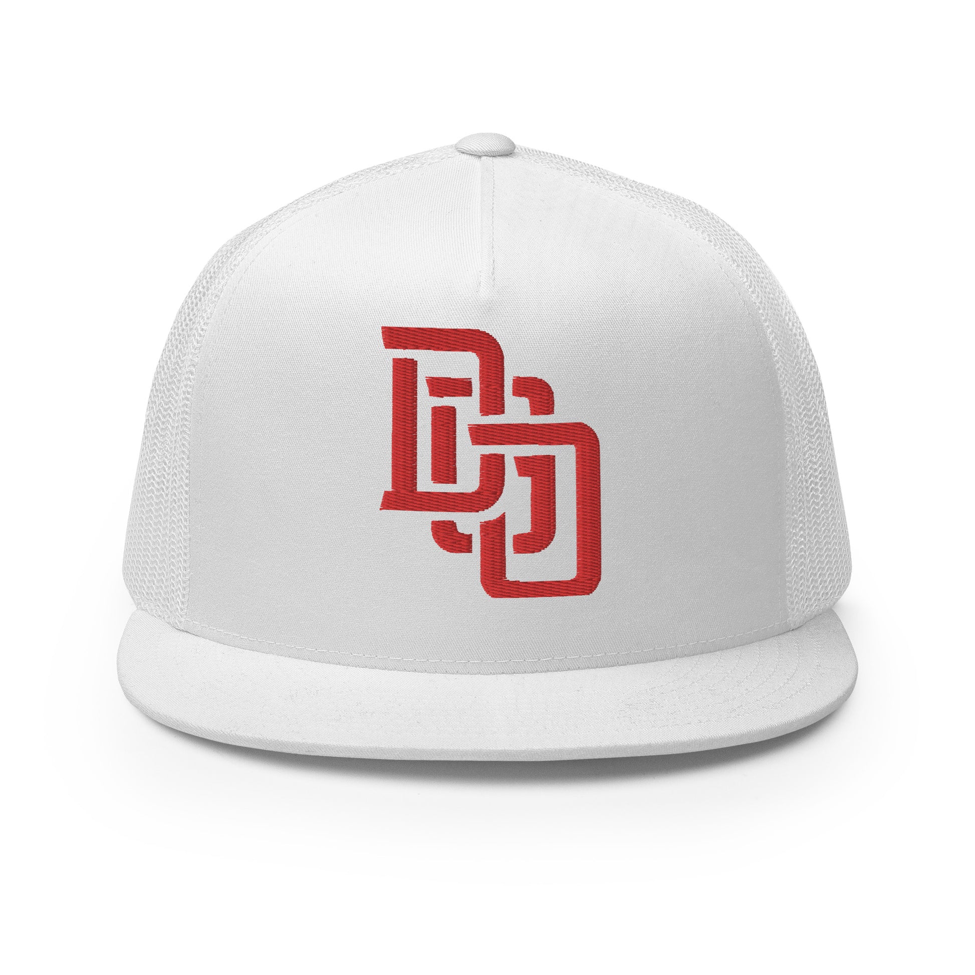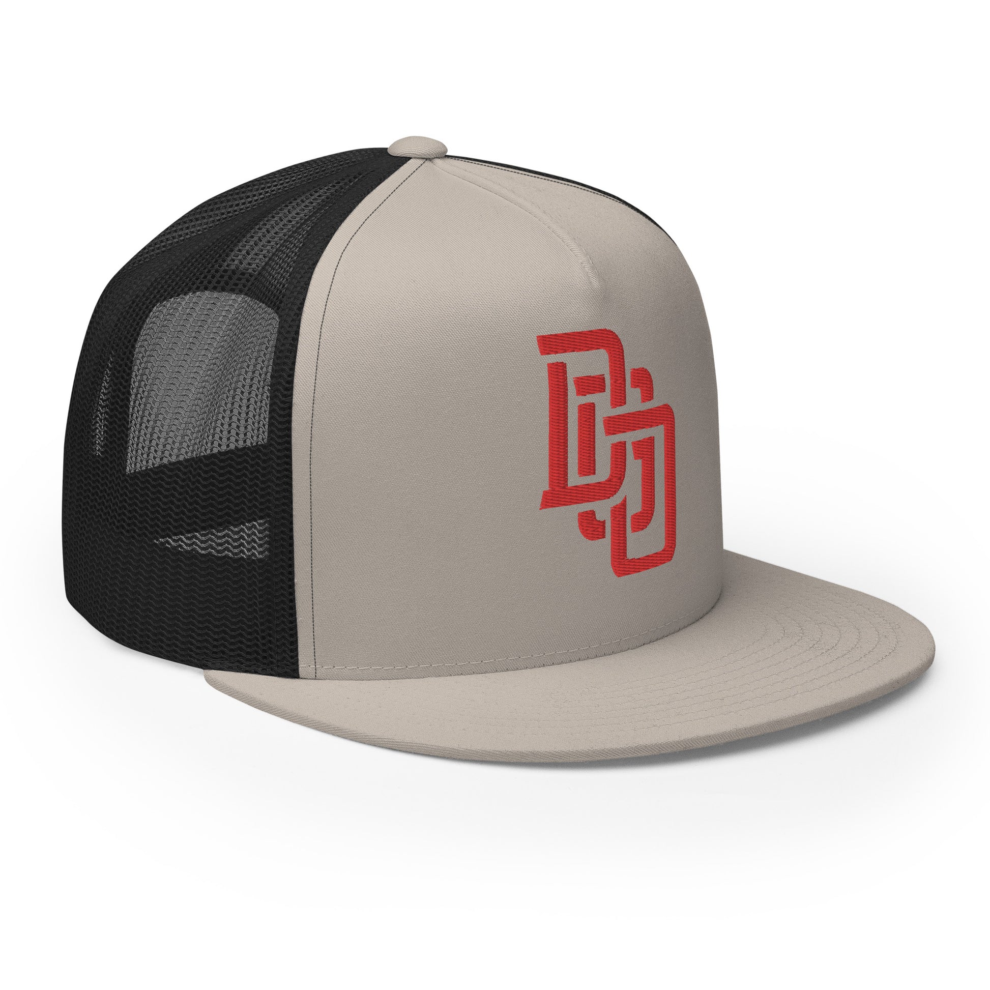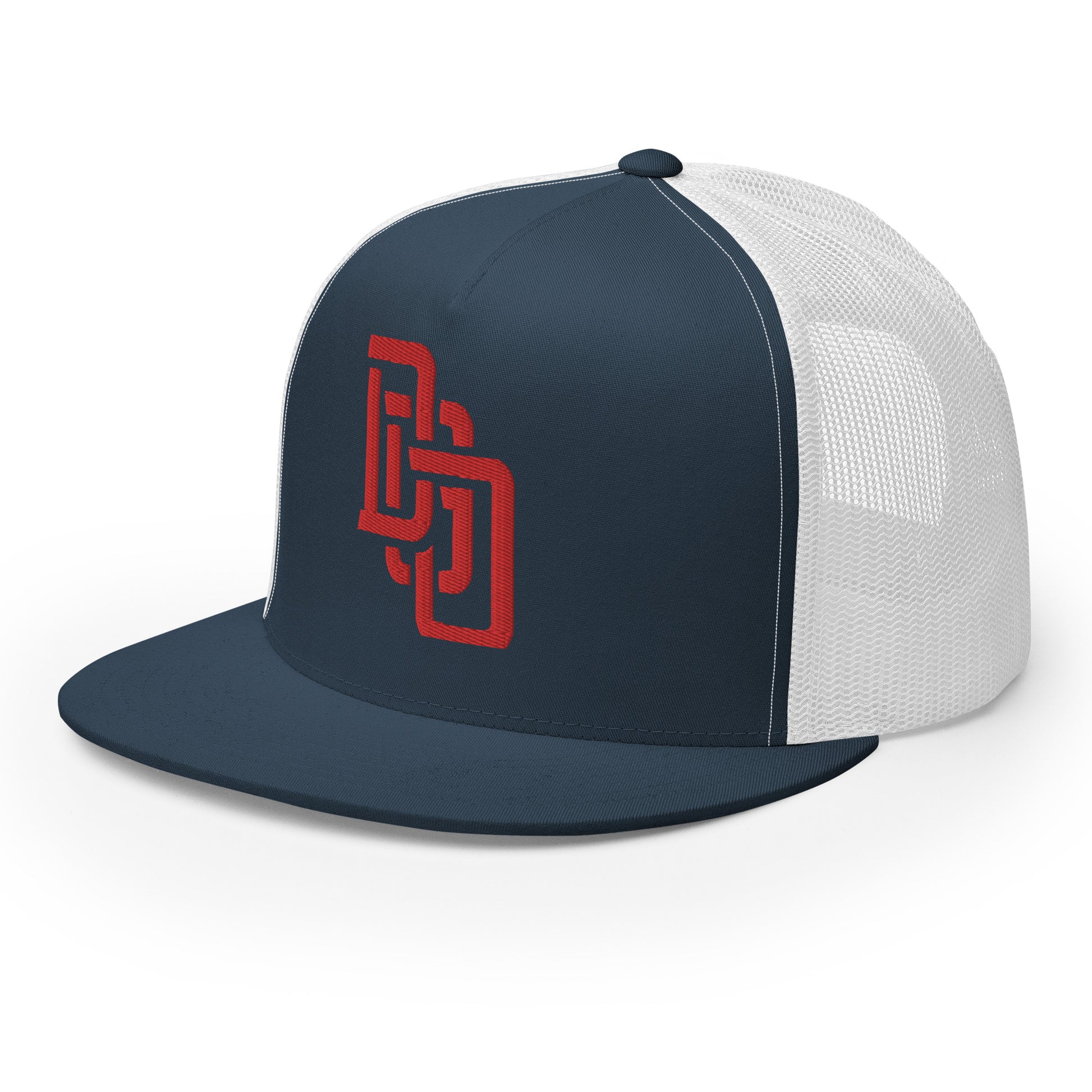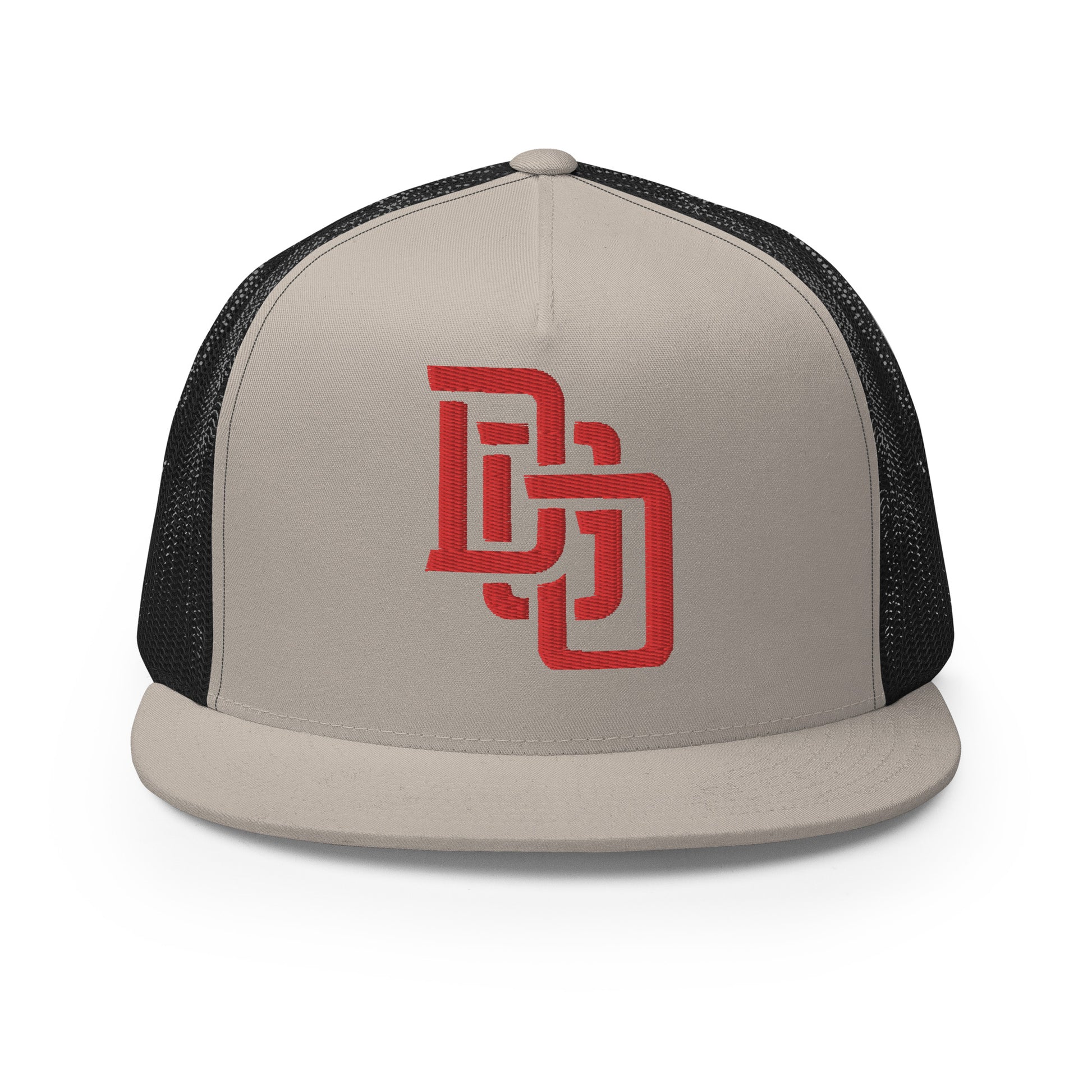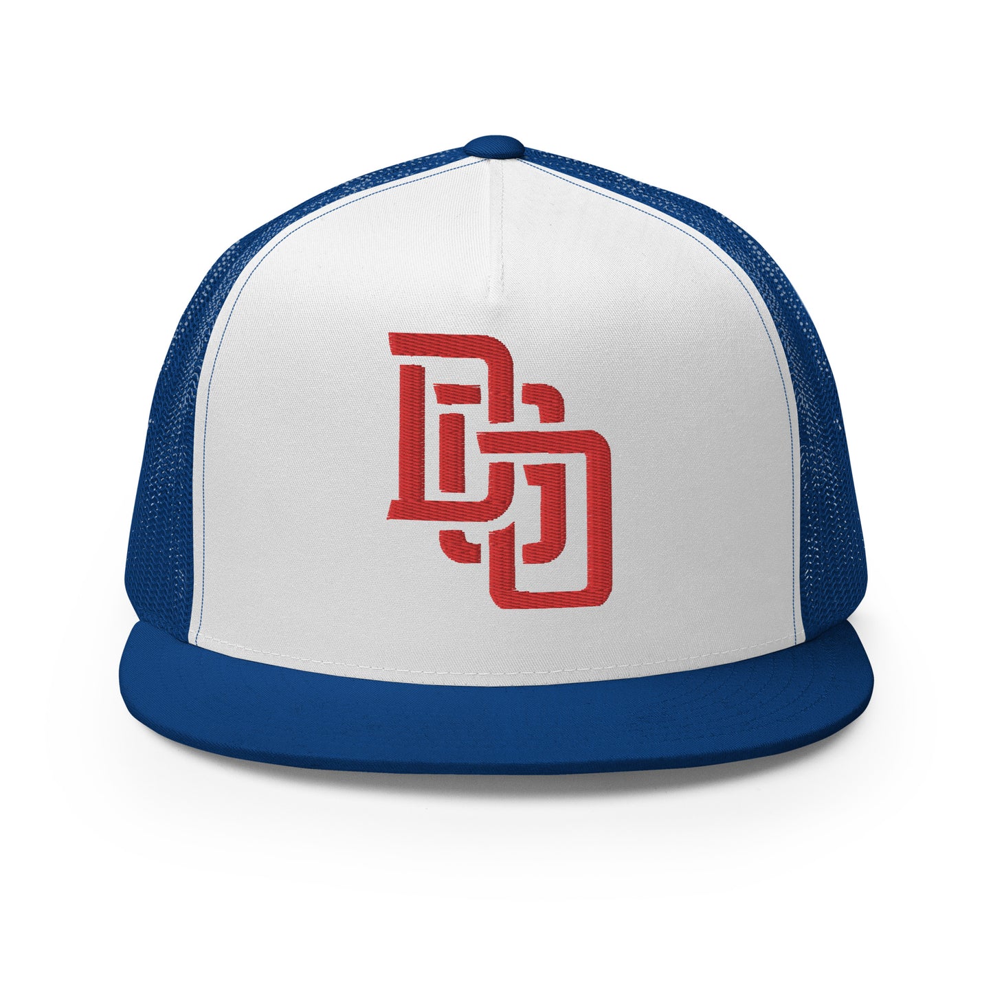 "DGO" Five Panel Trucker Cap | Yupoong 6006 | E Luna CLASSIC Solocrest 1 Red Thread Logo
